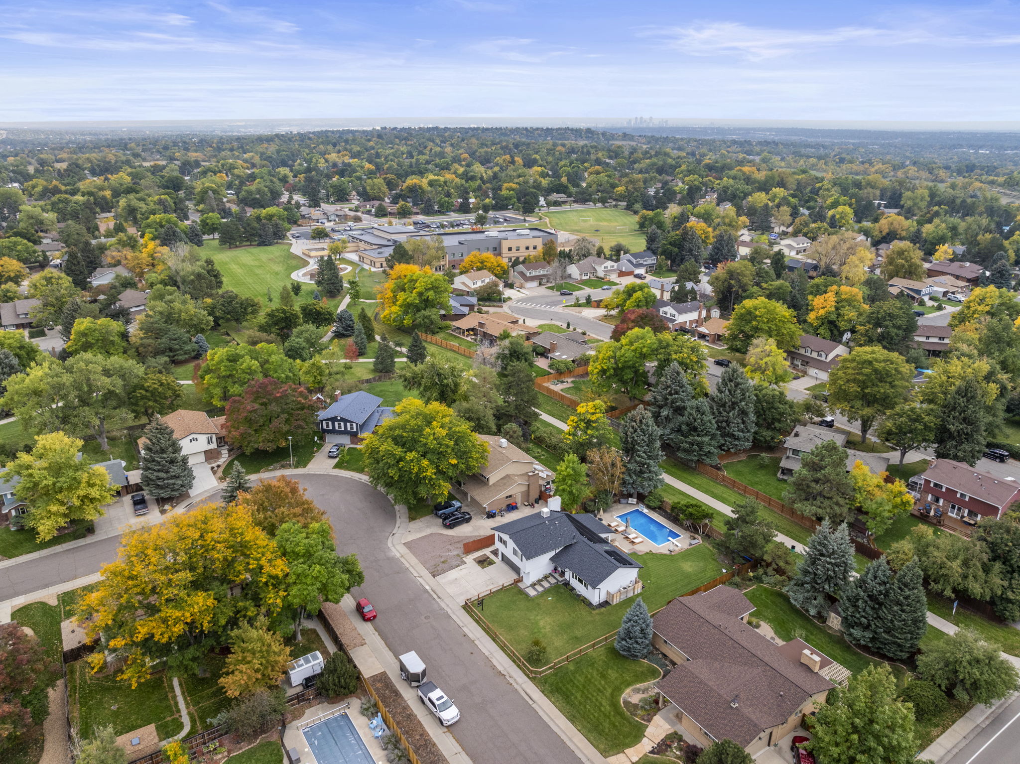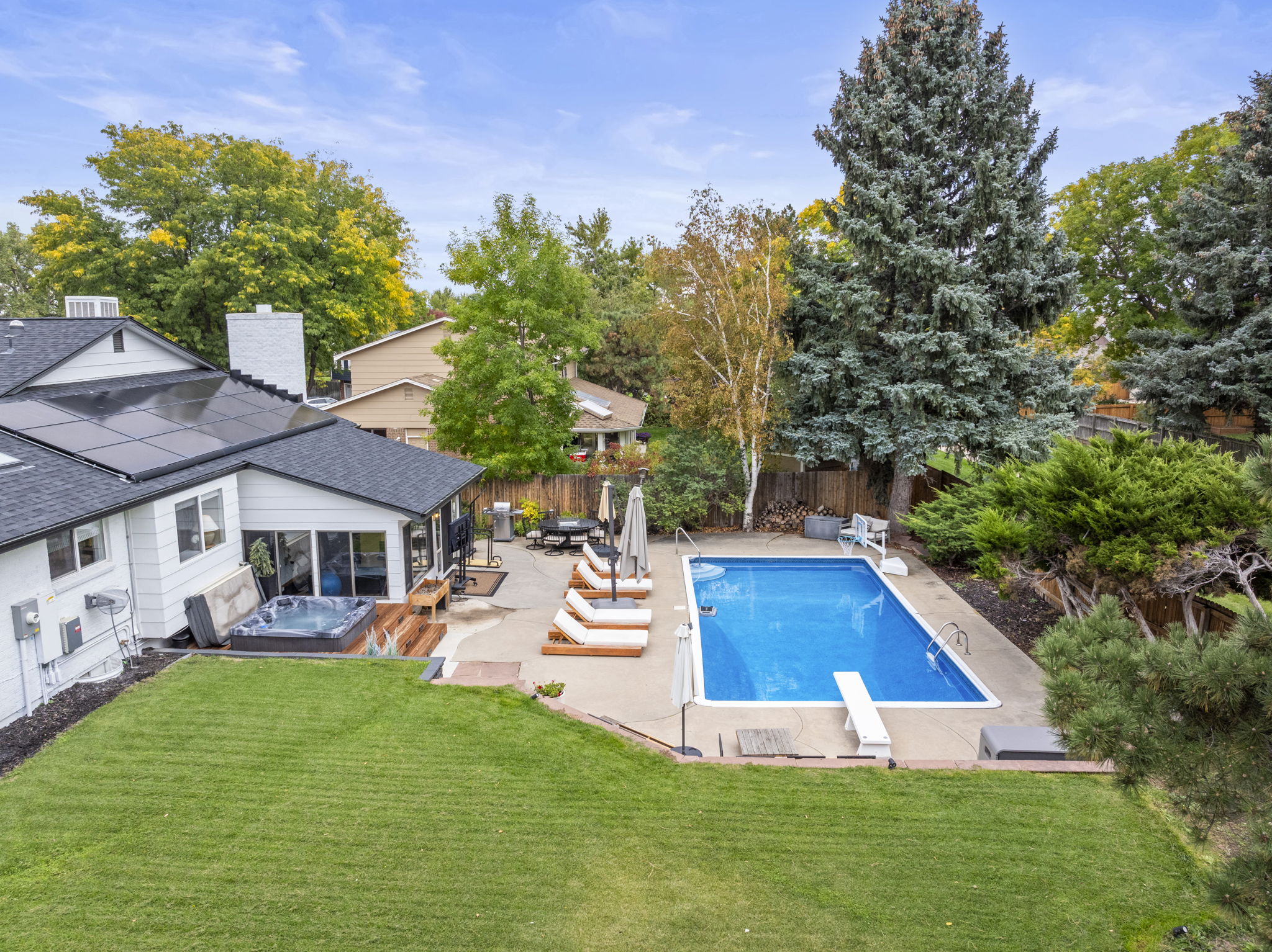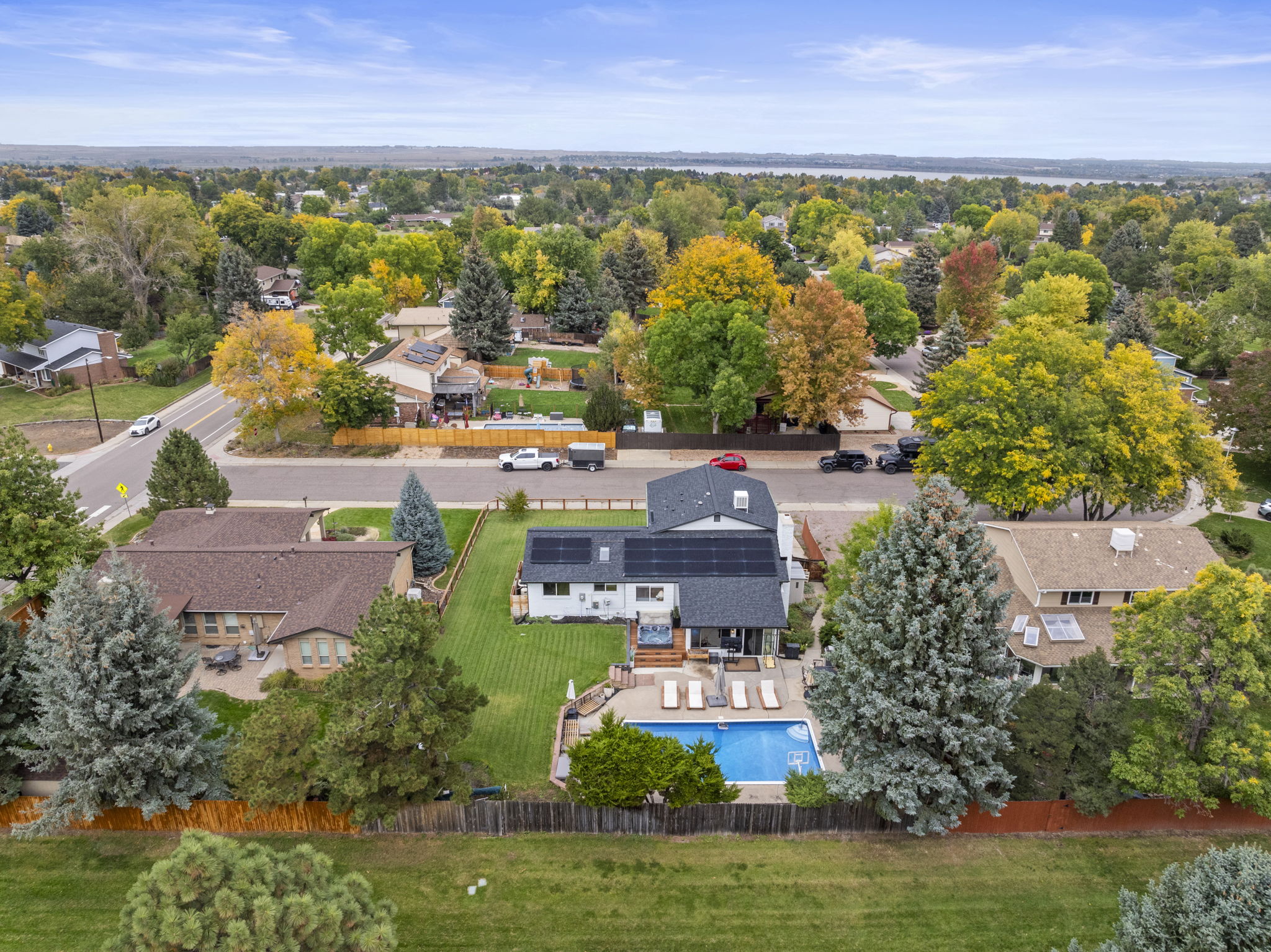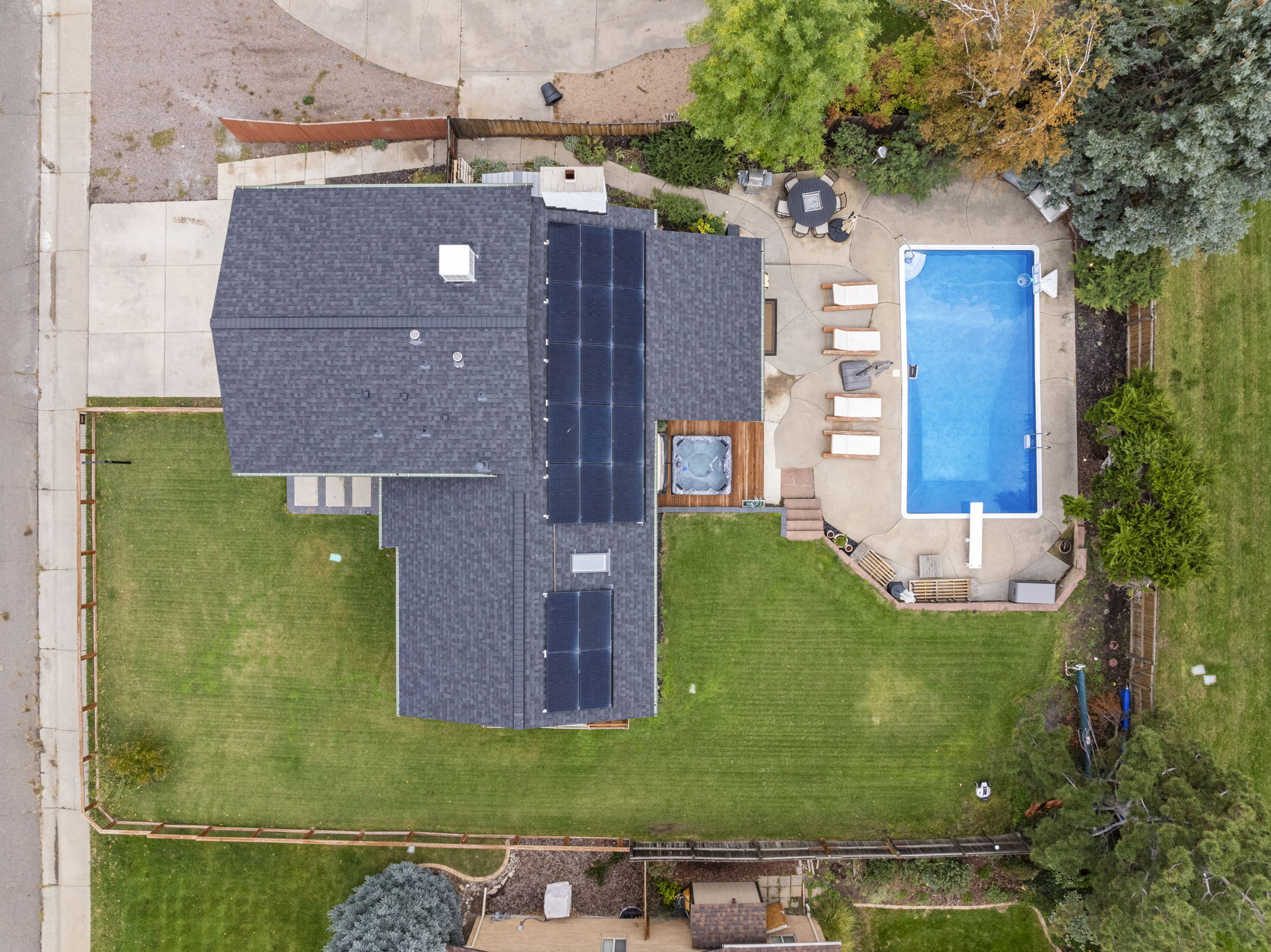 This stunning home sits on a spacious .23-acre lot and offers your own private oasis with a heated in-ground pool, hot tub, fully paid solar panels. Inside, you’ll find soaring ceilings, an open floor plan, and abundant natural light. The kitchen features a skylight, plenty of cabinetry, and an eat-in area that opens to the family room. Family room with a grand fireplace and gorgeous wet bar ideal for gatherings. A formal dining room or piano room sits just off the kitchen, while the front room offers flexibility as a large dining area or elegant formal living space. The primary suite is generously sized, featuring a spa-inspired bathroom with a luxury shower complete with body sprays and hand wand, double vanity with lighted mirrors, and a large custom closet with built-ins . A secondary bedroom with a full hall bath completes this level, with new flooring continuing throughout this level. The newly finished lower level adds exceptional living space with two non-conforming bedrooms, a recreation room, and a classy full bath with soaking tub. The laundry room completes this level. Now let’s talk about this backyard! The heated sunroom overlooks an entertainer’s paradise, where the completely renovated yard provides ample space. Enjoy the beautiful in-ground pool with diving board and hot tub, surrounded by lush landscaping and all-new improvements. Nearly everything has been updated, including a new pool pump, industrial-grade pool plumbing, heat pump, gas heater, smart pool system with water thermostat, oversized filter, electrical disconnects and grounding lines. New concrete pad for the hot tub, new fencing, , and a smart sprinkler controller.Energy efficiency abounds with 2 220 outlets perfect for electric vehicles in 2 car garage. Just steps away from the trail to Standley Lake, you can easily walk, bike, or enjoy breathtaking Colorado sunsets over the water. This home truly has it all—luxury, comfort, energy efficiency, and an unbeatable location.