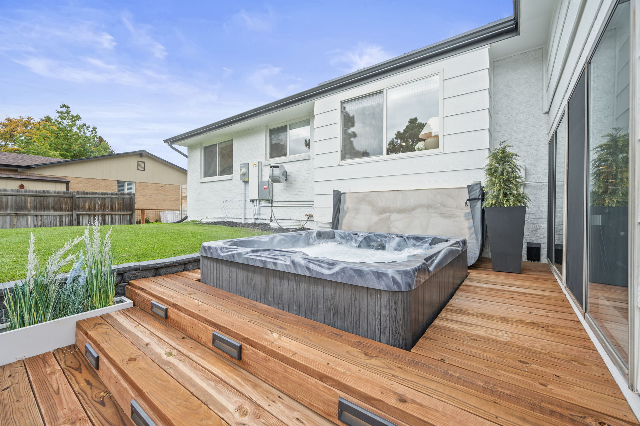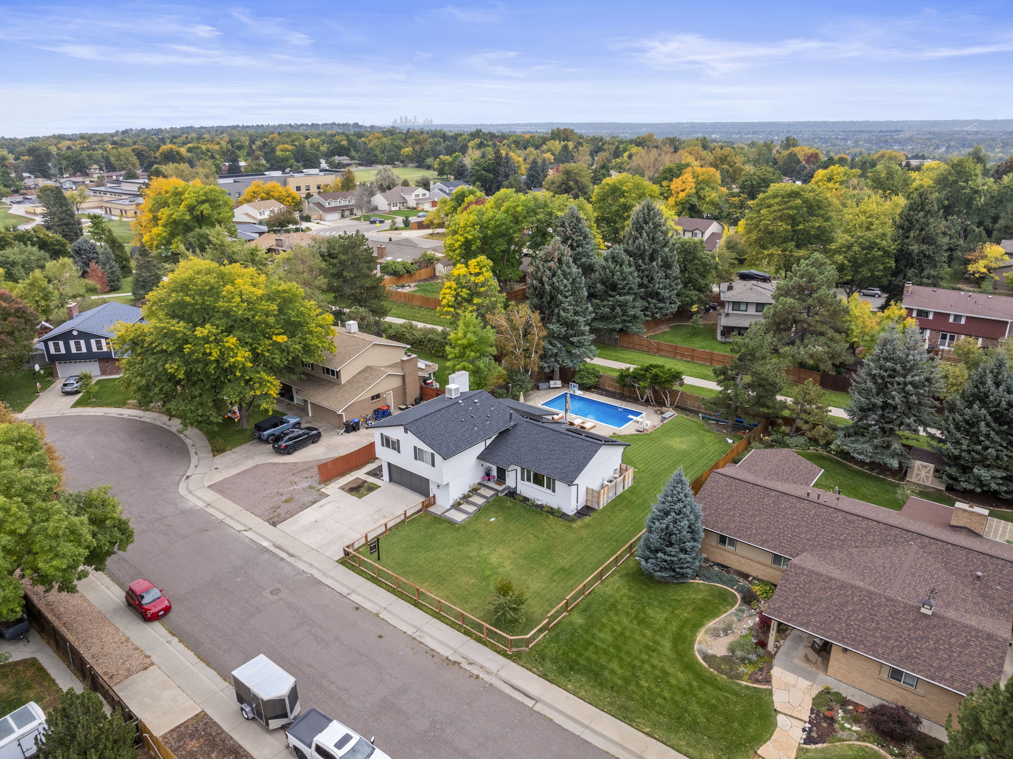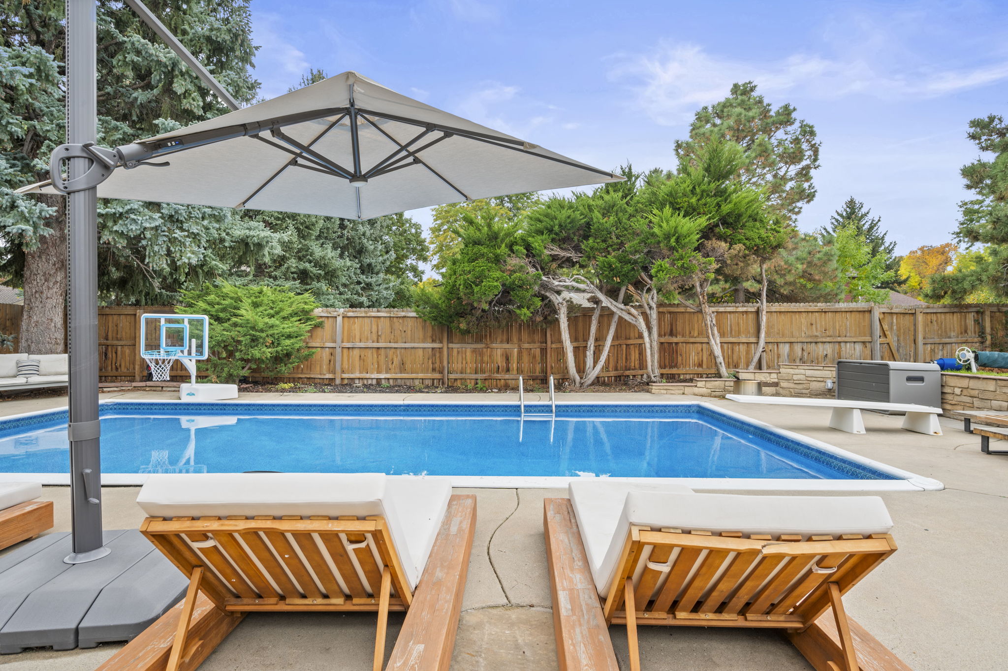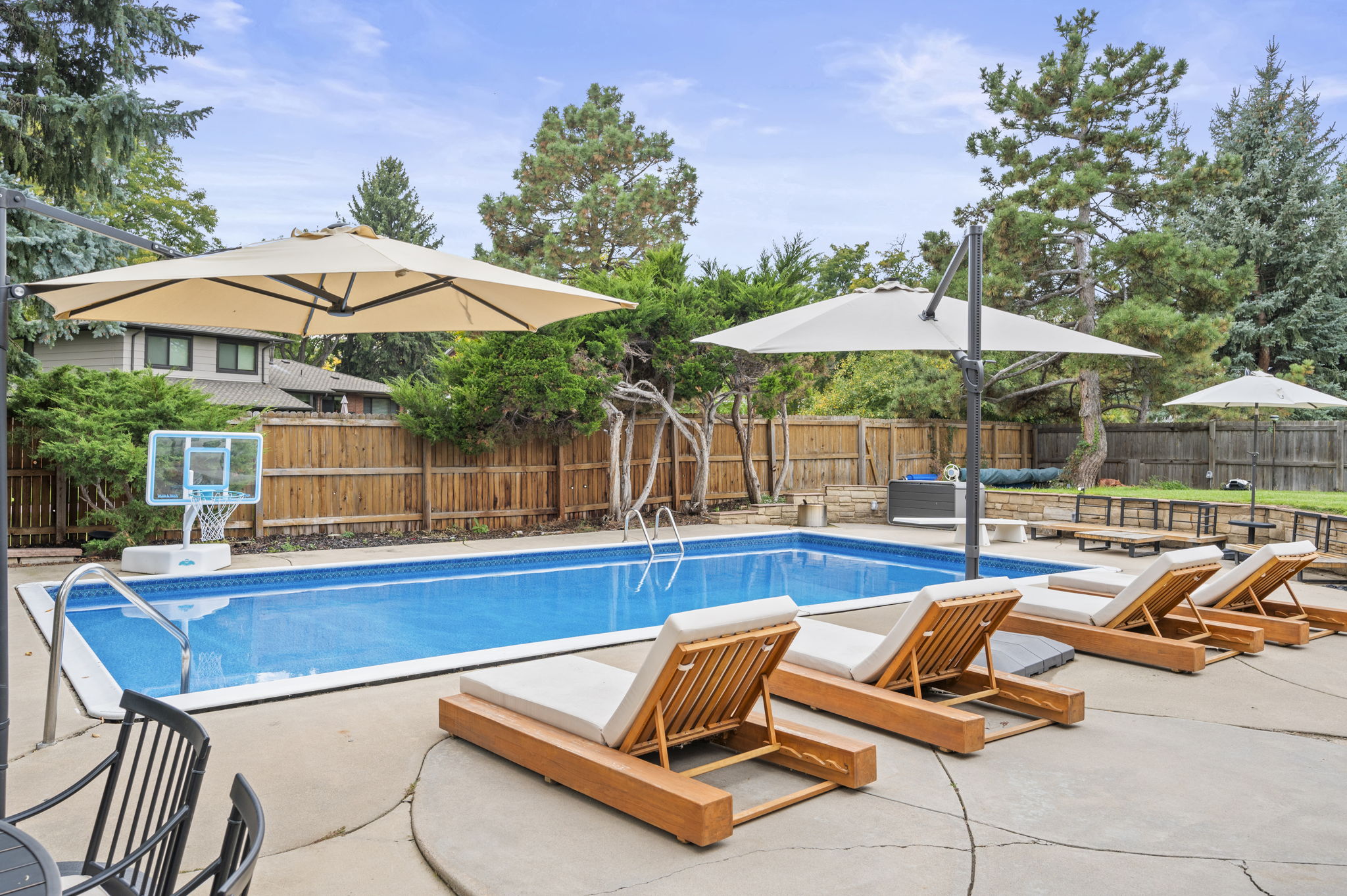 This stunning home sits on a spacious .23-acre lot and offers your own private oasis with a heated in-ground pool, hot tub, fully paid solar panels. Inside, you’ll find soaring ceilings, an open floor plan, and abundant natural light. The kitchen features a skylight, plenty of cabinetry, and an eat-in area that opens to the family room. Family room with a grand fireplace and gorgeous wet bar ideal for gatherings. A formal dining room or piano room sits just off the kitchen, while the front room offers flexibility as a large dining area or elegant formal living space. The primary suite is generously sized, featuring a spa-inspired bathroom with a luxury shower complete with body sprays and hand wand, double vanity with lighted mirrors, and a large custom closet with built-ins . A secondary bedroom with a full hall bath completes this level, with new flooring continuing throughout this level. The newly finished lower level adds exceptional living space with two non-conforming bedrooms, a recreation room, and a classy full bath with soaking tub. The laundry room completes this level. Now let’s talk about this backyard! The heated sunroom overlooks an entertainer’s paradise, where the completely renovated yard provides ample space. Enjoy the beautiful in-ground pool with diving board and hot tub, surrounded by lush landscaping and all-new improvements. Nearly everything has been updated, including a new pool pump, industrial-grade pool plumbing, heat pump, gas heater, smart pool system with water thermostat, oversized filter, electrical disconnects and grounding lines. New concrete pad for the hot tub, new fencing, , and a smart sprinkler controller.Energy efficiency abounds with 2 220 outlets perfect for electric vehicles in 2 car garage. Just steps away from the trail to Standley Lake, you can easily walk, bike, or enjoy breathtaking Colorado sunsets over the water. This home truly has it all—luxury, comfort, energy efficiency, and an unbeatable location.