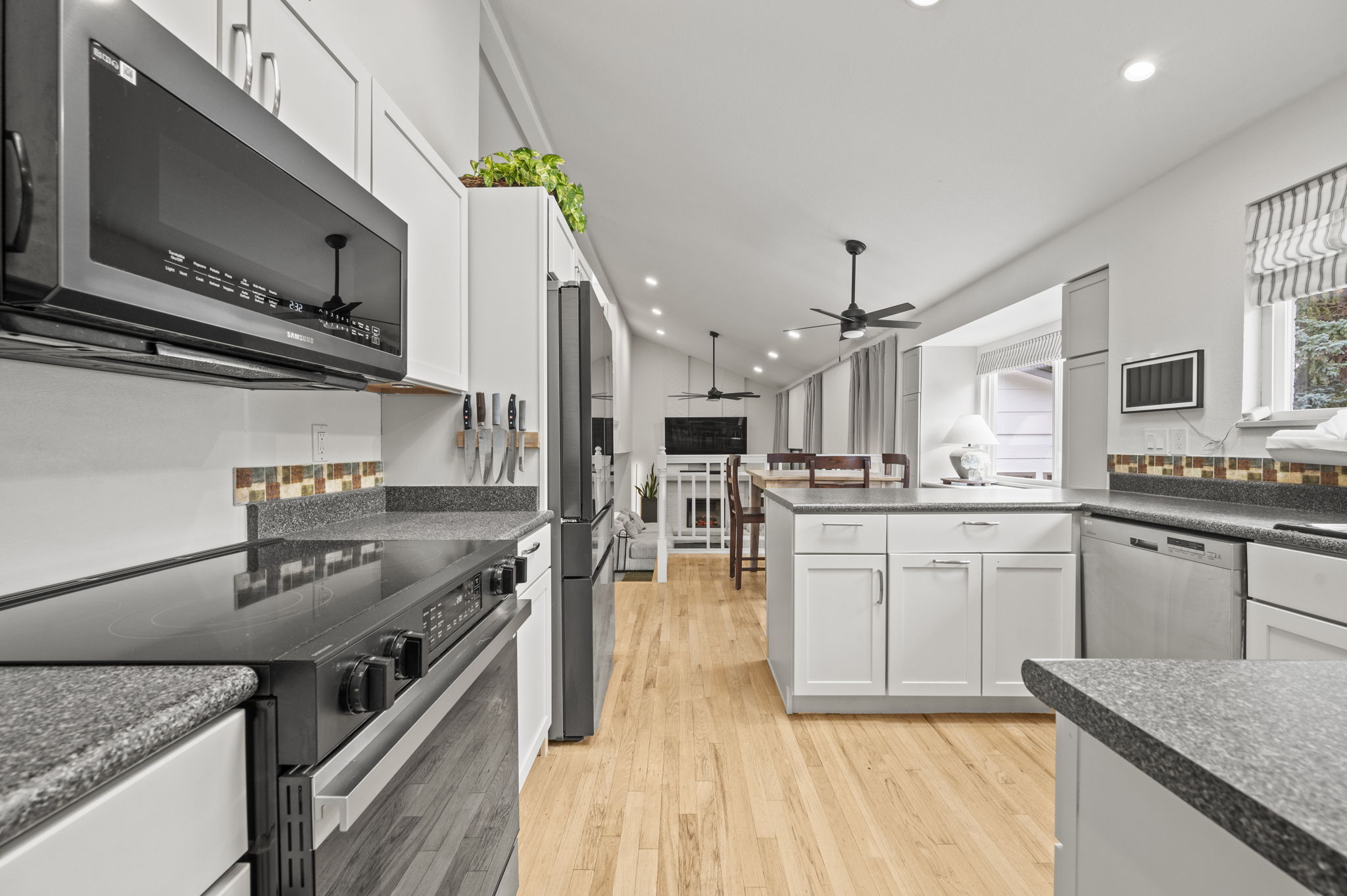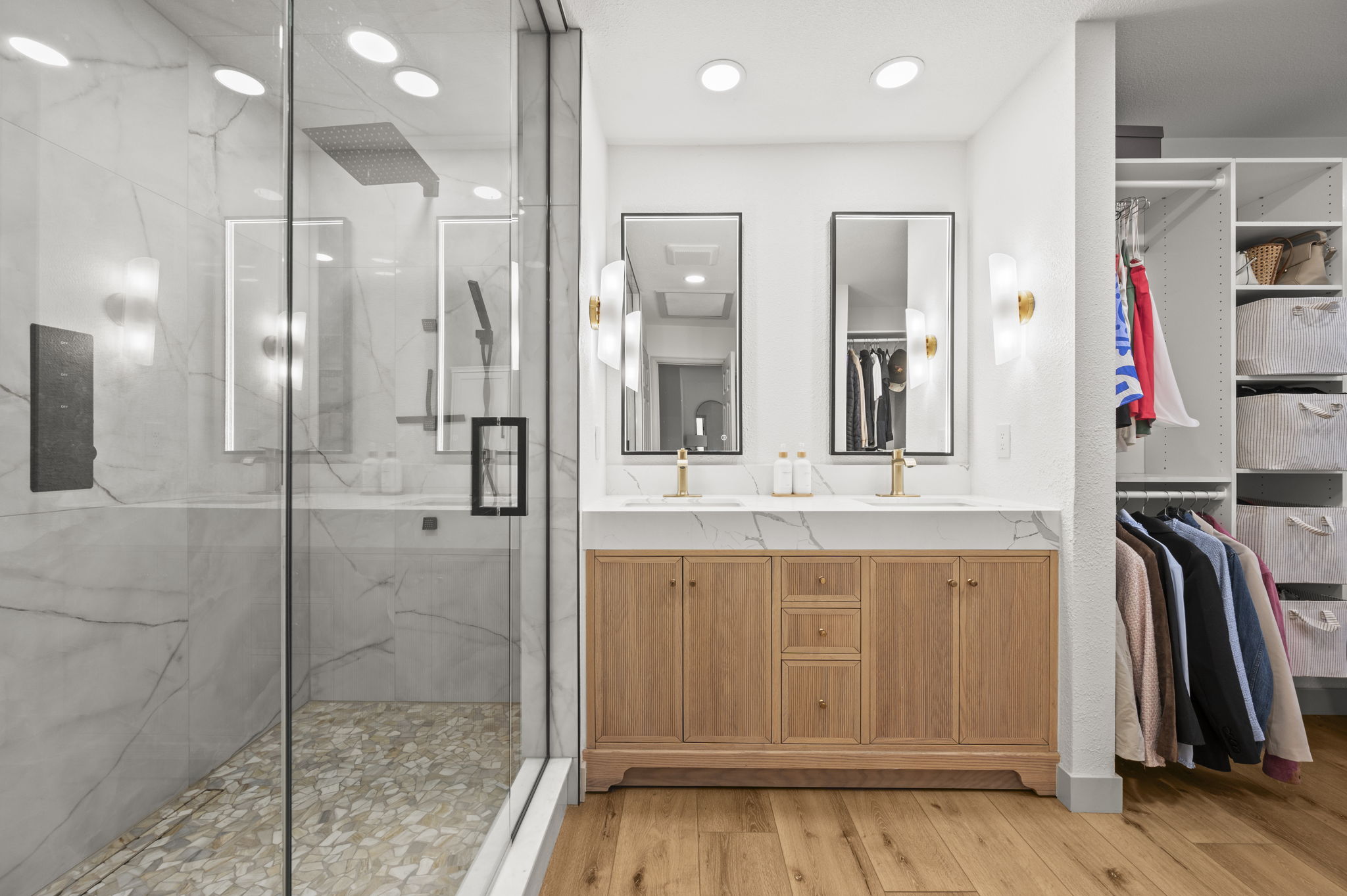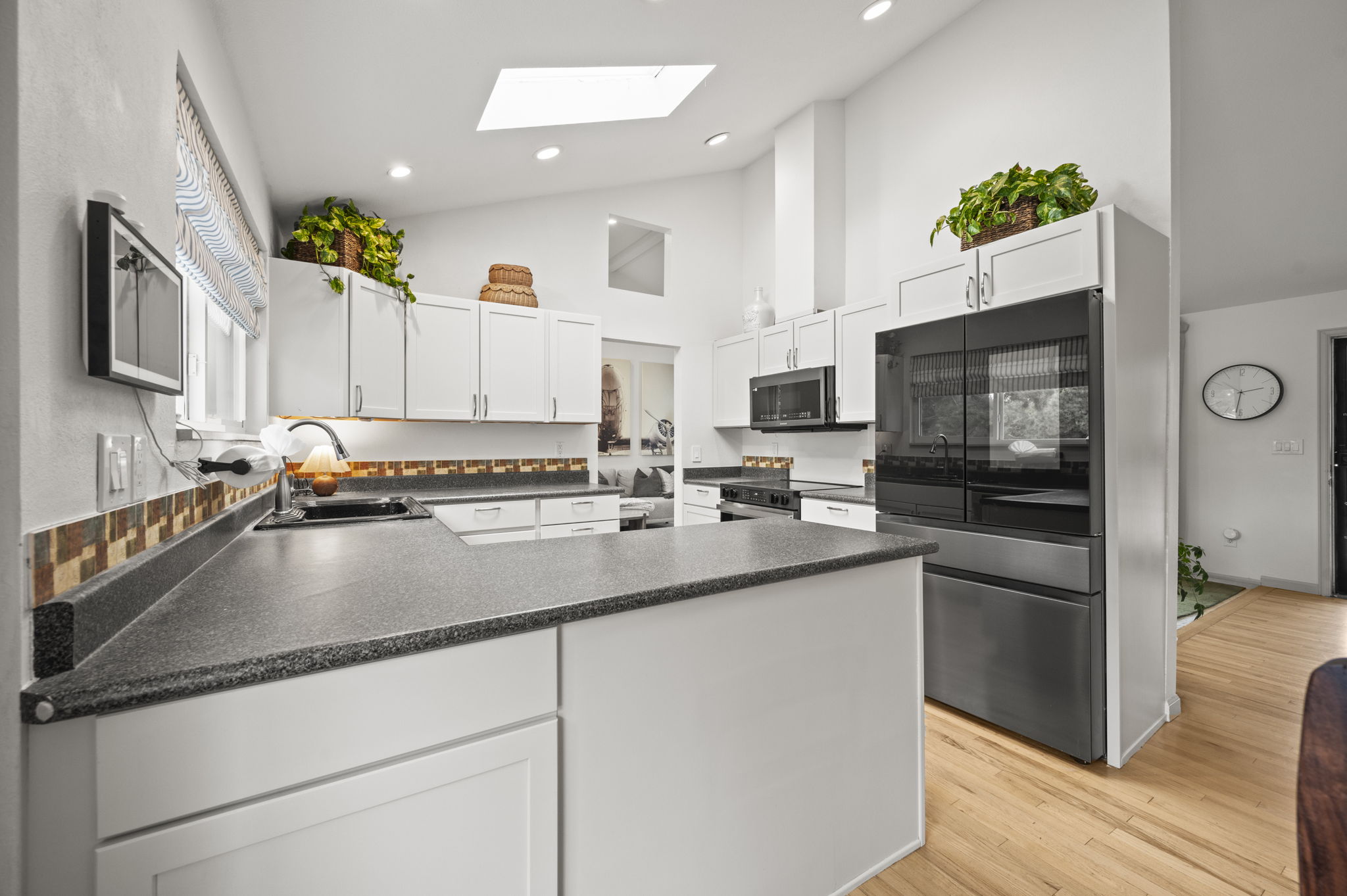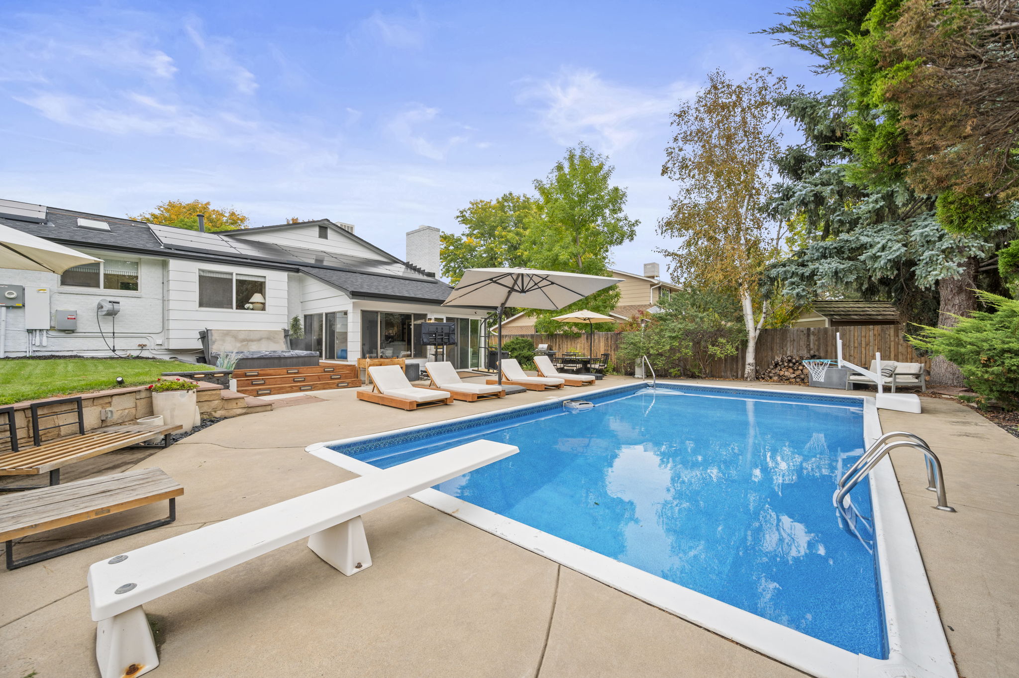 This stunning home sits on a spacious .23-acre lot and offers your own private oasis with a heated in-ground pool, hot tub, fully paid solar panels. Inside, you’ll find soaring ceilings, an open floor plan, and abundant natural light. The kitchen features a skylight, plenty of cabinetry, and an eat-in area that opens to the family room. Family room with a grand fireplace and gorgeous wet bar ideal for gatherings. A formal dining room or piano room sits just off the kitchen, while the front room offers flexibility as a large dining area or elegant formal living space. The primary suite is generously sized, featuring a spa-inspired bathroom with a luxury shower complete with body sprays and hand wand, double vanity with lighted mirrors, and a large custom closet with built-ins . A secondary bedroom with a full hall bath completes this level, with new flooring continuing throughout this level. The newly finished lower level adds exceptional living space with two non-conforming bedrooms, a recreation room, and a classy full bath with soaking tub. The laundry room completes this level. Now let’s talk about this backyard! The heated sunroom overlooks an entertainer’s paradise, where the completely renovated yard provides ample space. Enjoy the beautiful in-ground pool with diving board and hot tub, surrounded by lush landscaping and all-new improvements. Nearly everything has been updated, including a new pool pump, industrial-grade pool plumbing, heat pump, gas heater, smart pool system with water thermostat, oversized filter, electrical disconnects and grounding lines. New concrete pad for the hot tub, new fencing, , and a smart sprinkler controller.Energy efficiency abounds with 2 220 outlets perfect for electric vehicles in 2 car garage. Just steps away from the trail to Standley Lake, you can easily walk, bike, or enjoy breathtaking Colorado sunsets over the water. This home truly has it all—luxury, comfort, energy efficiency, and an unbeatable location.