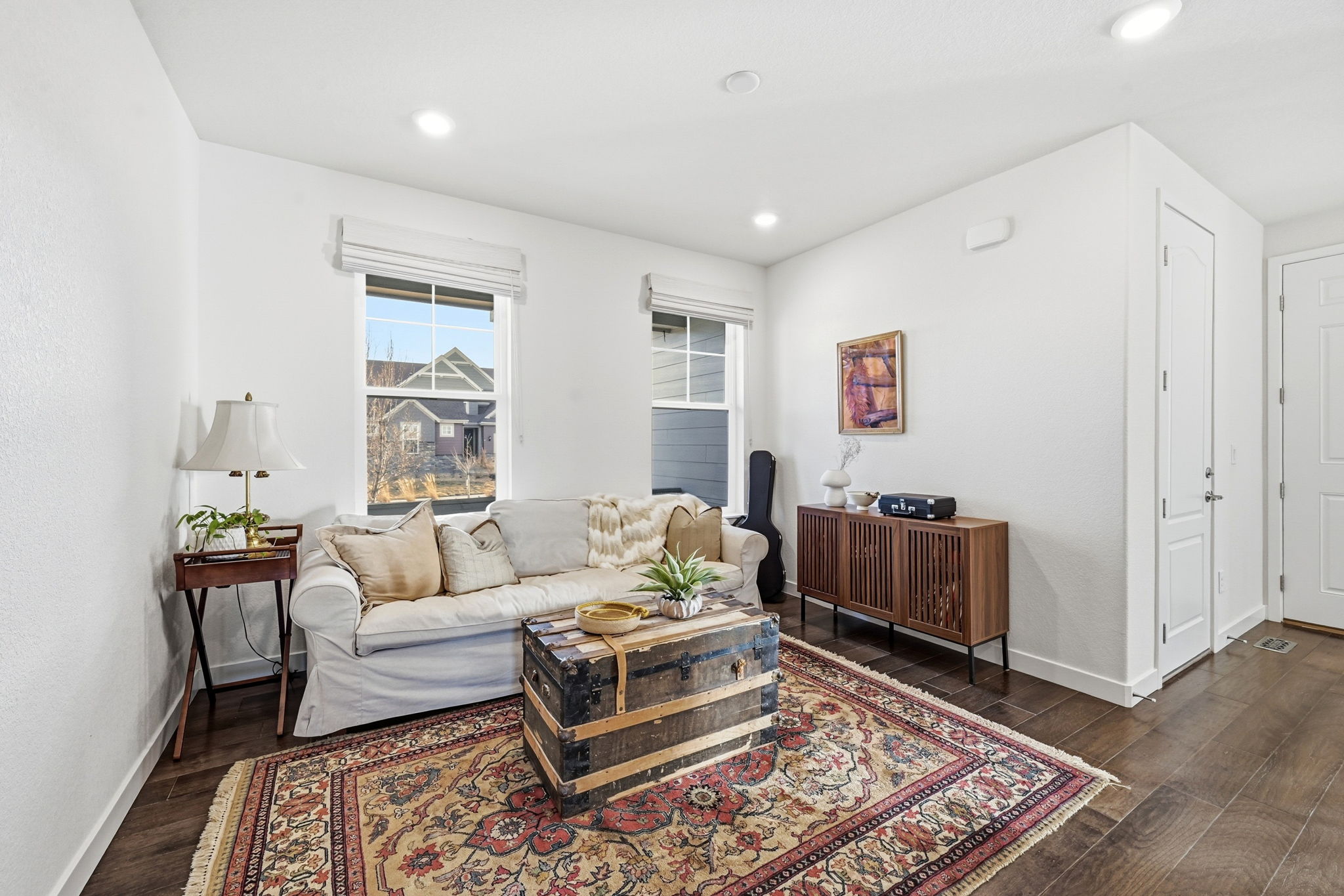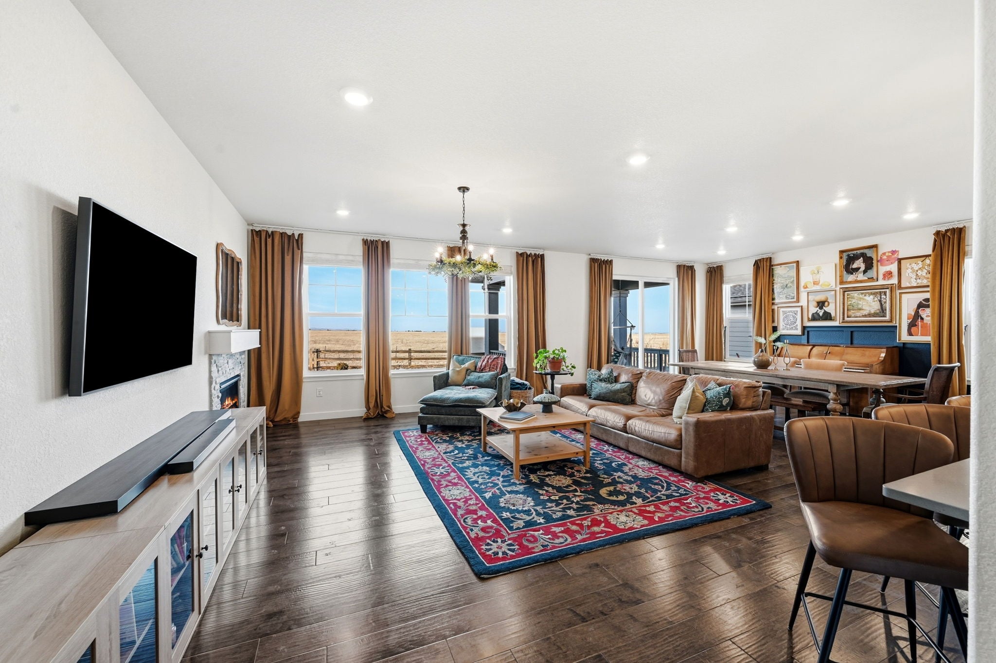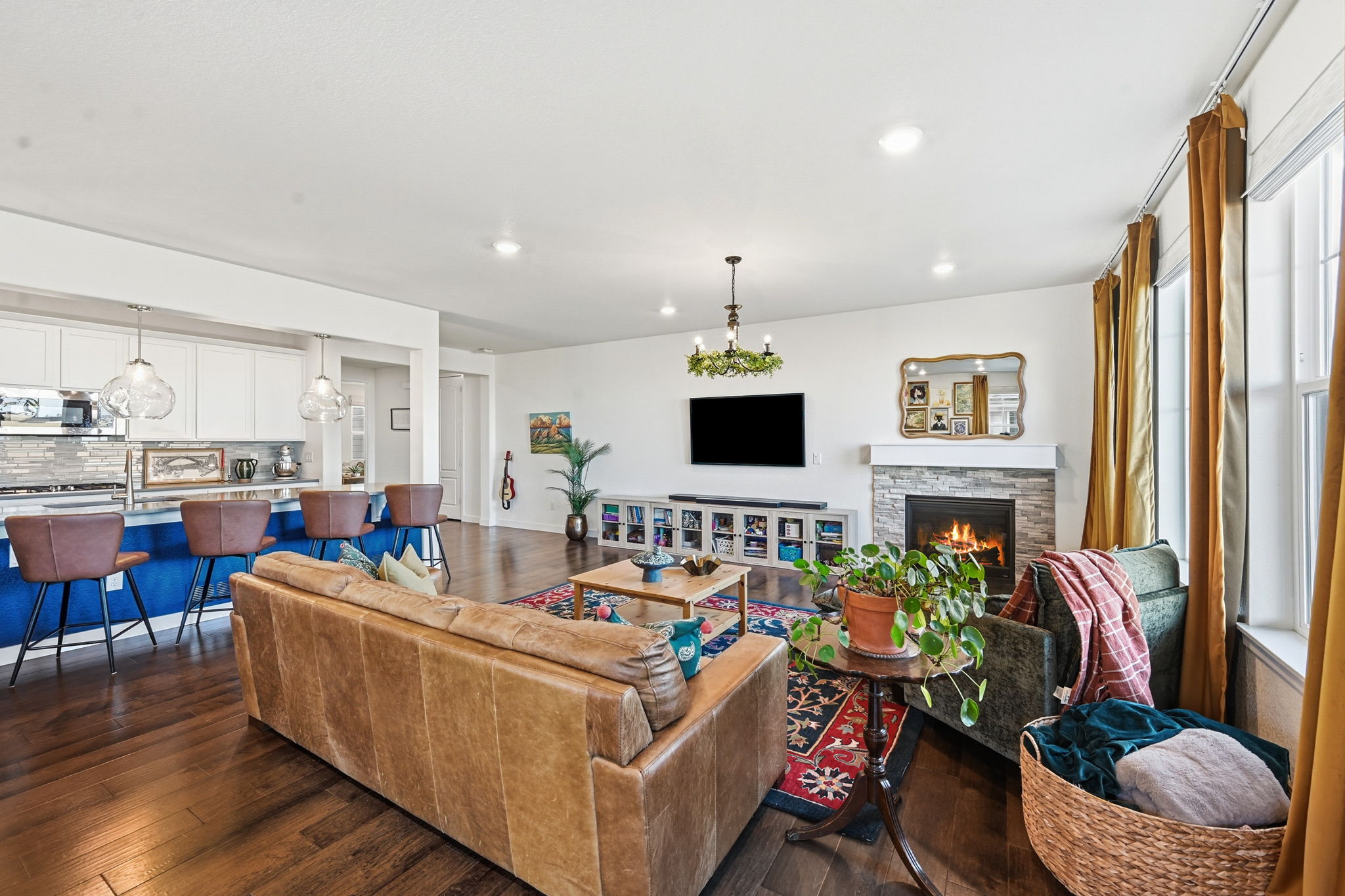 This Next Gen Superhome offers a rare two-home layout on a premium homesite backing to the wildlife refuge with mountain views including the Flatirons. The setting provides privacy, open space, and frequent wildlife sightings, creating a peaceful backdrop to everyday living. The main level offers an open floor plan with a bright great room, dining area, and a well designed kitchen centered around a large island with ample storage and prep space. Modern finishes, abundant natural light, and views of the open space behind the home make this level both functional and inviting.