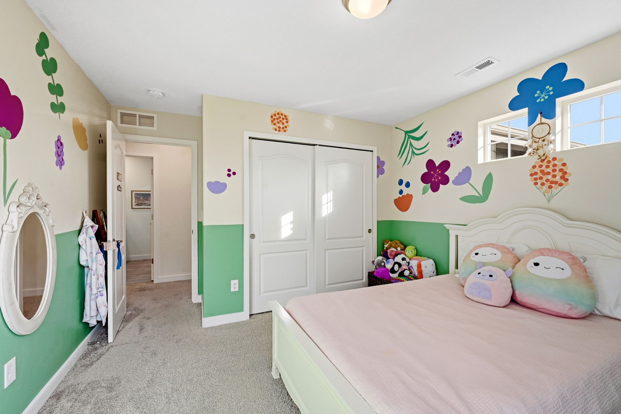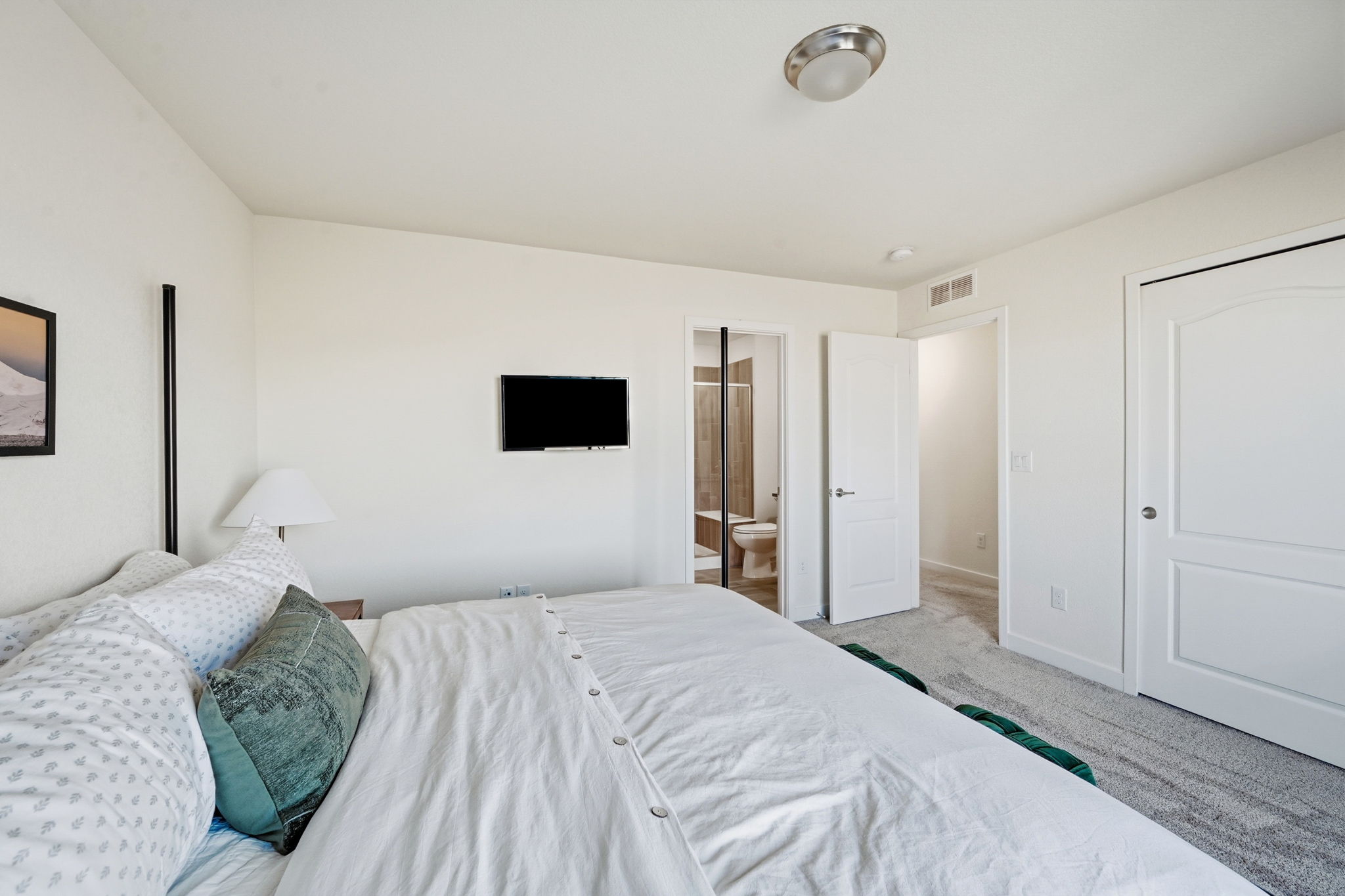 The main home features all five bedrooms located on the second level along with a large, versatile loft that works well as a second living space, media room, or play area. The primary suite is spacious and well appointed with walk in shower, dual vanities, and a large walk in closet. A second bedroom includes its own private en suite bathroom, while the remaining bedrooms are generously sized and thoughtfully laid out. In addition, the home includes over 2,000 square foot unfinished basemen The attached private apartment suite has its own separate entrance and one car garage. Inside is a comfortable living area, kitchenette with refrigerator and microwave, a primary bedroom with a spacious three quarter bath, and a secondary bedroom. This suite also includes the private deck, making it ideal for guests, extended family, or multigenerational living.