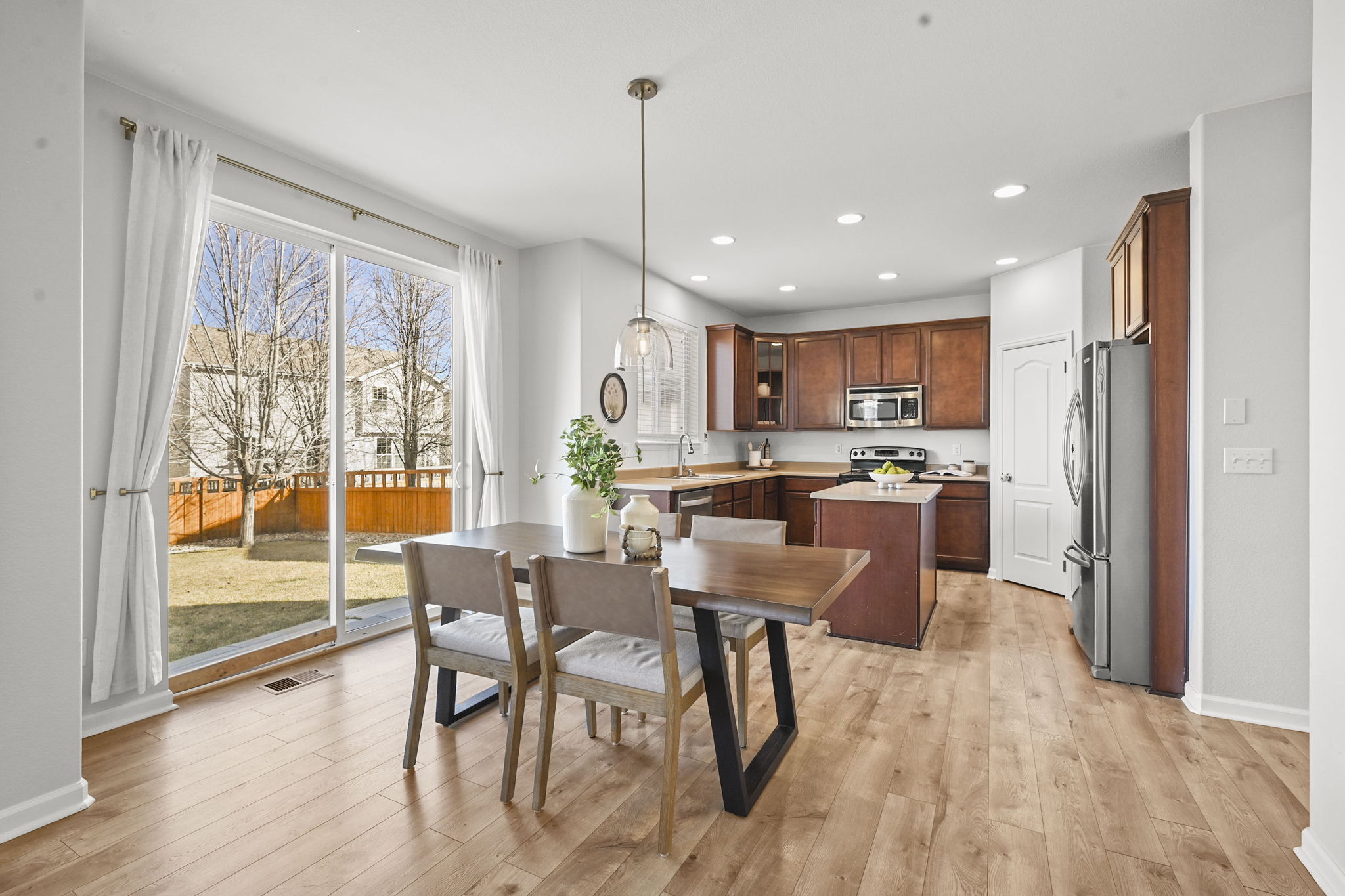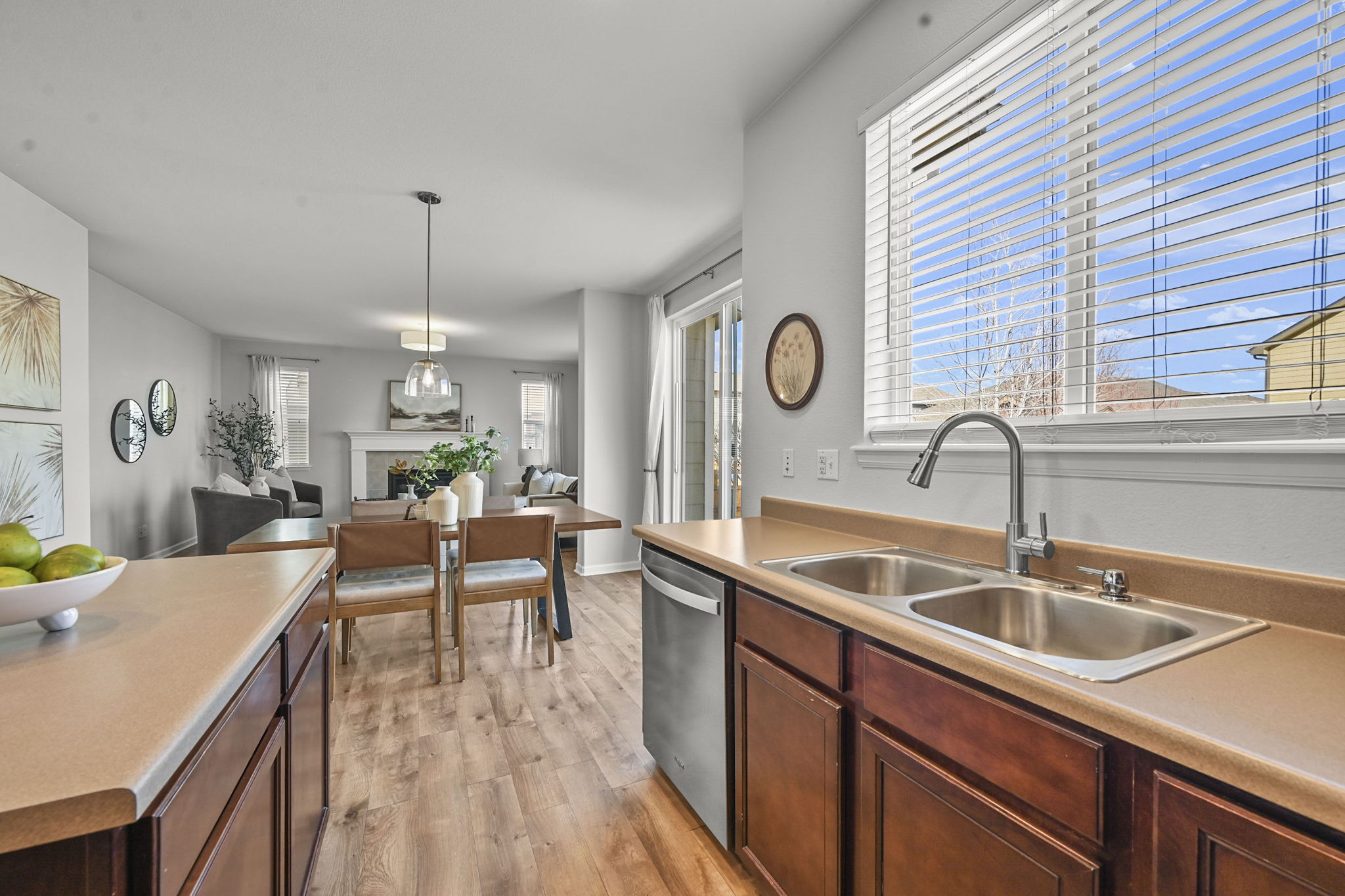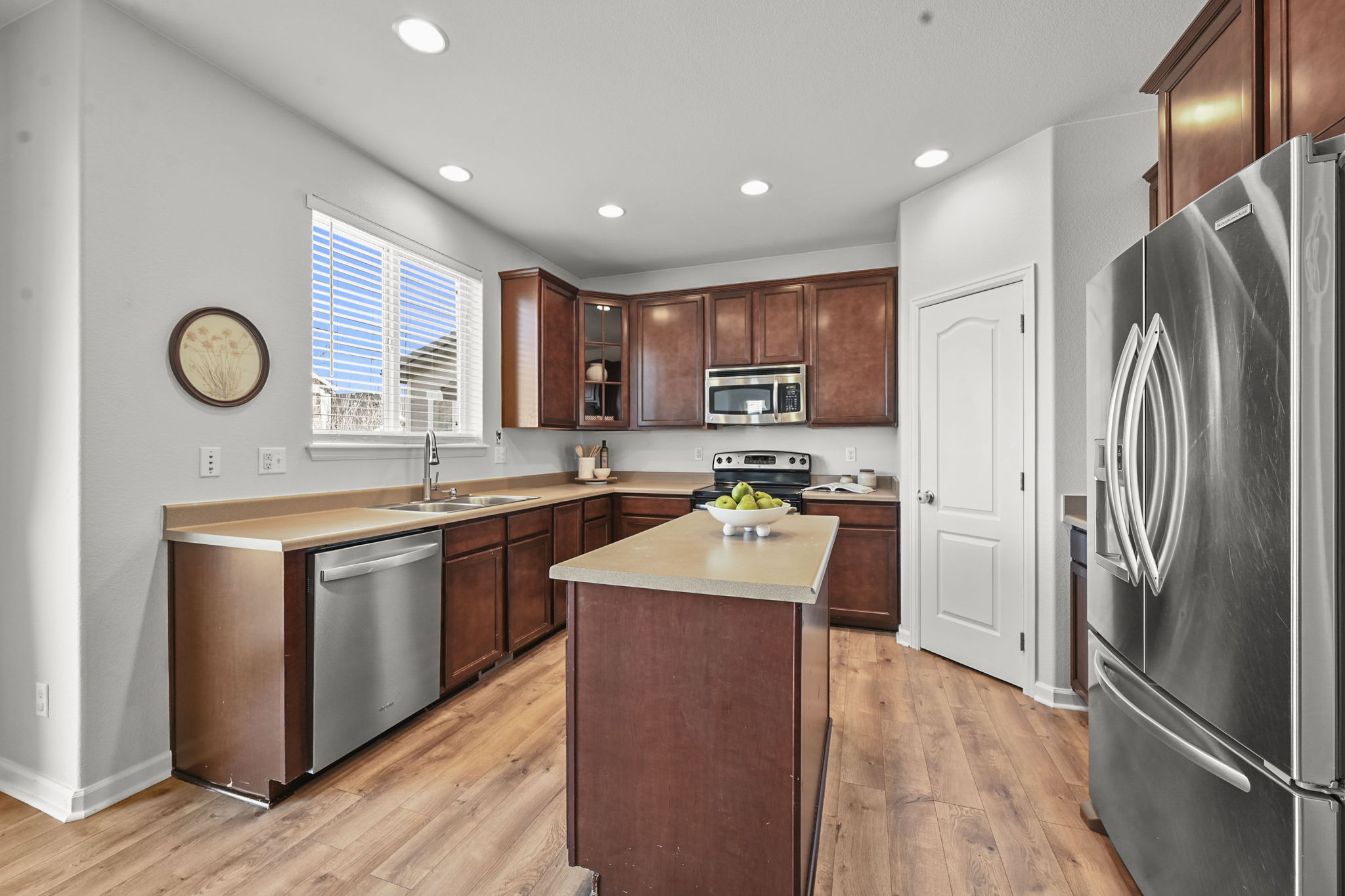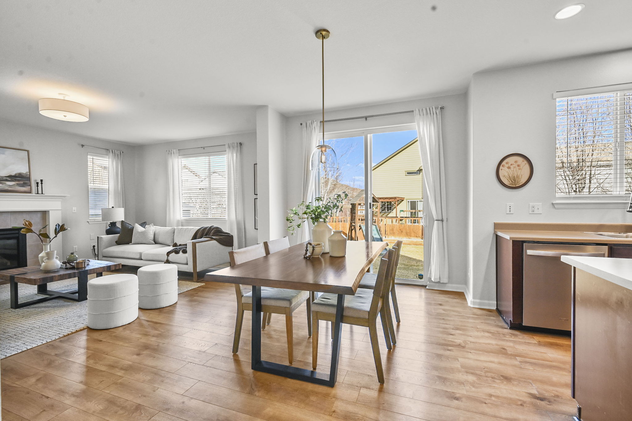 Located in the highly desirable Sweet Grass neighborhood, this spacious 5 bedroom, 4 bath home offers over 2,600 square feet of thoughtfully designed living space. The main level features durable LVP flooring throughout and a beautifully appointed kitchen with stainless steel appliances, ideal for both everyday living and entertaining. The large living room is filled with abundant natural light and anchored by a cozy fireplace, perfect for relaxing evenings at home. Upstairs, you’ll find the private primary suite complete with its own bathroom and walk-in closet, along with three additional generously sized bedrooms and an additional full bathroom to comfortably accommodate family or guests. The conveniently located upstairs laundry adds ease and functionality to daily living. The finished basement expands your living space even further, offering a private bedroom with its own en-suite bathroom ideal for guests, multigenerational living, or a secluded retreat. The oversized two-car garage features epoxy floors and a 220-volt hookup, providing extra versatility for tools, hobbies, or electric vehicle charging. Step outside to a fully fenced backyard designed for both relaxation and play. Enjoy the patio area for outdoor dining and entertaining, a dedicated garden bed for your homegrown favorites, and a playset ready for endless fun. Topped with a durable tile roof and offering access to the community pool, this home blends comfort, function, and desirable amenities in one exceptional package.