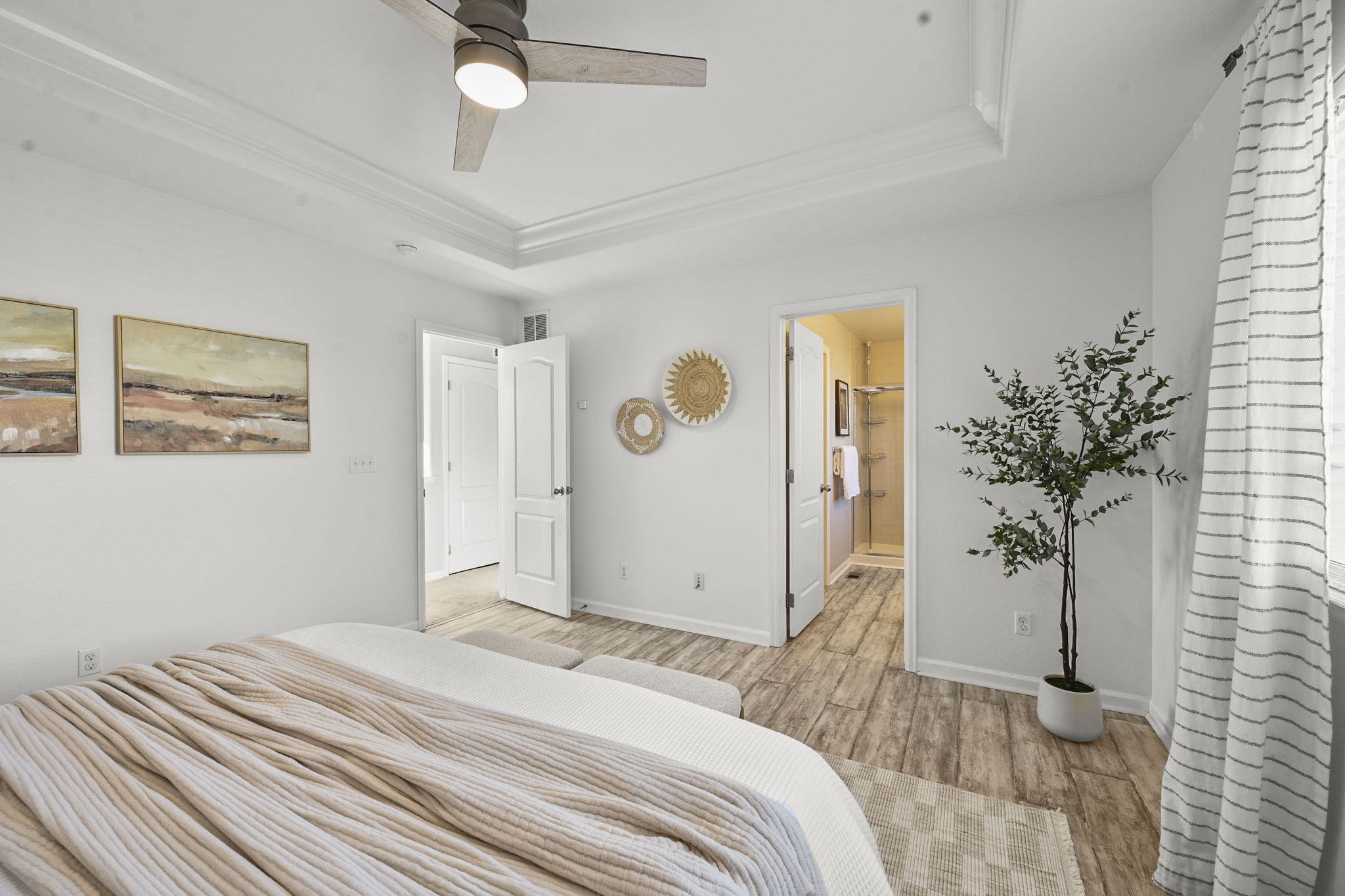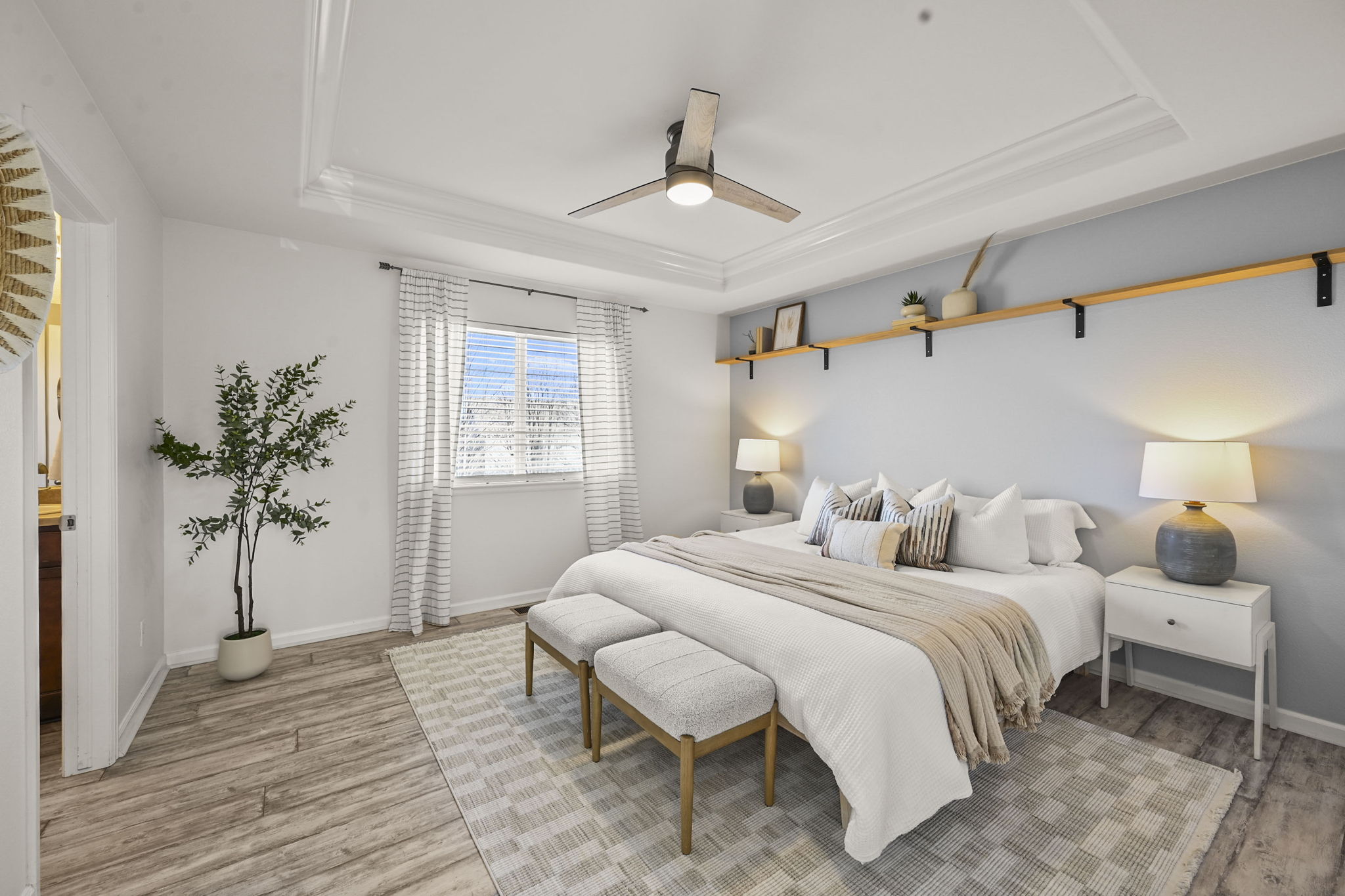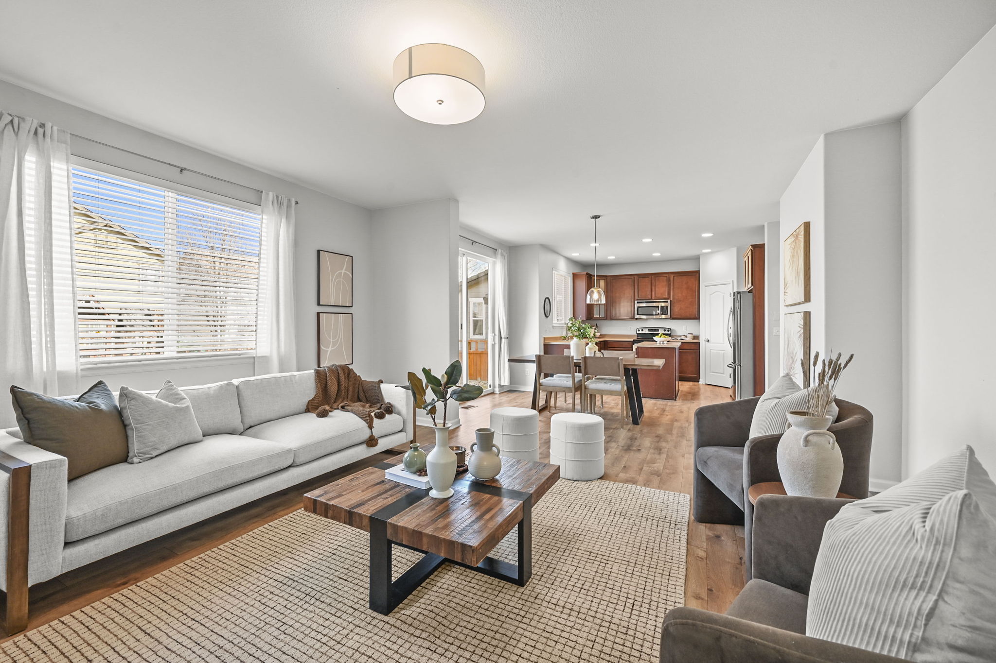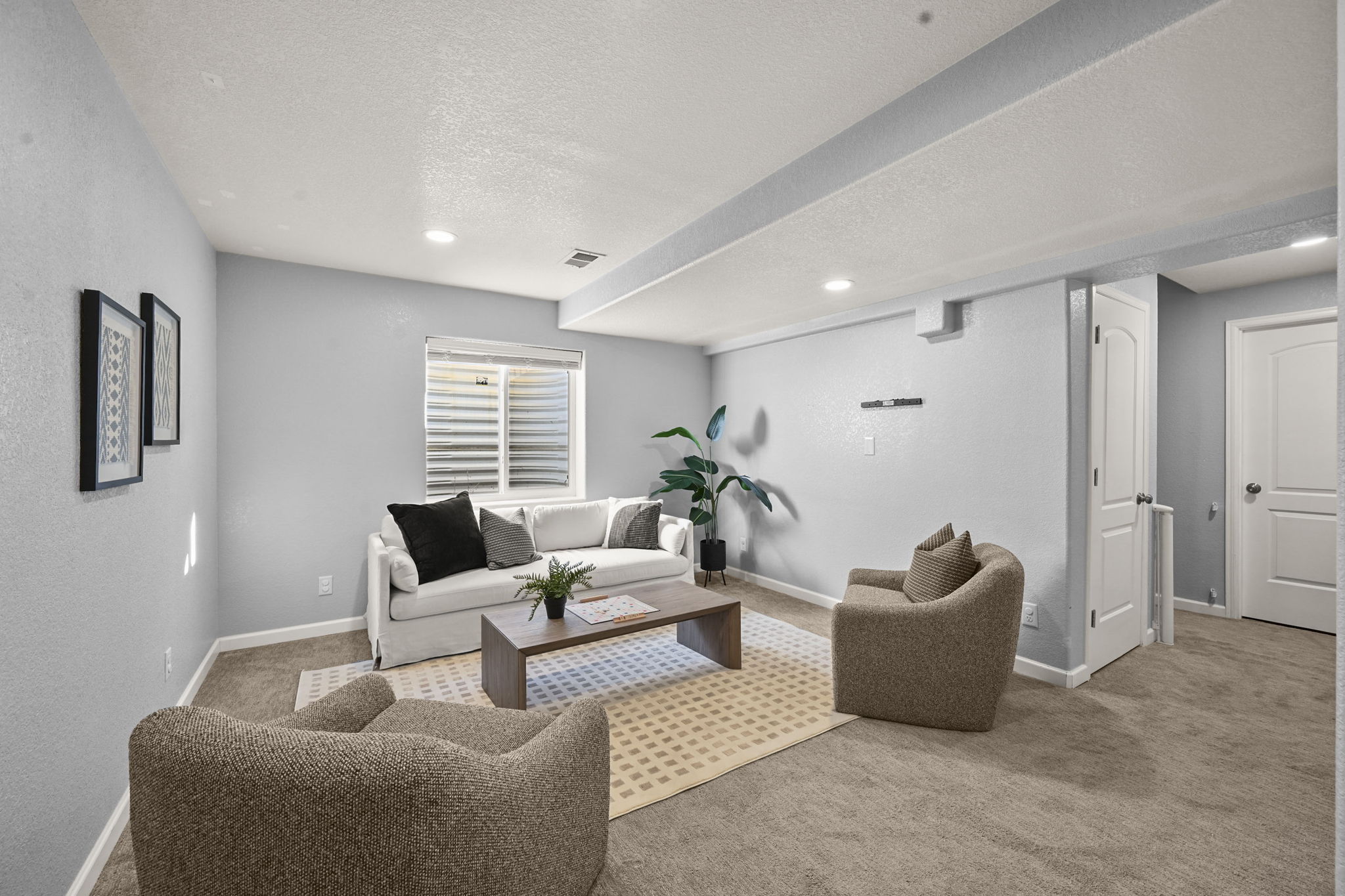 Located in the highly desirable Sweet Grass neighborhood, this spacious 5 bedroom, 4 bath home offers over 2,600 square feet of thoughtfully designed living space. The main level features durable LVP flooring throughout and a beautifully appointed kitchen with stainless steel appliances, ideal for both everyday living and entertaining. The large living room is filled with abundant natural light and anchored by a cozy fireplace, perfect for relaxing evenings at home. Upstairs, you’ll find the private primary suite complete with its own bathroom and walk-in closet, along with three additional generously sized bedrooms and an additional full bathroom to comfortably accommodate family or guests. The conveniently located upstairs laundry adds ease and functionality to daily living. The finished basement expands your living space even further, offering a private bedroom with its own en-suite bathroom ideal for guests, multigenerational living, or a secluded retreat. The oversized two-car garage features epoxy floors and a 220-volt hookup, providing extra versatility for tools, hobbies, or electric vehicle charging. Step outside to a fully fenced backyard designed for both relaxation and play. Enjoy the patio area for outdoor dining and entertaining, a dedicated garden bed for your homegrown favorites, and a playset ready for endless fun. Topped with a durable tile roof and offering access to the community pool, this home blends comfort, function, and desirable amenities in one exceptional package.