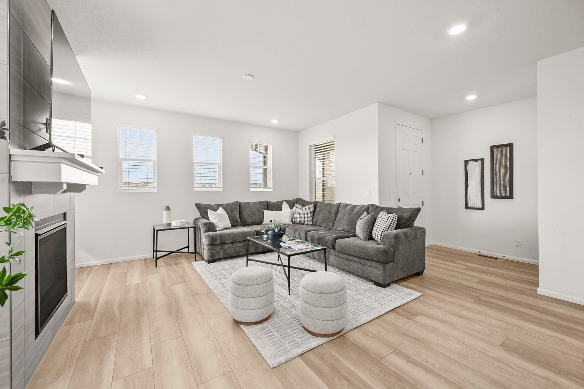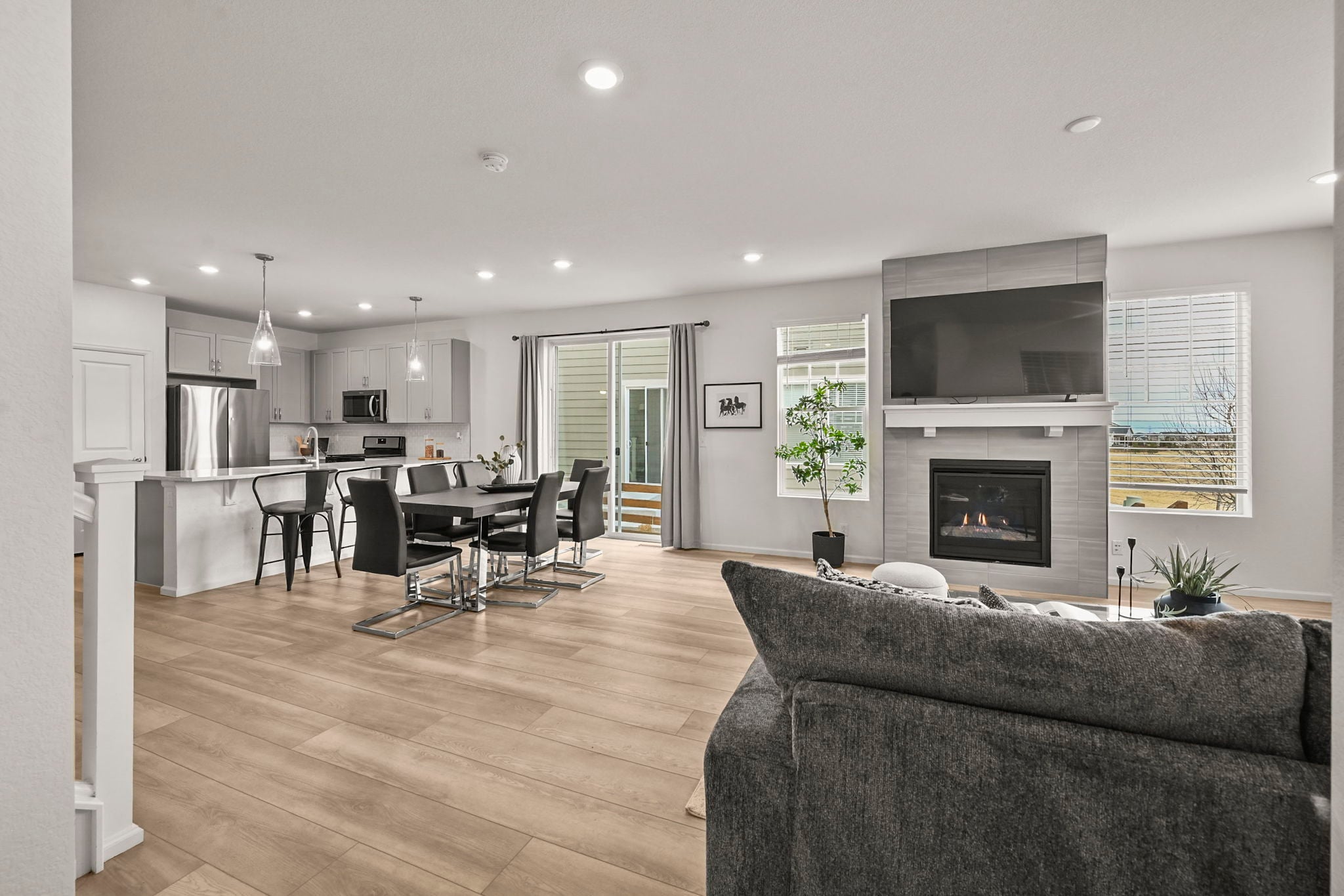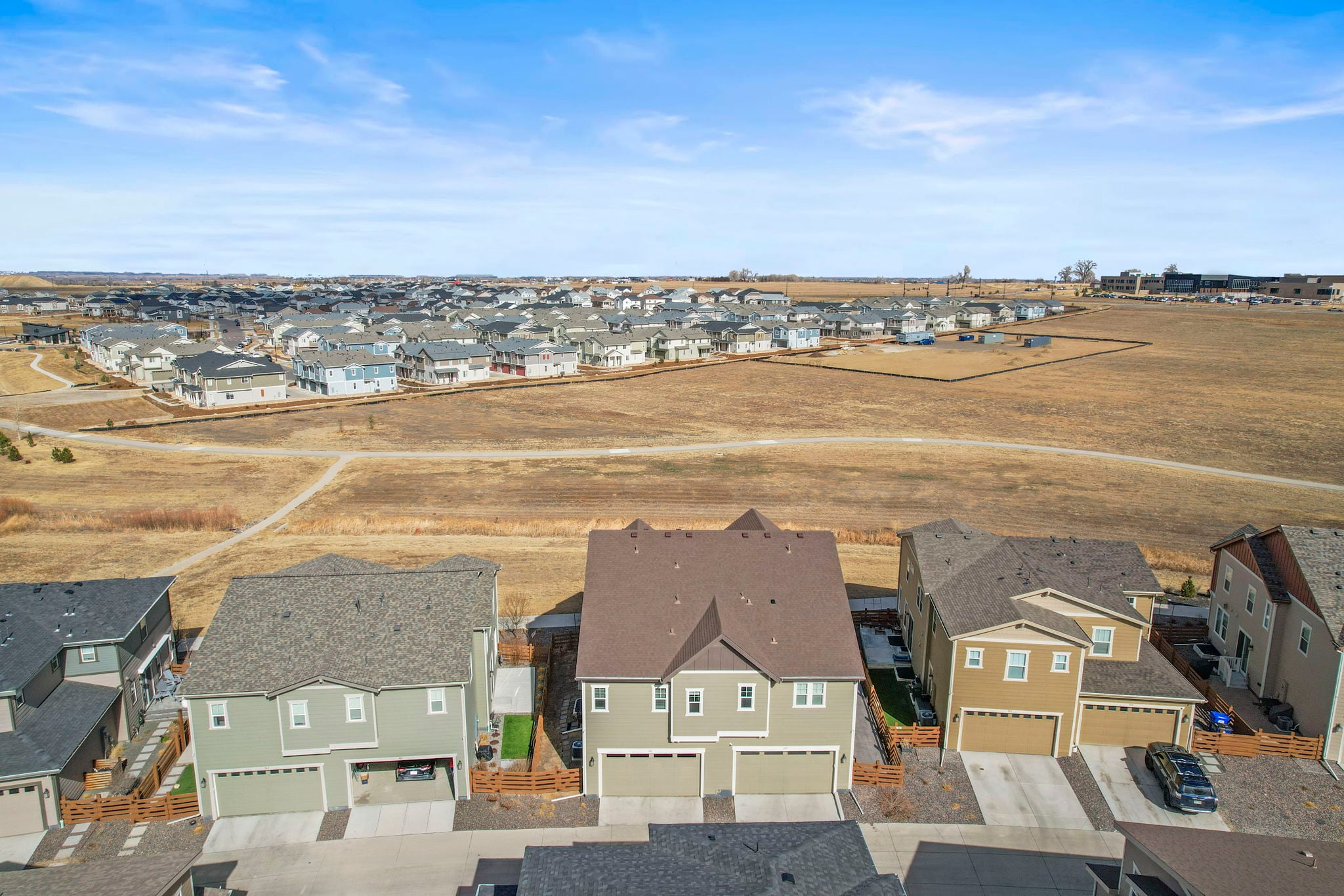 Welcome to 361 Rodden Drive in the highly desirable Colliers Hill neighborhood in Erie, Colorado. Perfectly positioned fronting to open space, this home offers privacy, views, and direct access to scenic walking trails. With approximately 2,750 square feet of thoughtfully designed living space, this 4-bedroom, 4-bathroom home blends comfort, style, and functionality. The main floor features an open-concept layout ideal for both entertaining and everyday living. The kitchen is beautifully appointed with stainless steel appliances, quartz countertops, a spacious breakfast bar, and a dedicated dining area. The living room is warm and inviting with a cozy fireplace and an abundance of windows that fill the space with natural light. Sliding glass doors lead directly to your patio, creating seamless indoor-outdoor living. Upstairs, you’ll find a spacious primary suite complete with a luxurious five-piece en suite bathroom and a large walk-in closet. The upper level also includes a versatile loft, convenient laundry room, two additional bedrooms, and a full bathroom. The finished basement offers impressive additional living space, including a generous family room featuring a custom wet bar, perfect for entertaining or relaxing. You’ll also find a large fourth bedroom and a full bathroom, creating an ideal setup for guests or multi-generational living. Located in the sought-after Colliers Hill community, residents enjoy access to open space, walking trails, and a beautiful community clubhouse. This home truly checks all the boxes! Location, layout, and lifestyle.