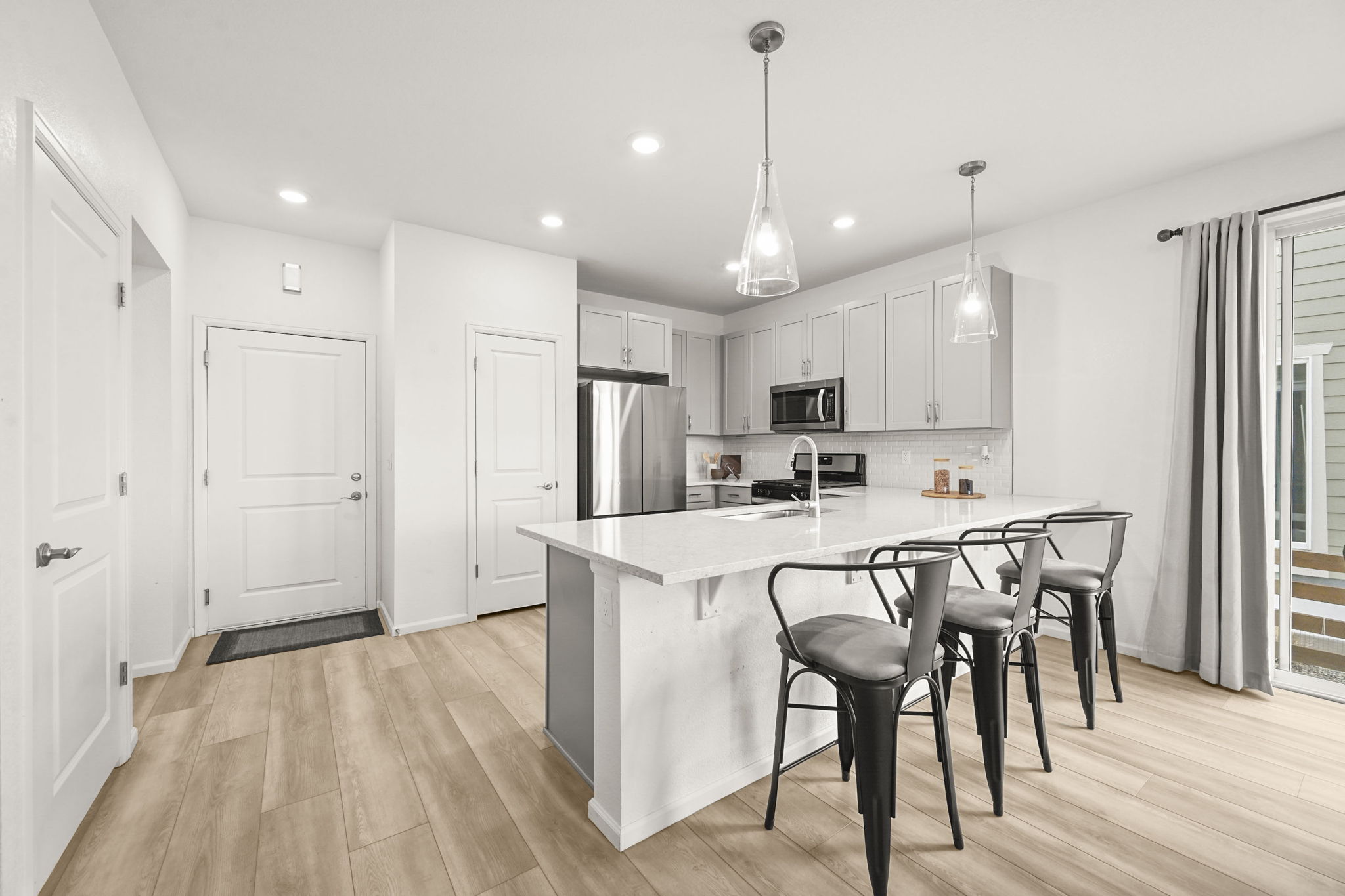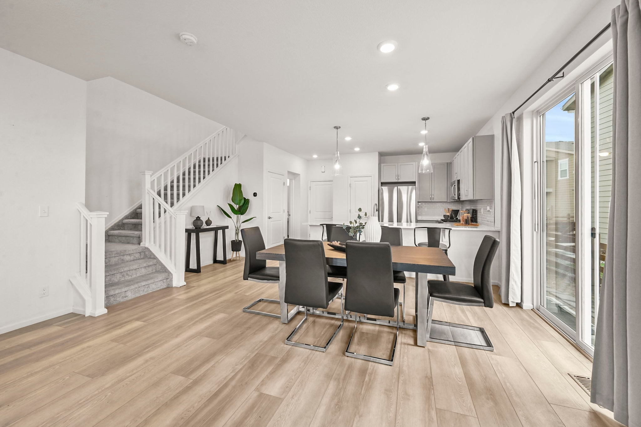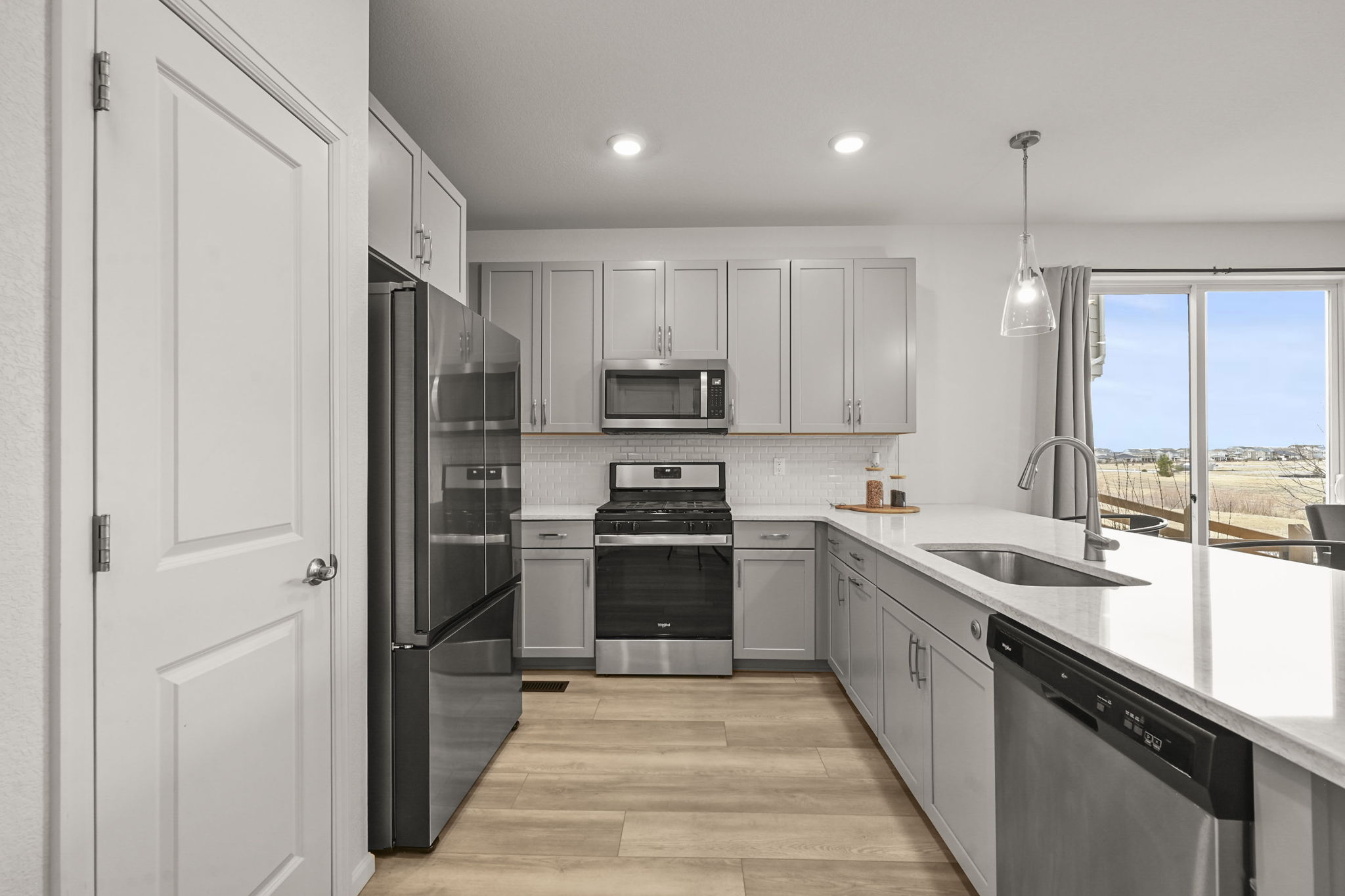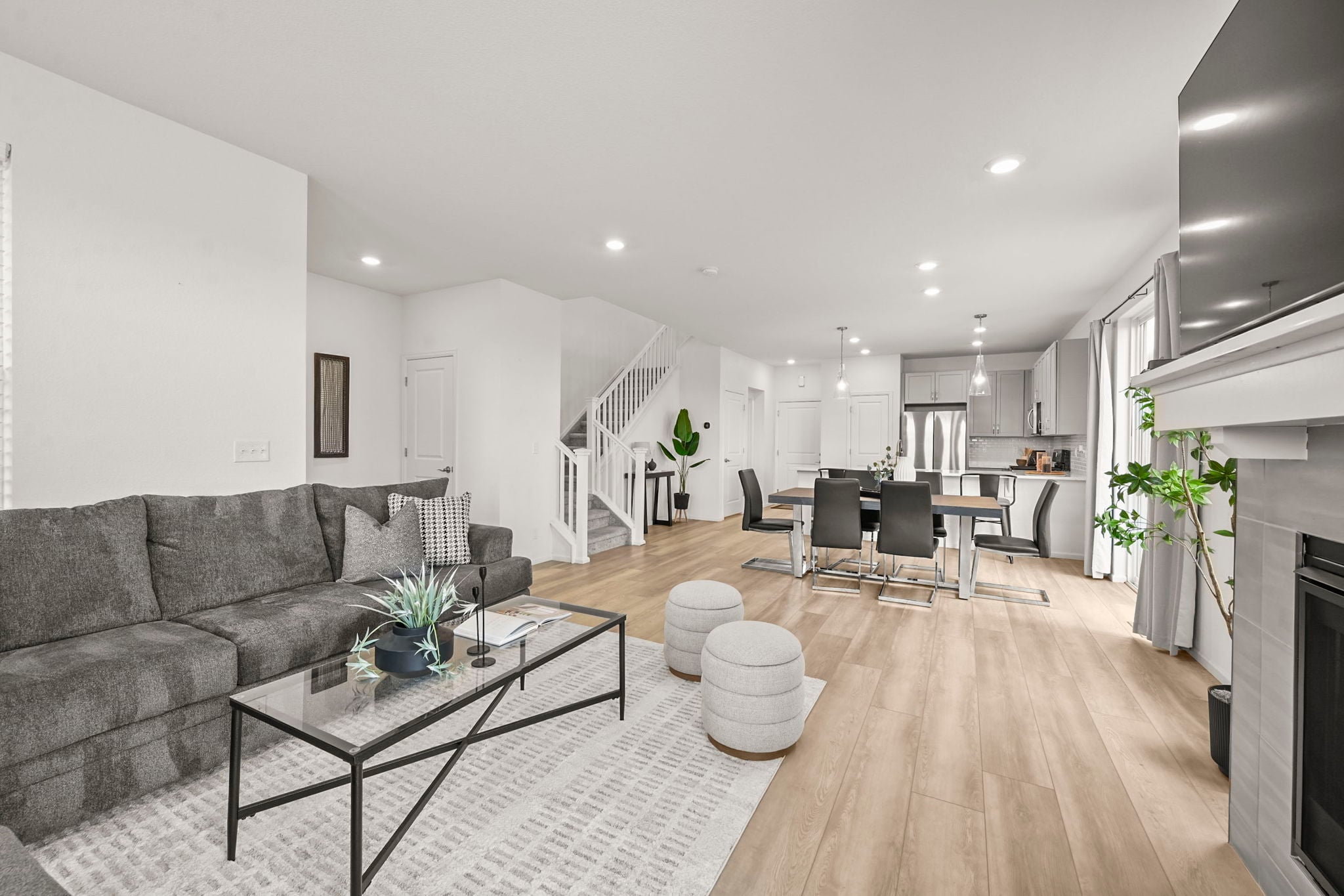 Welcome to 361 Rodden Drive in the highly desirable Colliers Hill neighborhood in Erie, Colorado. Perfectly positioned fronting to open space, this home offers privacy, views, and direct access to scenic walking trails. With approximately 2,750 square feet of thoughtfully designed living space, this 4-bedroom, 4-bathroom home blends comfort, style, and functionality. The main floor features an open-concept layout ideal for both entertaining and everyday living. The kitchen is beautifully appointed with stainless steel appliances, quartz countertops, a spacious breakfast bar, and a dedicated dining area. The living room is warm and inviting with a cozy fireplace and an abundance of windows that fill the space with natural light. Sliding glass doors lead directly to your patio, creating seamless indoor-outdoor living. Upstairs, you’ll find a spacious primary suite complete with a luxurious five-piece en suite bathroom and a large walk-in closet. The upper level also includes a versatile loft, convenient laundry room, two additional bedrooms, and a full bathroom. The finished basement offers impressive additional living space, including a generous family room featuring a custom wet bar, perfect for entertaining or relaxing. You’ll also find a large fourth bedroom and a full bathroom, creating an ideal setup for guests or multi-generational living. Located in the sought-after Colliers Hill community, residents enjoy access to open space, walking trails, and a beautiful community clubhouse. This home truly checks all the boxes! Location, layout, and lifestyle.