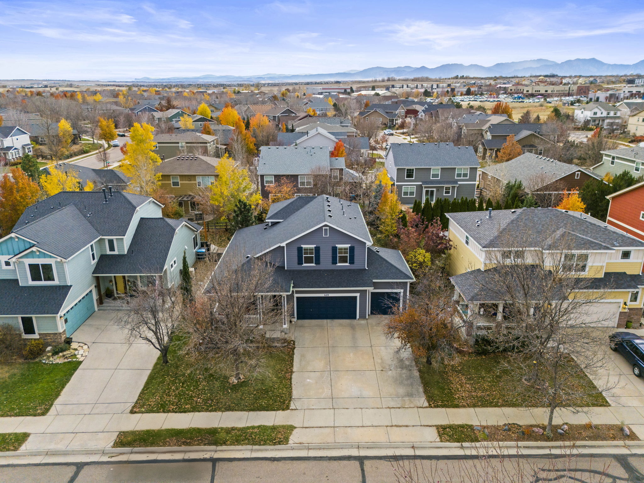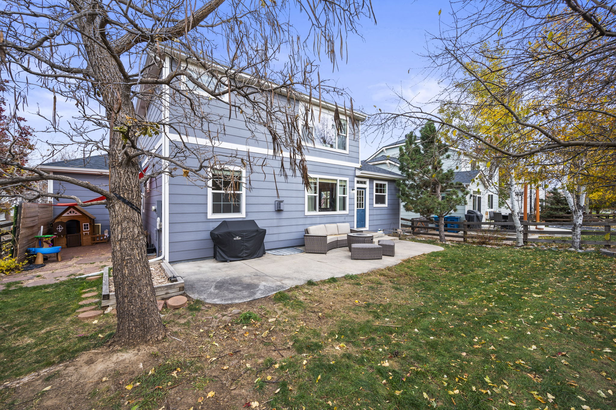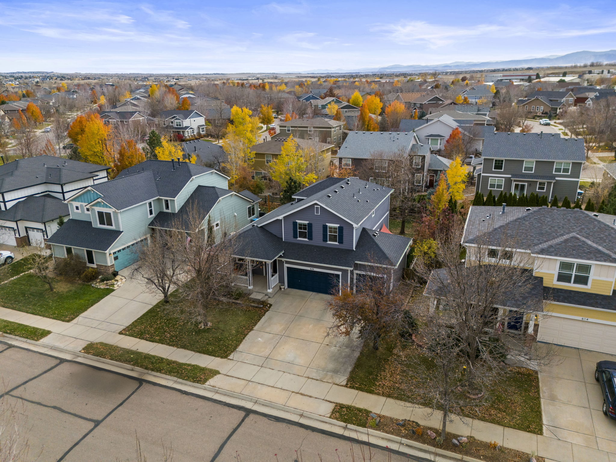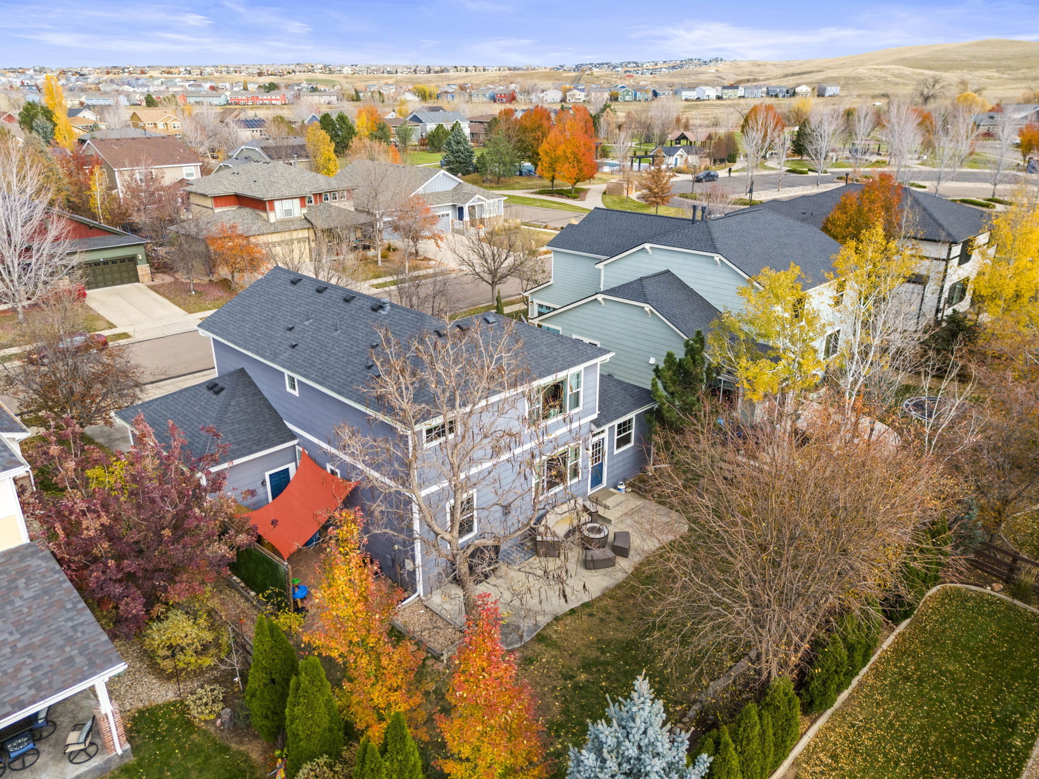 Welcome home to this beautifully maintained 4-bedroom plus office residence, ideally located just one block from a neighborhood park and walking distance to charming downtown Erie! This home offers comfort and peace of mind with numerous updates, including a new furnace (2024), roof (2023), most windows (2023), water heater (2022), washer and dryer (2023), refrigerator (2025), dishwasher (2025), new toilets and kitchen faucet. A smart leak detection system has also been installed on the main water line. Enjoy the covered front porch, perfect for cozy fall evenings or host gatherings on the large back patio. A side patio with shade provides an ideal play area for kids, and the fenced yard with mature trees ensures privacy and tranquility. Inside, the spacious kitchen features a large island with breakfast bar, pantry, and open flow to both the dining and living rooms perfect for entertaining. The living room offers built-ins and a cozy gas fireplace. The main level also includes a bedroom and full bath for guests, a private office with french doors, and a dedicated laundry room. Upstairs, the large primary retreat boasts abundant natural light, a five-piece ensuite bath, and a walk-in closet. Two additional bedrooms share a full hall bath. The unfinished basement offers excellent potential to create a gym, rec room, or additional living space. With a three-car garage, thoughtful updates throughout, and an unbeatable location near parks and downtown amenities, this home truly has it all!