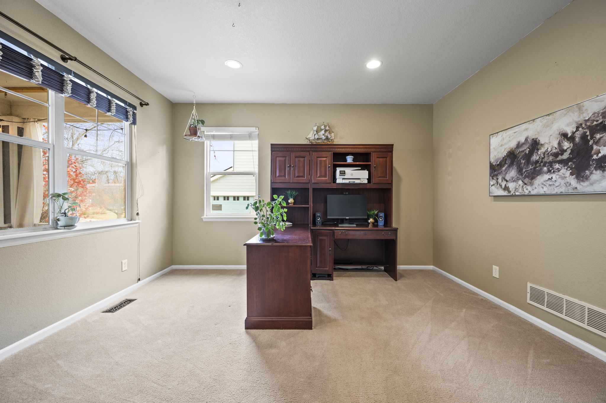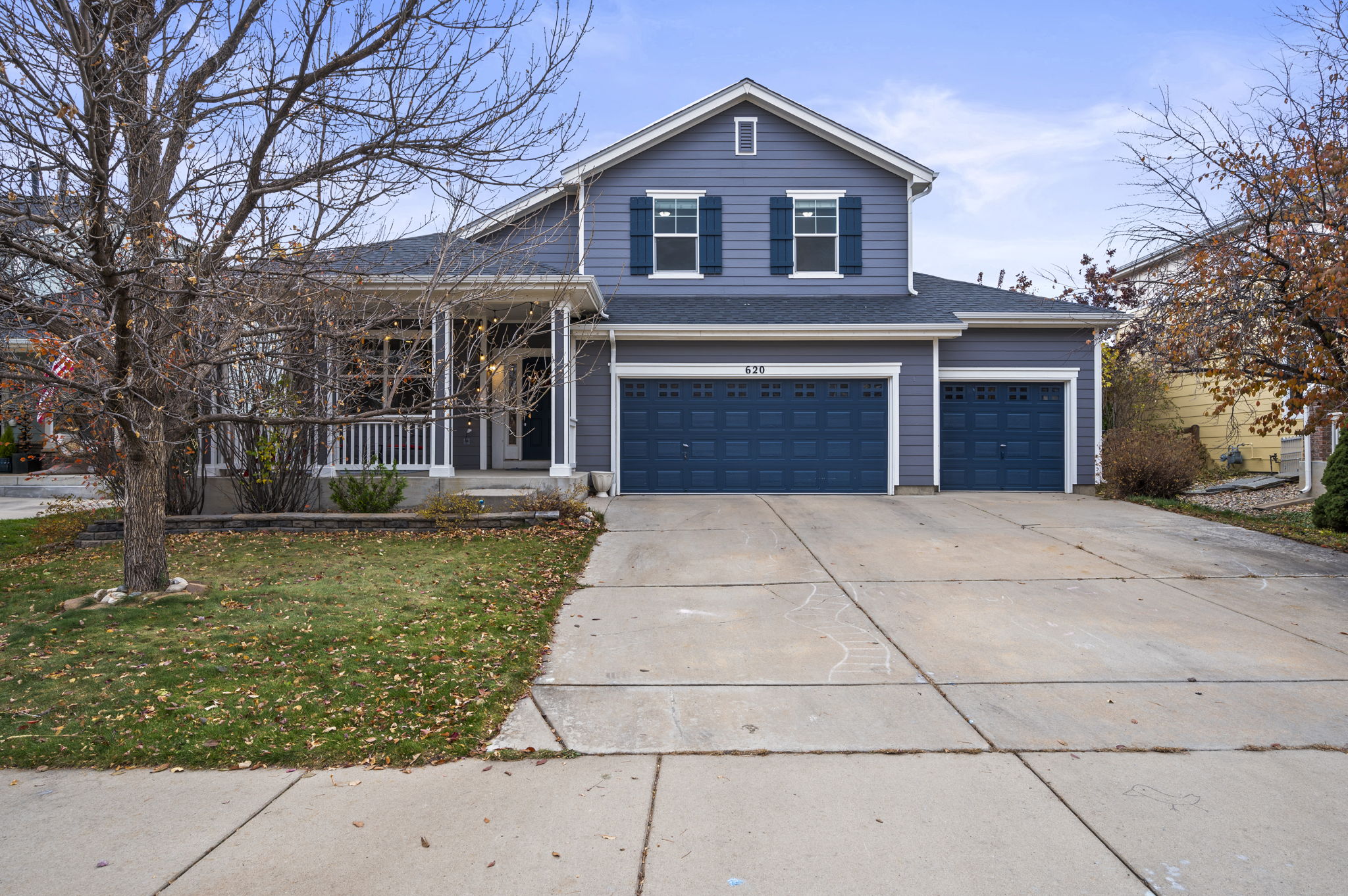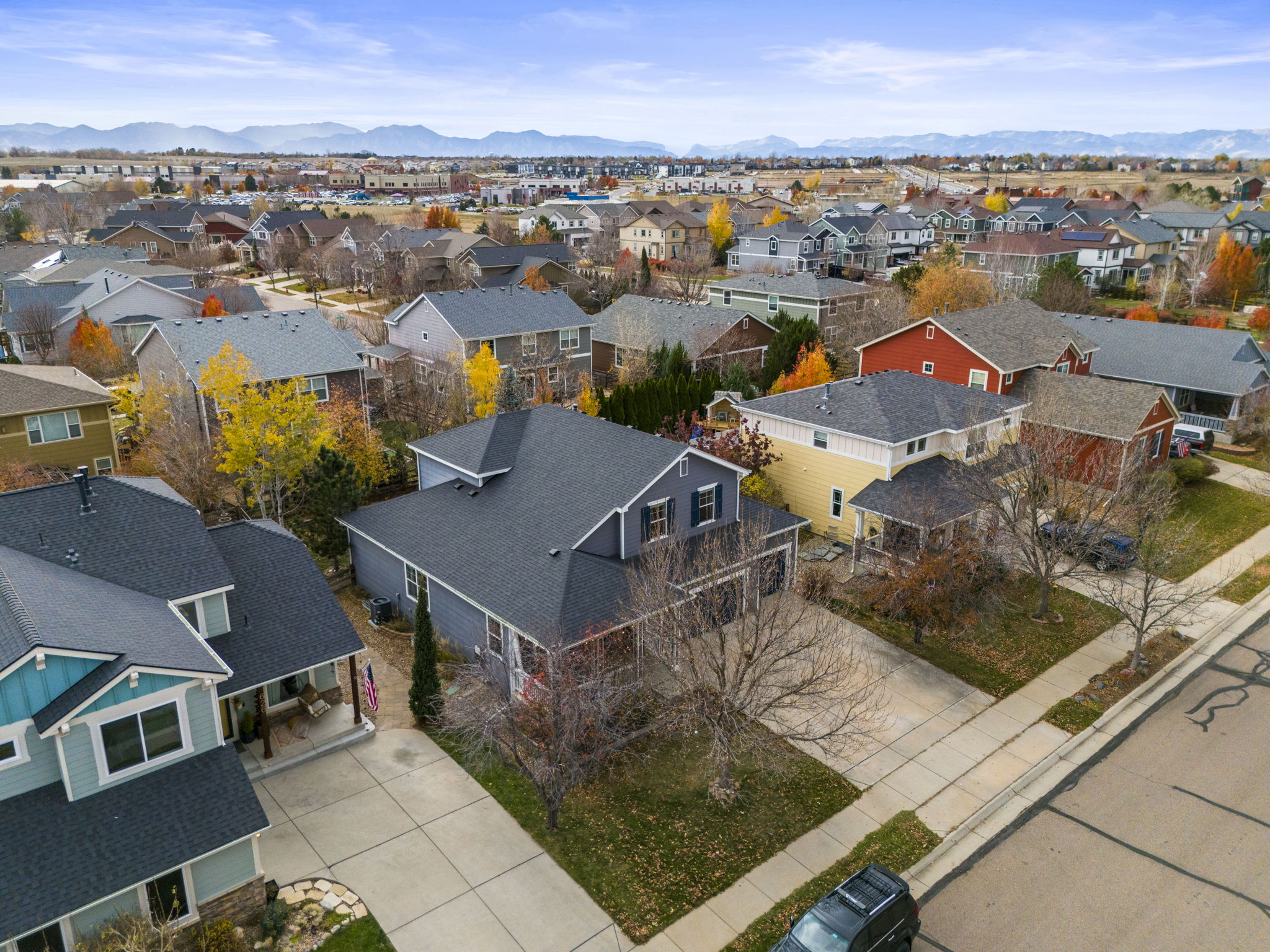 Welcome home to this beautifully maintained 4-bedroom plus office residence, ideally located just one block from a neighborhood park and walking distance to charming downtown Erie! This home offers comfort and peace of mind with numerous updates, including a new furnace (2024), roof (2023), most windows (2023), water heater (2022), washer and dryer (2023), refrigerator (2025), dishwasher (2025), new toilets and kitchen faucet. A smart leak detection system has also been installed on the main water line. Enjoy the covered front porch, perfect for cozy fall evenings or host gatherings on the large back patio. A side patio with shade provides an ideal play area for kids, and the fenced yard with mature trees ensures privacy and tranquility. Inside, the spacious kitchen features a large island with breakfast bar, pantry, and open flow to both the dining and living rooms perfect for entertaining. The living room offers built-ins and a cozy gas fireplace. The main level also includes a bedroom and full bath for guests, a private office with french doors, and a dedicated laundry room. Upstairs, the large primary retreat boasts abundant natural light, a five-piece ensuite bath, and a walk-in closet. Two additional bedrooms share a full hall bath. The unfinished basement offers excellent potential to create a gym, rec room, or additional living space. With a three-car garage, thoughtful updates throughout, and an unbeatable location near parks and downtown amenities, this home truly has it all!