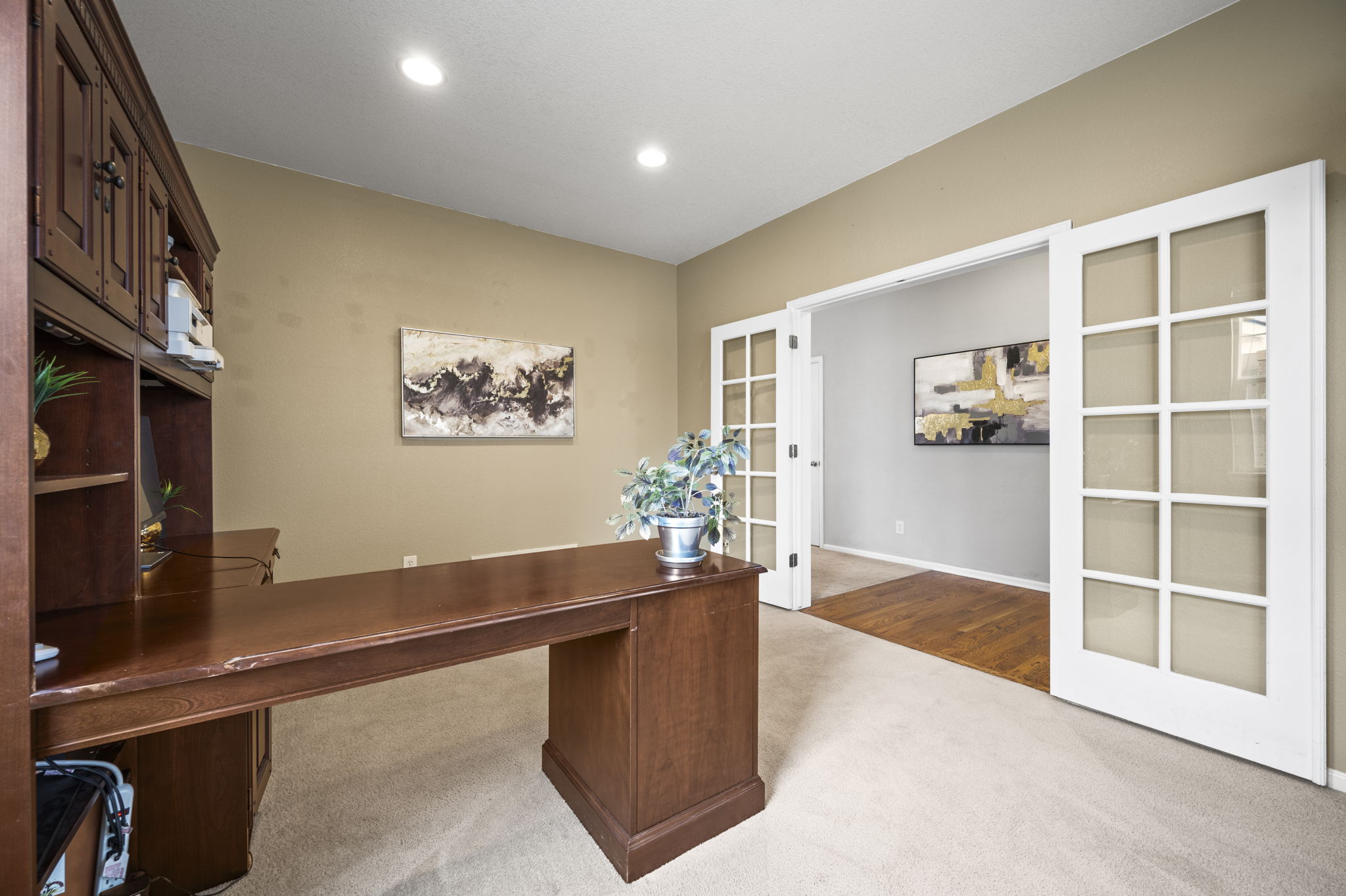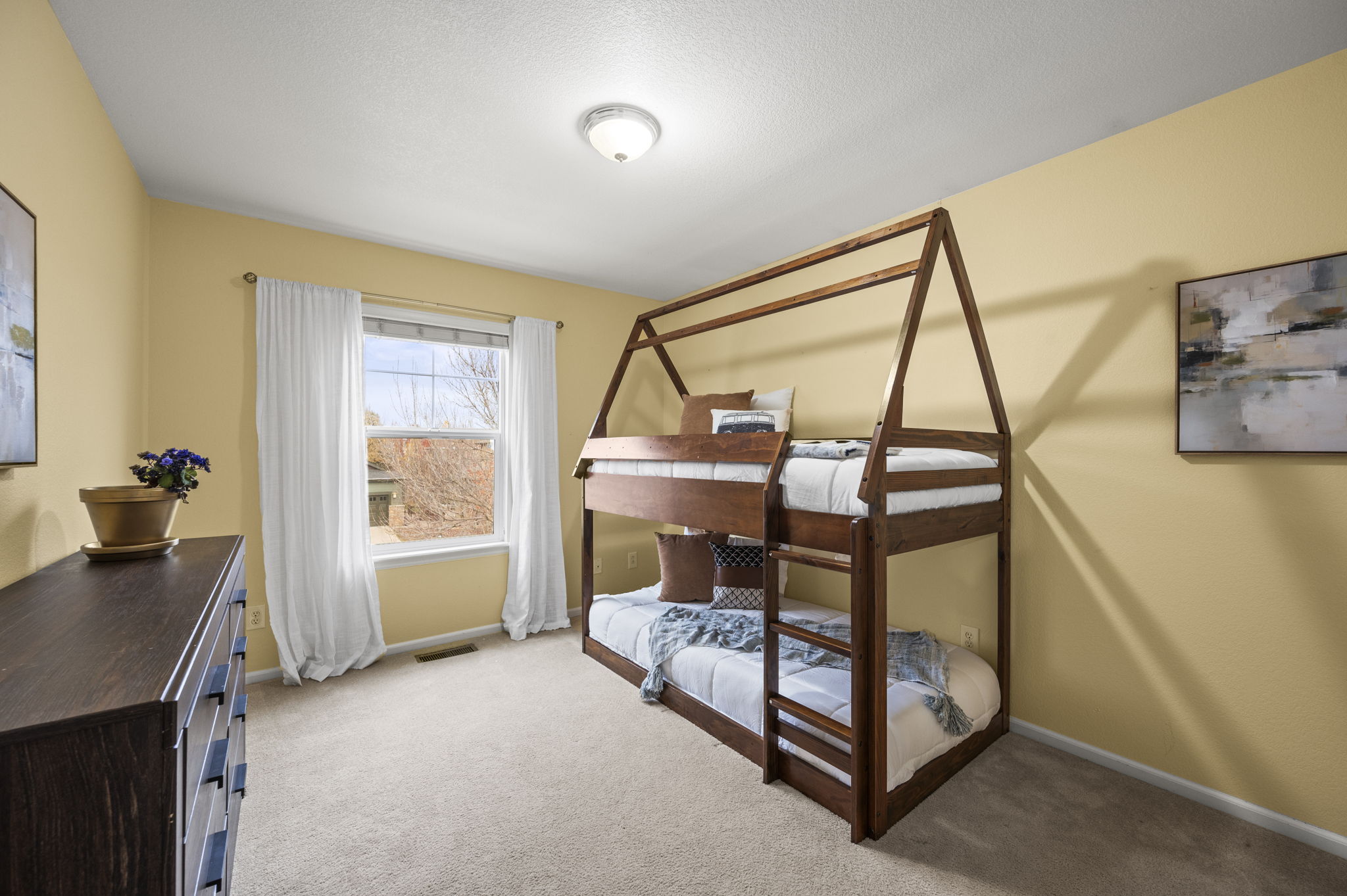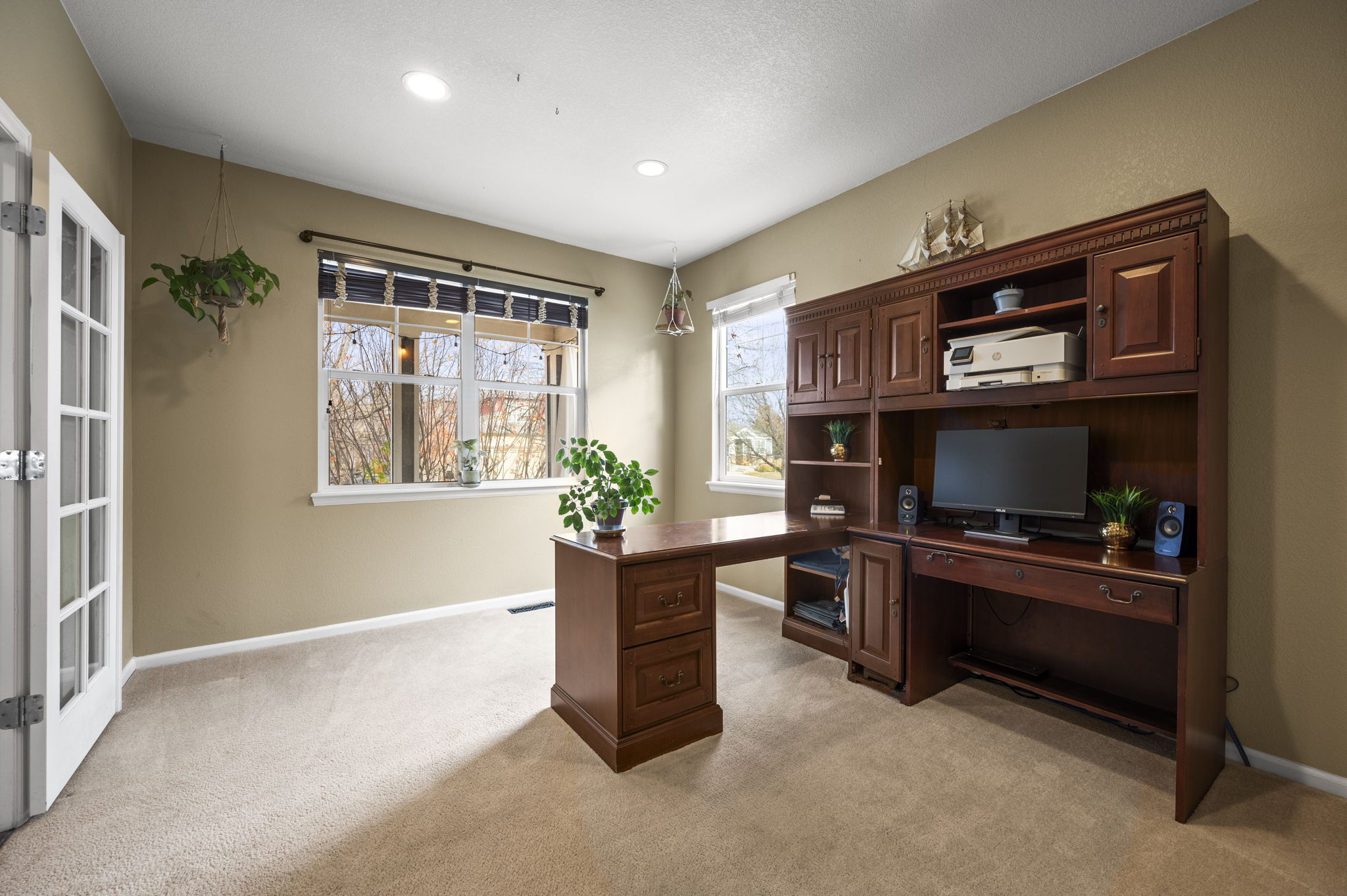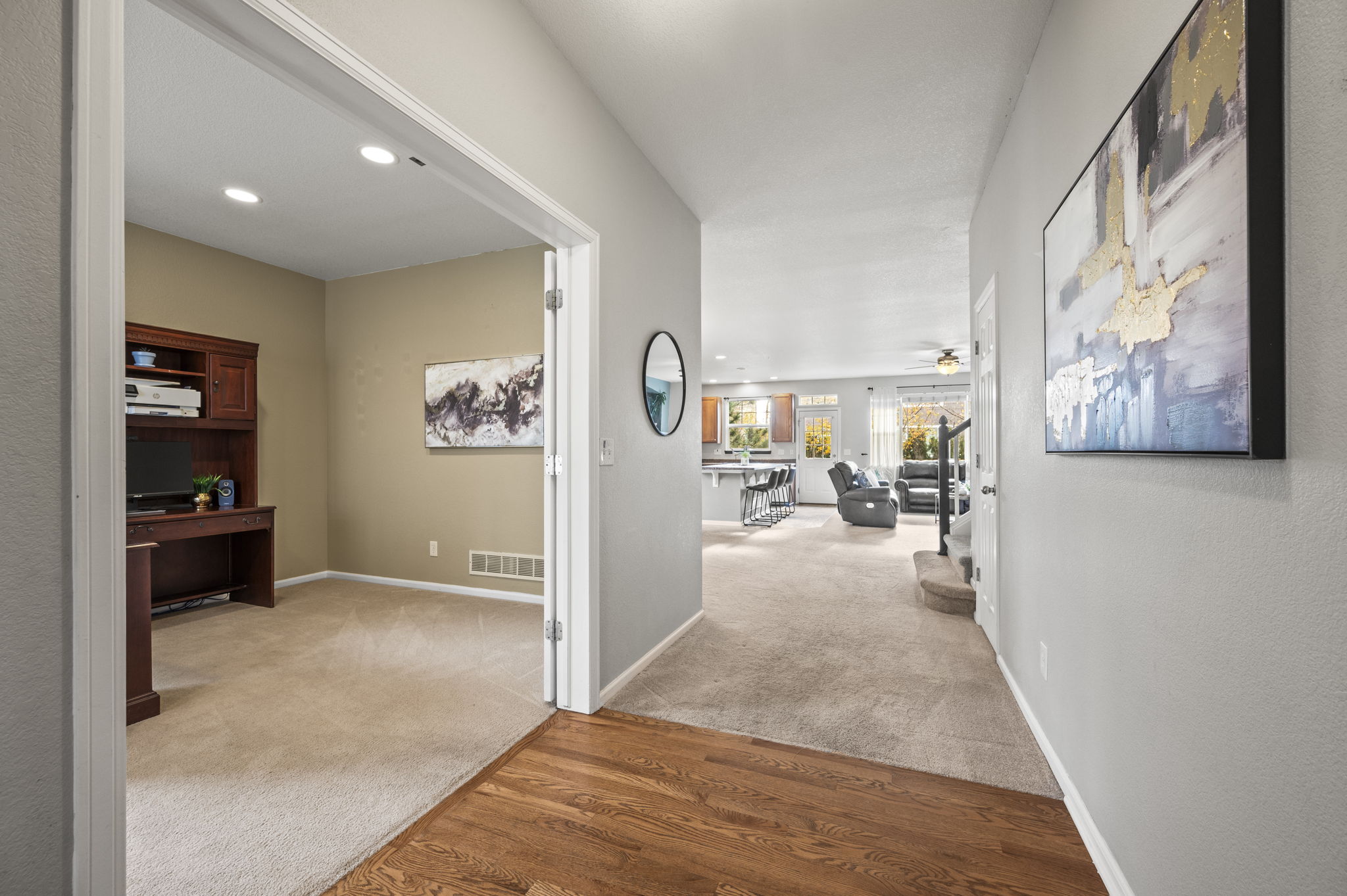 Welcome home to this beautifully maintained 4-bedroom plus office residence, ideally located just one block from a neighborhood park and walking distance to charming downtown Erie! This home offers comfort and peace of mind with numerous updates, including a new furnace (2024), roof (2023), most windows (2023), water heater (2022), washer and dryer (2023), refrigerator (2025), dishwasher (2025), new toilets and kitchen faucet. A smart leak detection system has also been installed on the main water line. Enjoy the covered front porch, perfect for cozy fall evenings or host gatherings on the large back patio. A side patio with shade provides an ideal play area for kids, and the fenced yard with mature trees ensures privacy and tranquility. Inside, the spacious kitchen features a large island with breakfast bar, pantry, and open flow to both the dining and living rooms perfect for entertaining. The living room offers built-ins and a cozy gas fireplace. The main level also includes a bedroom and full bath for guests, a private office with french doors, and a dedicated laundry room. Upstairs, the large primary retreat boasts abundant natural light, a five-piece ensuite bath, and a walk-in closet. Two additional bedrooms share a full hall bath. The unfinished basement offers excellent potential to create a gym, rec room, or additional living space. With a three-car garage, thoughtful updates throughout, and an unbeatable location near parks and downtown amenities, this home truly has it all!