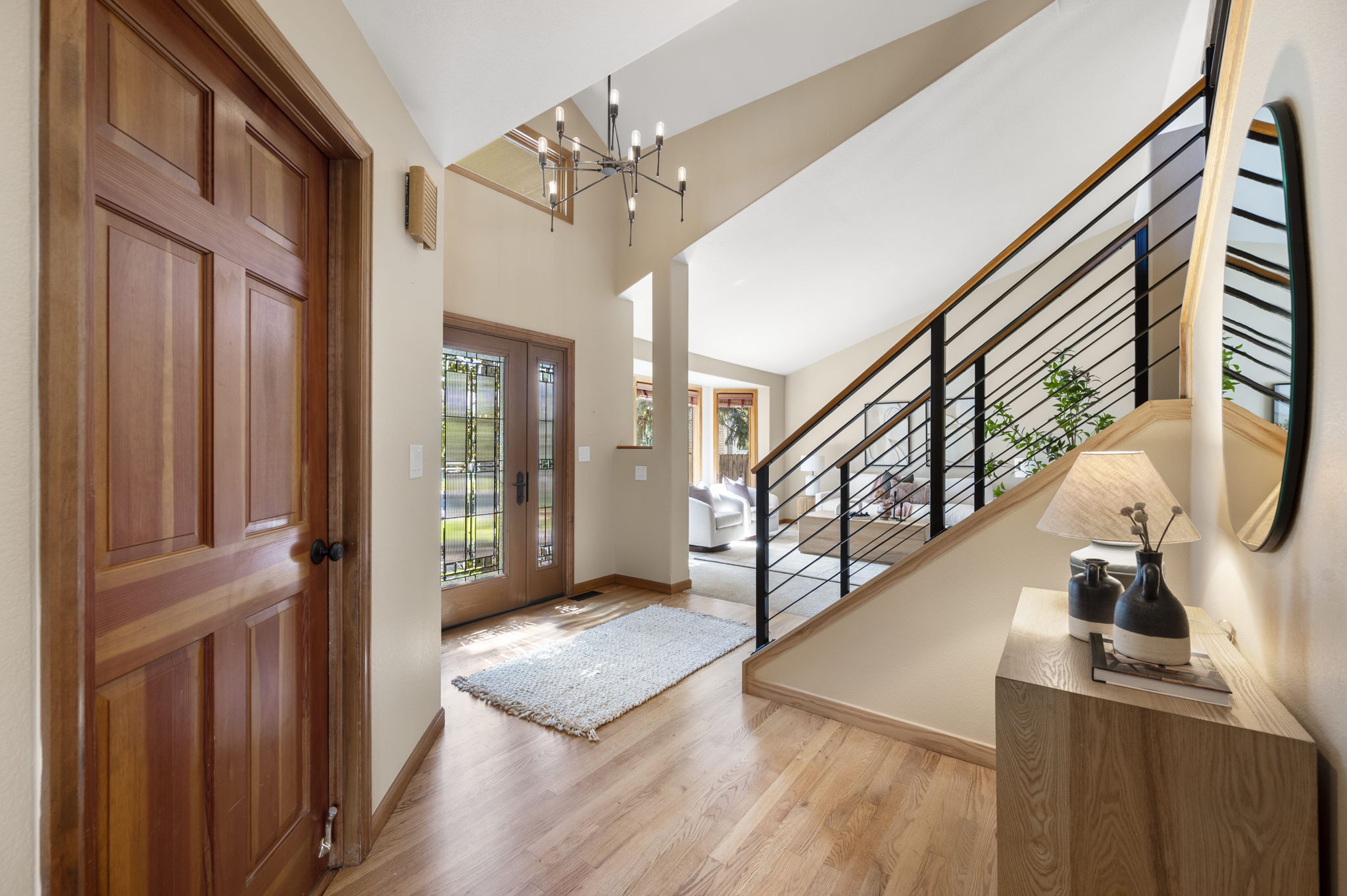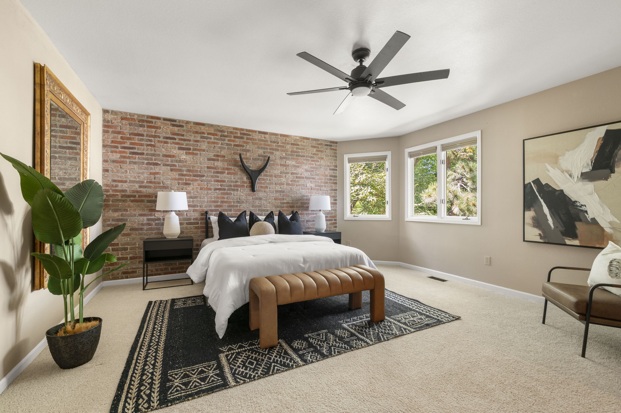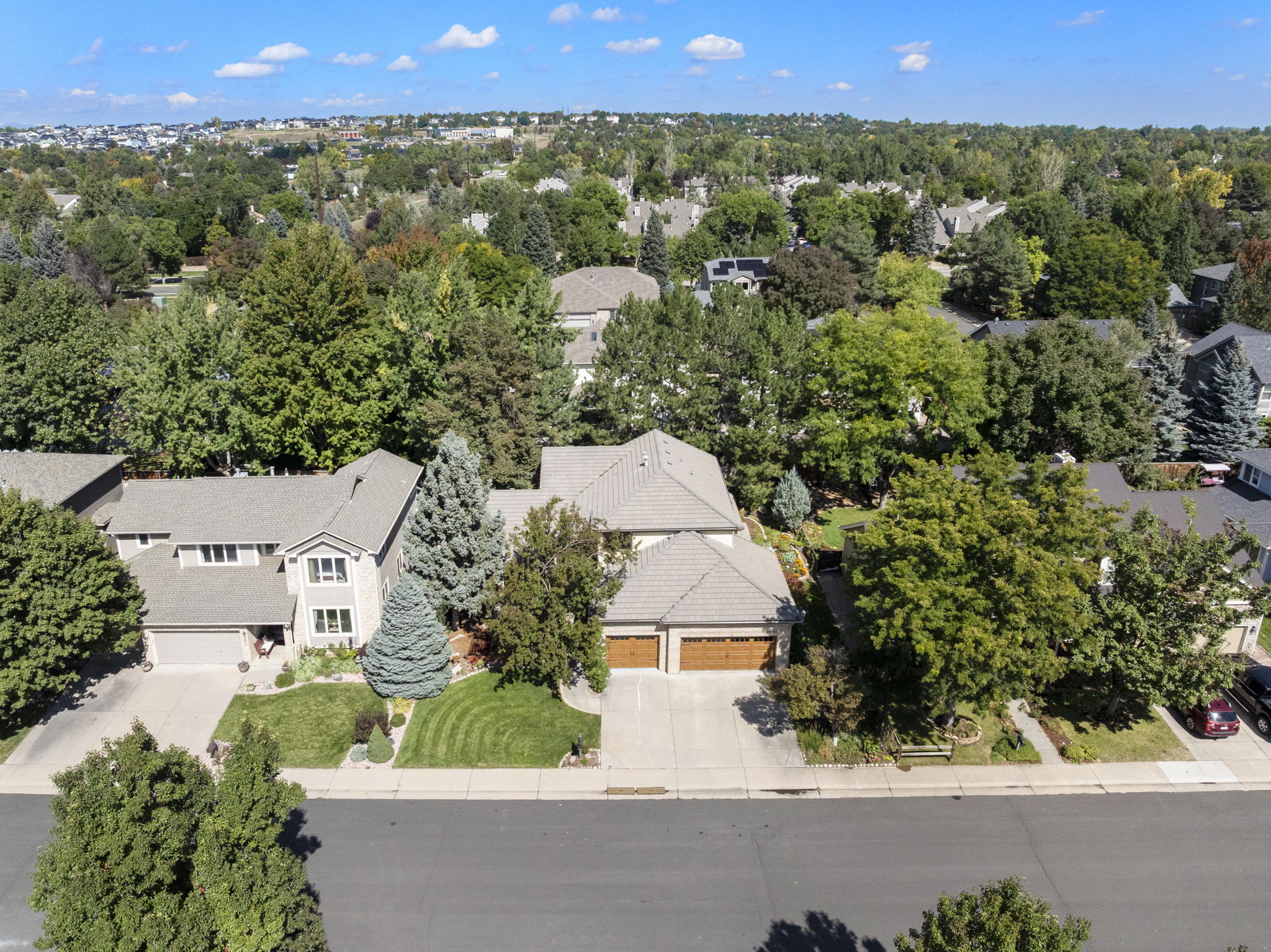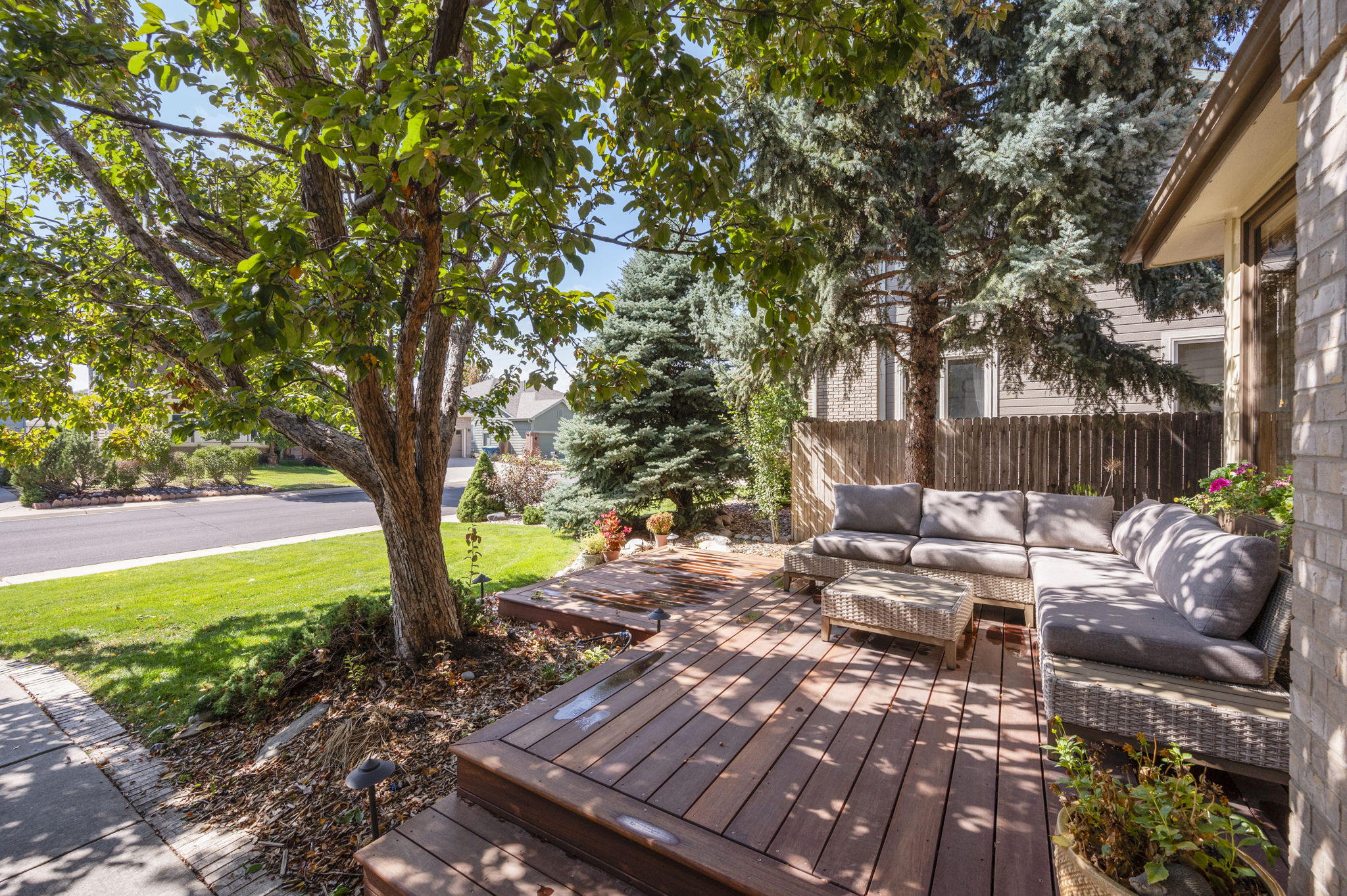 Behold one of the most stunning homes in Coal Creek Meadows. Built to last, this beautifully maintained property features a full concrete roof, brick exterior, brand-new HVAC system, and a striking new mahogany deck that leads to a matching Therma Tru front door, beckoning you inside. Step into soaring vaulted ceilings, a grand staircase with upgraded modern steel railings, and genuine hardwood floors refinished as part of the recent family room remodel. The warm, inviting interior is a refreshing departure from the typical white and gray palette, with rich brick accents, two cozy gas fireplaces, and a beautiful main floor office or bedroom with classic wainscoting walls. The kitchen is a chef’s dream, featuring a walnut butcher block island with Bosch gas cooktop, and all new Bosch appliances throughout. It's the thoughtful design details that make cooking and entertaining a joy. Upstairs, the showstopper is the fully remodeled primary bathroom, transformed down to the studs into a spa-like retreat. A natural stone shower wrapped in custom glass and illuminated by a skylight pairs beautifully with a floating soaking tub under a chandelier. New custom vanities add style and function here and in every bathroom in the home. Two additional bedrooms and a shared full bath complete the upper level. In the basement, enjoy over 300 square feet of unfinished storage, a cozy media room, and an additional bedroom with a three quarter bath. The garage is equally impressive with brand-new insulated doors, a pellet stove to keep you warm while you tinker, and a 220v outlet for tools or charging. Outside, the lush, lovingly gardened yard offers privacy and serenity... the perfect place to unwind. And with farmers markets, boutique shopping, and date-night dining just steps away, this home places you at the heart of one of Louisville’s most desirable neighborhoods. If you're ready to elevate your lifestyle, this is where to start!