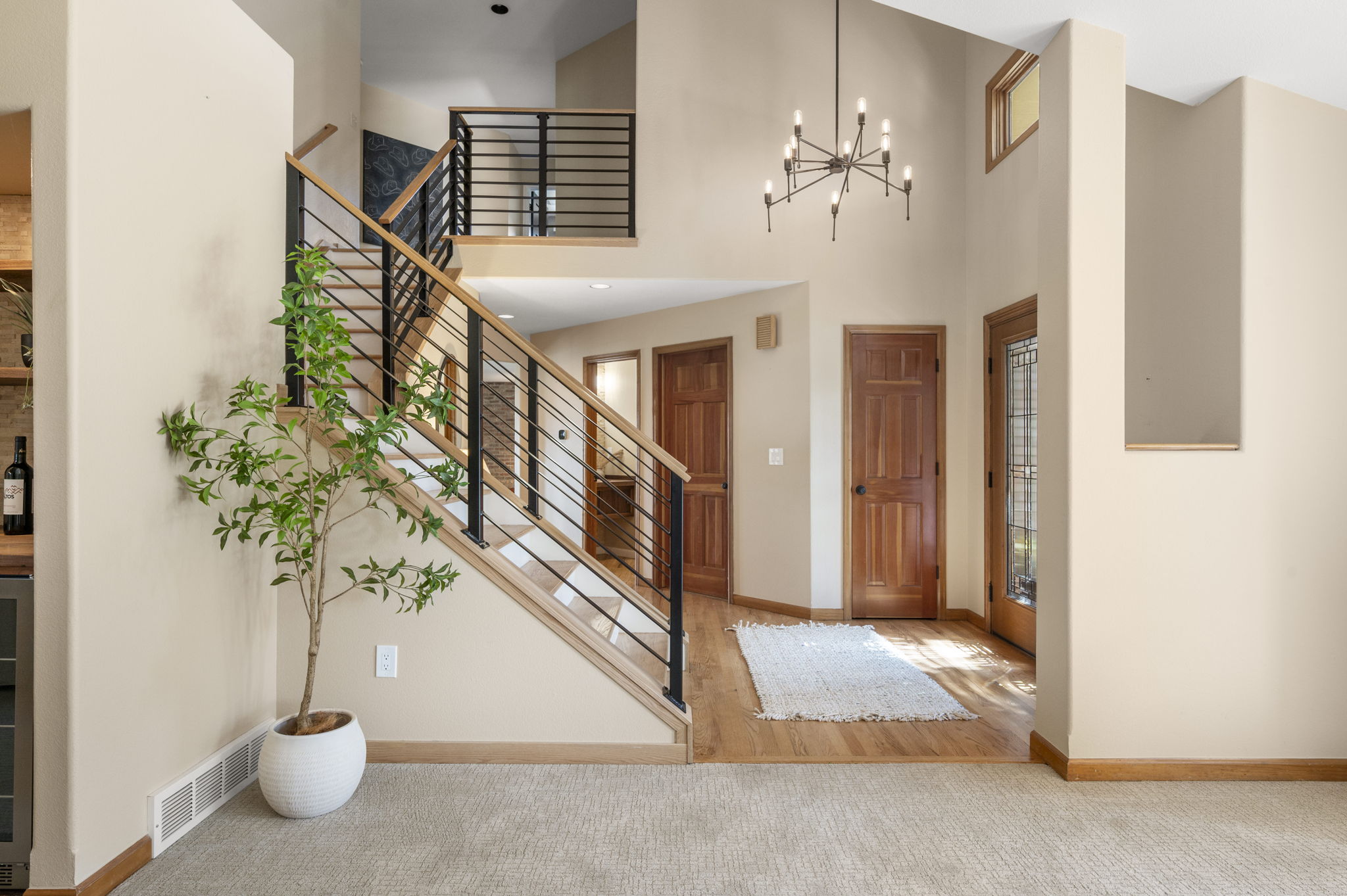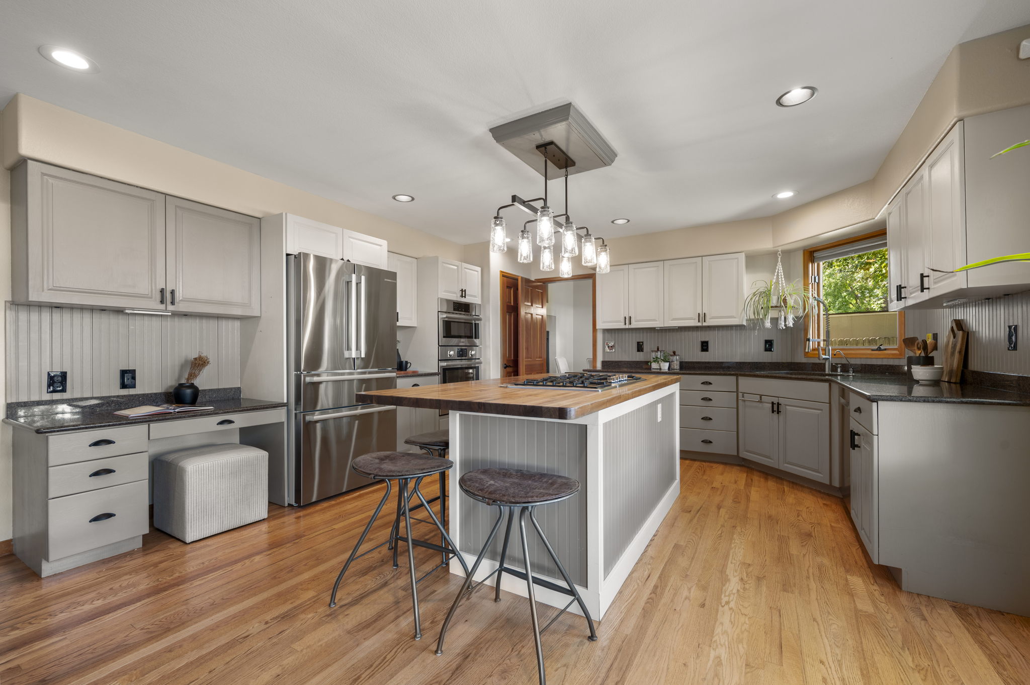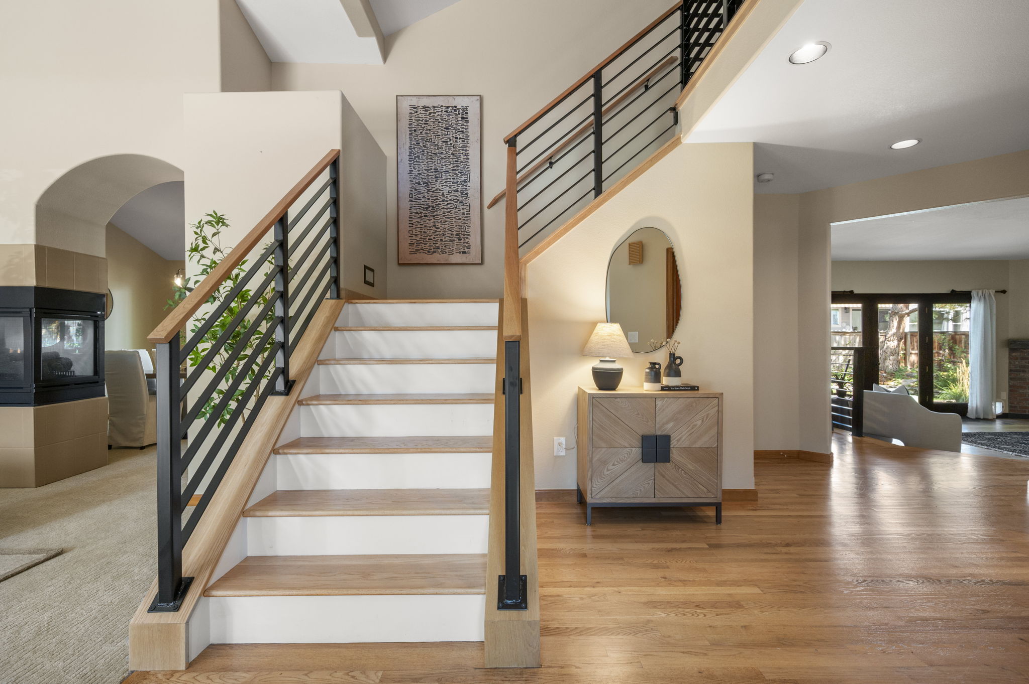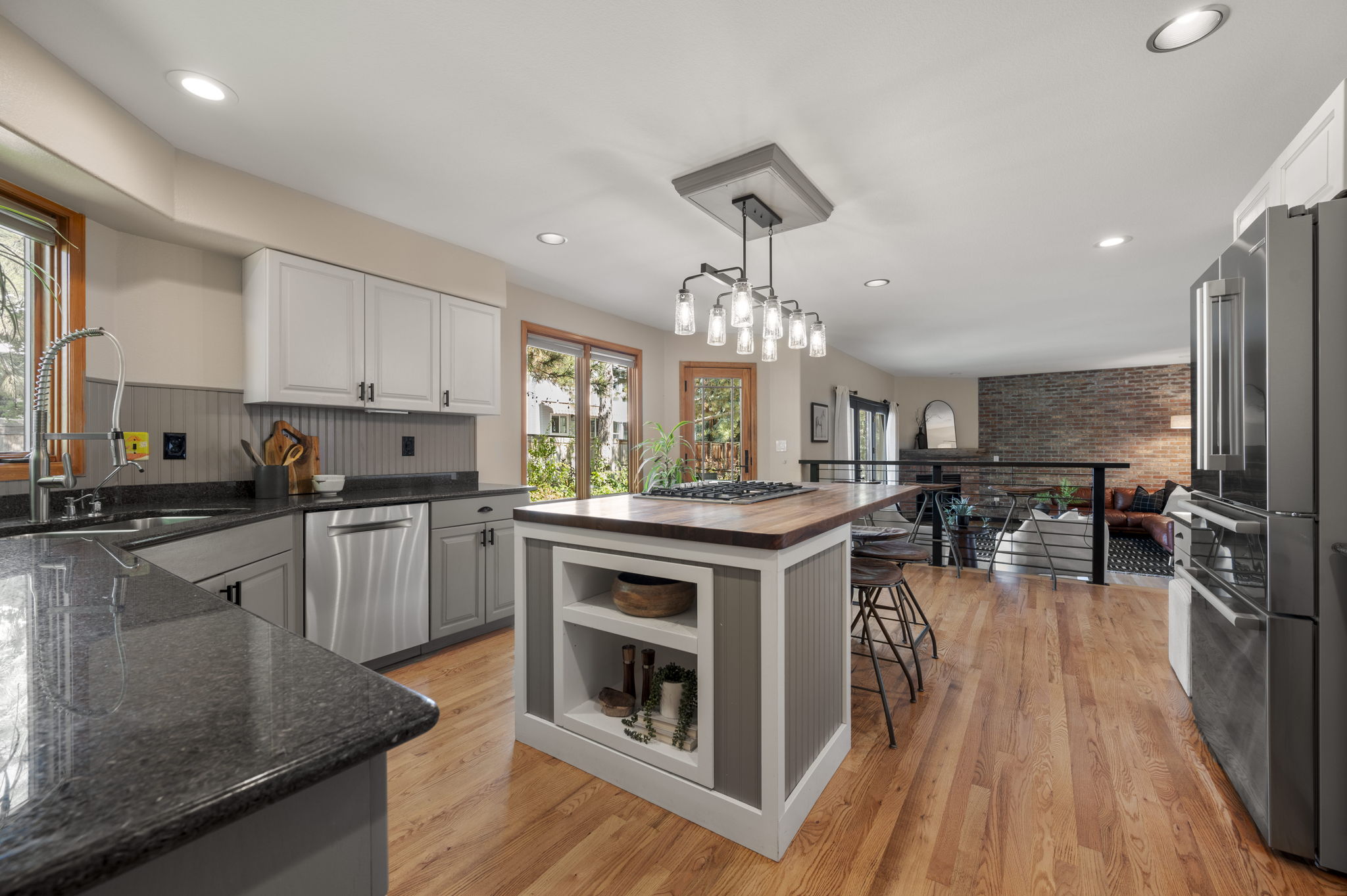 Behold one of the most stunning homes in Coal Creek Meadows. Built to last, this beautifully maintained property features a full concrete roof, brick exterior, brand-new HVAC system, and a striking new mahogany deck that leads to a matching Therma Tru front door, beckoning you inside. Step into soaring vaulted ceilings, a grand staircase with upgraded modern steel railings, and genuine hardwood floors refinished as part of the recent family room remodel. The warm, inviting interior is a refreshing departure from the typical white and gray palette, with rich brick accents, two cozy gas fireplaces, and a beautiful main floor office or bedroom with classic wainscoting walls. The kitchen is a chef’s dream, featuring a walnut butcher block island with Bosch gas cooktop, and all new Bosch appliances throughout. It's the thoughtful design details that make cooking and entertaining a joy. Upstairs, the showstopper is the fully remodeled primary bathroom, transformed down to the studs into a spa-like retreat. A natural stone shower wrapped in custom glass and illuminated by a skylight pairs beautifully with a floating soaking tub under a chandelier. New custom vanities add style and function here and in every bathroom in the home. Two additional bedrooms and a shared full bath complete the upper level. In the basement, enjoy over 300 square feet of unfinished storage, a cozy media room, and an additional bedroom with a three quarter bath. The garage is equally impressive with brand-new insulated doors, a pellet stove to keep you warm while you tinker, and a 220v outlet for tools or charging. Outside, the lush, lovingly gardened yard offers privacy and serenity... the perfect place to unwind. And with farmers markets, boutique shopping, and date-night dining just steps away, this home places you at the heart of one of Louisville’s most desirable neighborhoods. If you're ready to elevate your lifestyle, this is where to start!