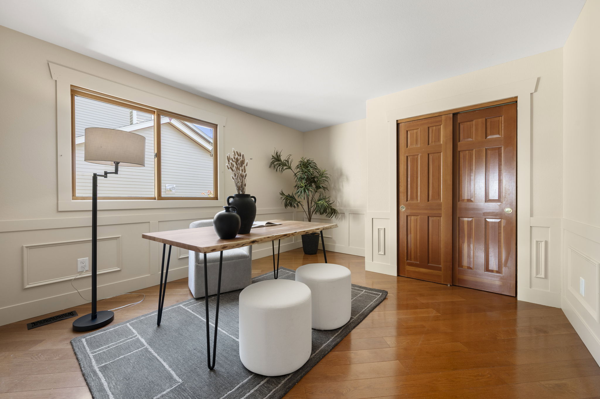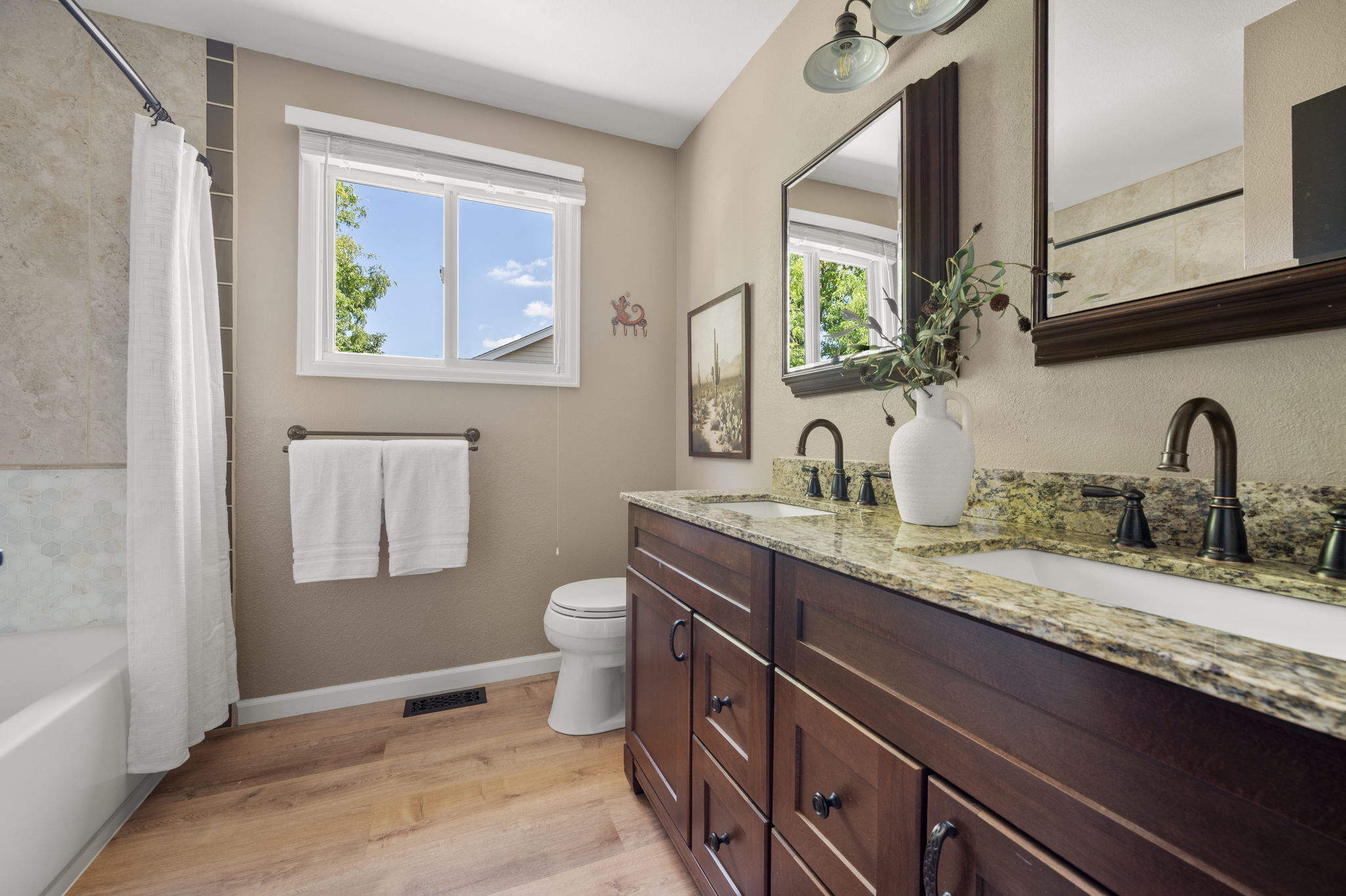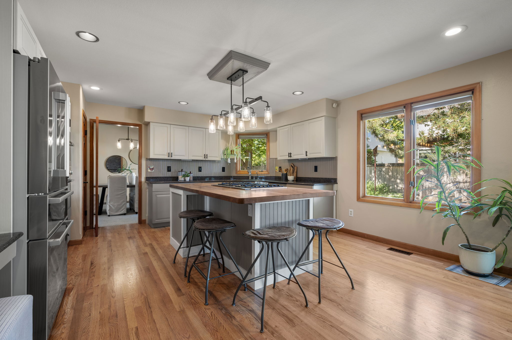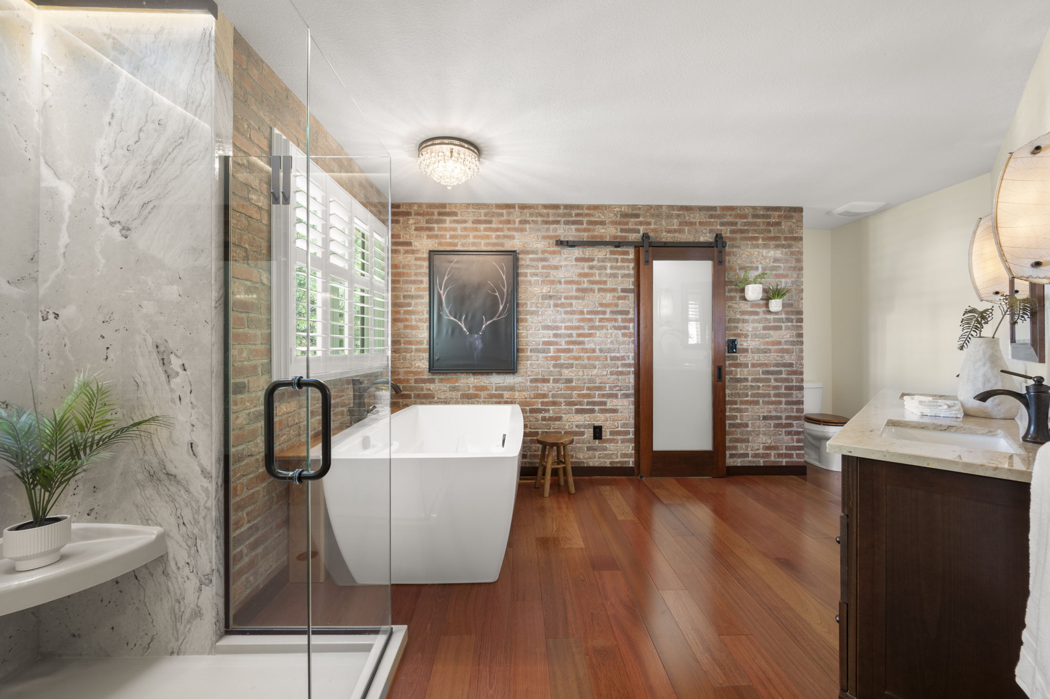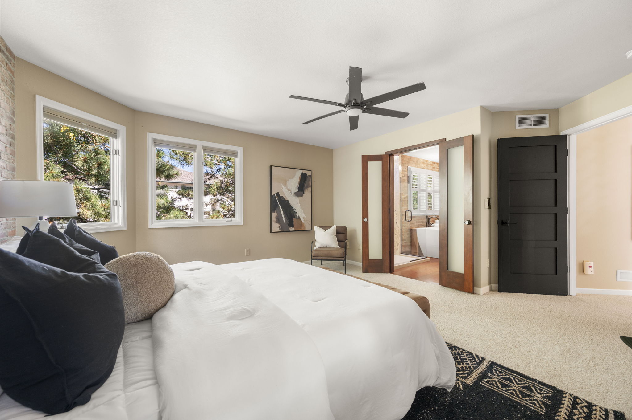 Behold one of the most stunning homes in Coal Creek Meadows. Built to last, this beautifully maintained property features a full concrete roof, brick exterior, brand-new HVAC system, and a striking new mahogany deck that leads to a matching Therma Tru front door, beckoning you inside. Step into soaring vaulted ceilings, a grand staircase with upgraded modern steel railings, and genuine hardwood floors refinished as part of the recent family room remodel. The warm, inviting interior is a refreshing departure from the typical white and gray palette, with rich brick accents, two cozy gas fireplaces, and a beautiful main floor office or bedroom with classic wainscoting walls. The kitchen is a chef’s dream, featuring a walnut butcher block island with Bosch gas cooktop, and all new Bosch appliances throughout. It's the thoughtful design details that make cooking and entertaining a joy. Upstairs, the showstopper is the fully remodeled primary bathroom, transformed down to the studs into a spa-like retreat. A natural stone shower wrapped in custom glass and illuminated by a skylight pairs beautifully with a floating soaking tub under a chandelier. New custom vanities add style and function here and in every bathroom in the home. Two additional bedrooms and a shared full bath complete the upper level. In the basement, enjoy over 300 square feet of unfinished storage, a cozy media room, and an additional bedroom with a three quarter bath. The garage is equally impressive with brand-new insulated doors, a pellet stove to keep you warm while you tinker, and a 220v outlet for tools or charging. Outside, the lush, lovingly gardened yard offers privacy and serenity... the perfect place to unwind. And with farmers markets, boutique shopping, and date-night dining just steps away, this home places you at the heart of one of Louisville’s most desirable neighborhoods. If you're ready to elevate your lifestyle, this is where to start!