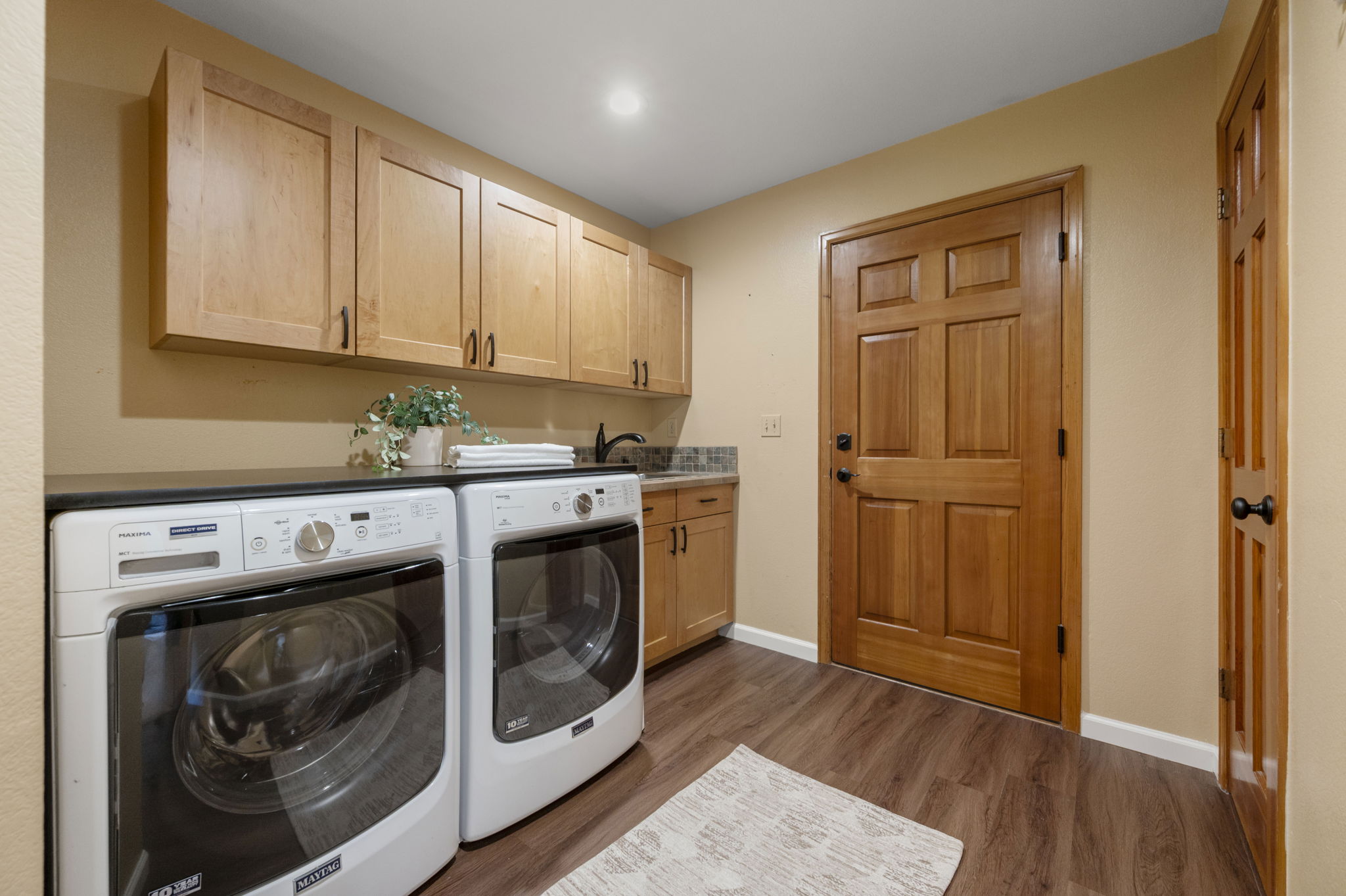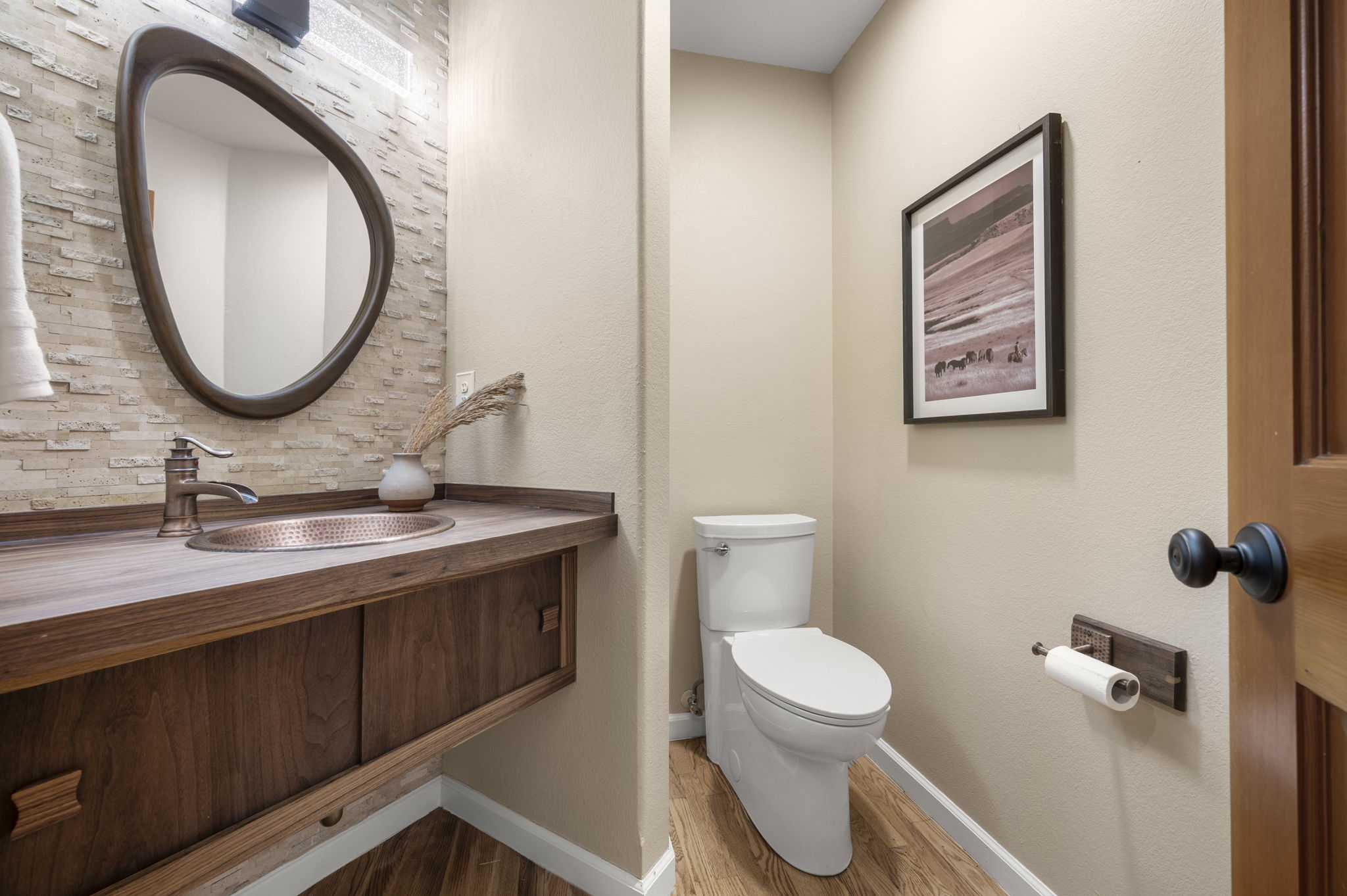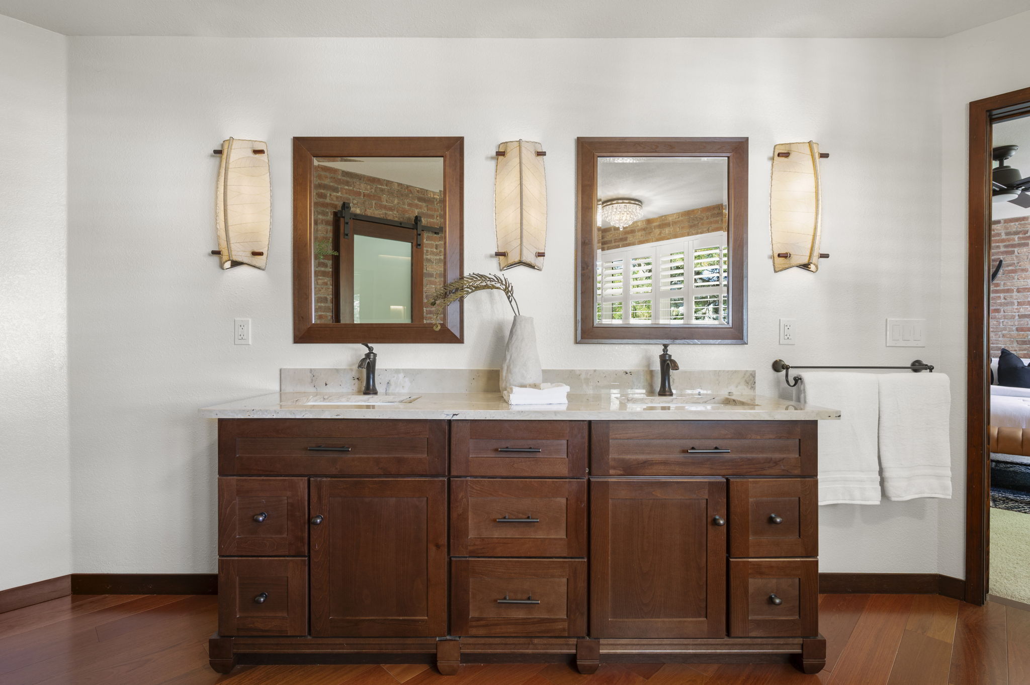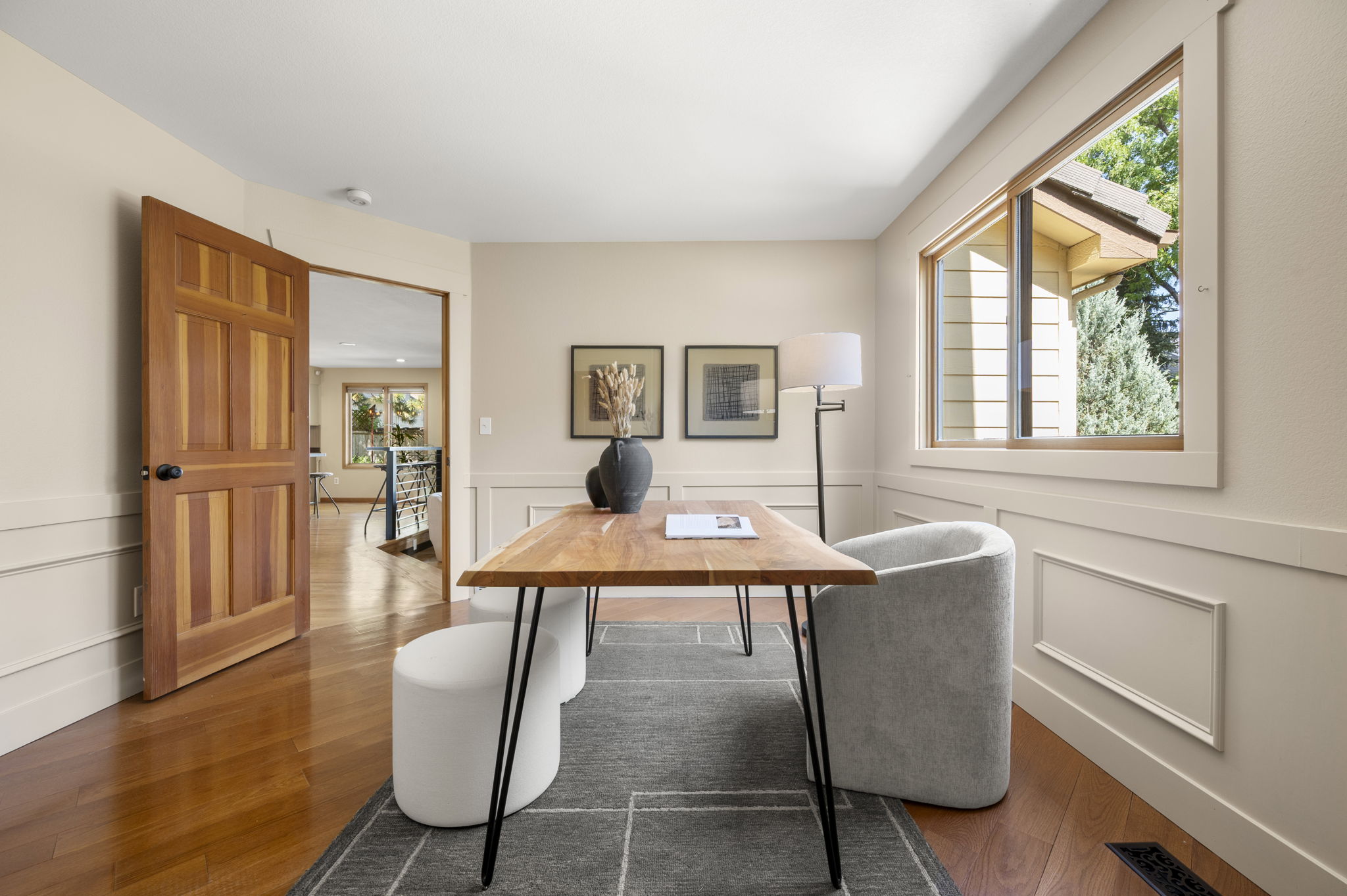 Behold one of the most stunning homes in Coal Creek Meadows. Built to last, this beautifully maintained property features a full concrete roof, brick exterior, brand-new HVAC system, and a striking new mahogany deck that leads to a matching Therma Tru front door, beckoning you inside. Step into soaring vaulted ceilings, a grand staircase with upgraded modern steel railings, and genuine hardwood floors refinished as part of the recent family room remodel. The warm, inviting interior is a refreshing departure from the typical white and gray palette, with rich brick accents, two cozy gas fireplaces, and a beautiful main floor office or bedroom with classic wainscoting walls. The kitchen is a chef’s dream, featuring a walnut butcher block island with Bosch gas cooktop, and all new Bosch appliances throughout. It's the thoughtful design details that make cooking and entertaining a joy. Upstairs, the showstopper is the fully remodeled primary bathroom, transformed down to the studs into a spa-like retreat. A natural stone shower wrapped in custom glass and illuminated by a skylight pairs beautifully with a floating soaking tub under a chandelier. New custom vanities add style and function here and in every bathroom in the home. Two additional bedrooms and a shared full bath complete the upper level. In the basement, enjoy over 300 square feet of unfinished storage, a cozy media room, and an additional bedroom with a three quarter bath. The garage is equally impressive with brand-new insulated doors, a pellet stove to keep you warm while you tinker, and a 220v outlet for tools or charging. Outside, the lush, lovingly gardened yard offers privacy and serenity... the perfect place to unwind. And with farmers markets, boutique shopping, and date-night dining just steps away, this home places you at the heart of one of Louisville’s most desirable neighborhoods. If you're ready to elevate your lifestyle, this is where to start!