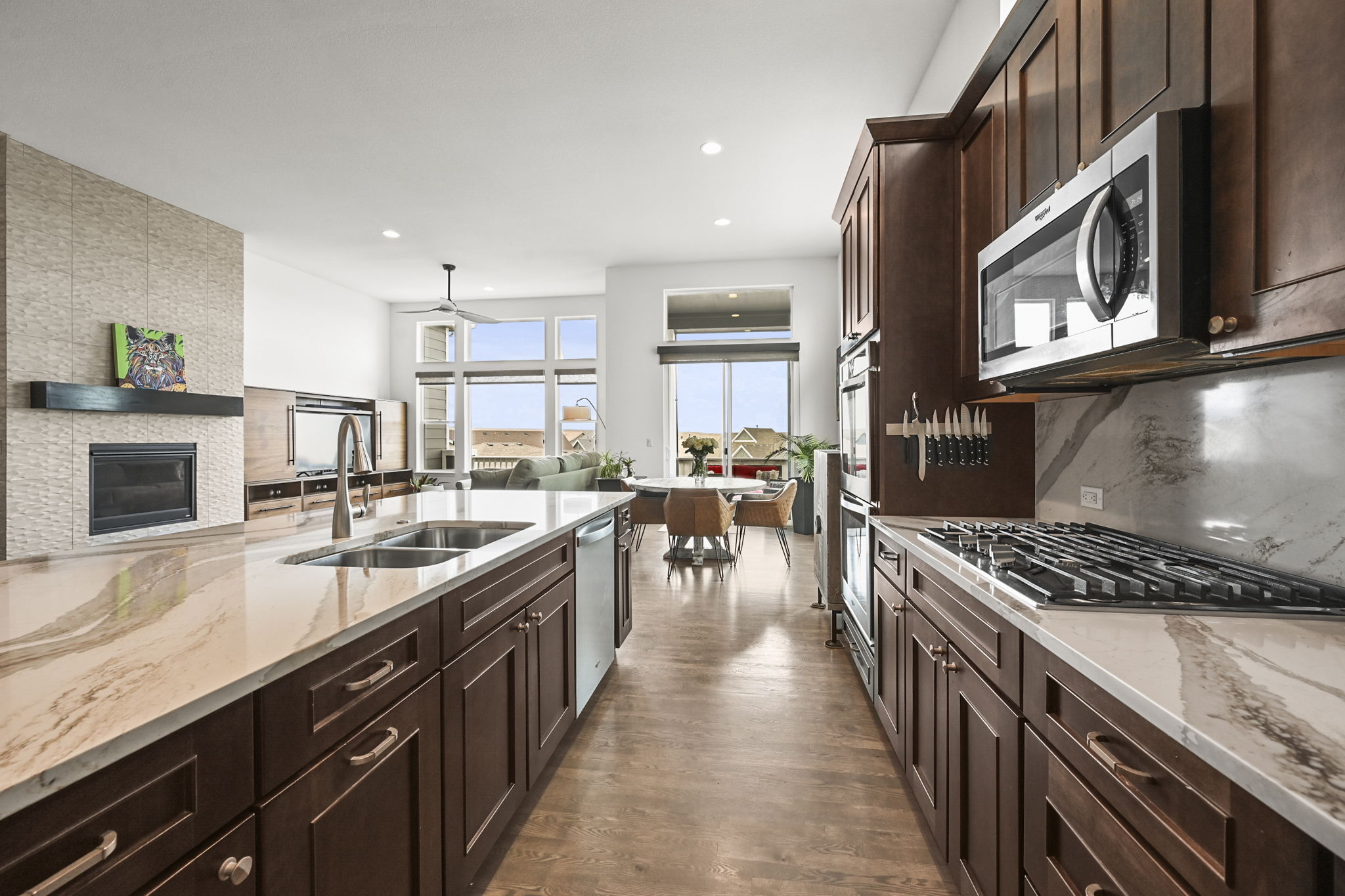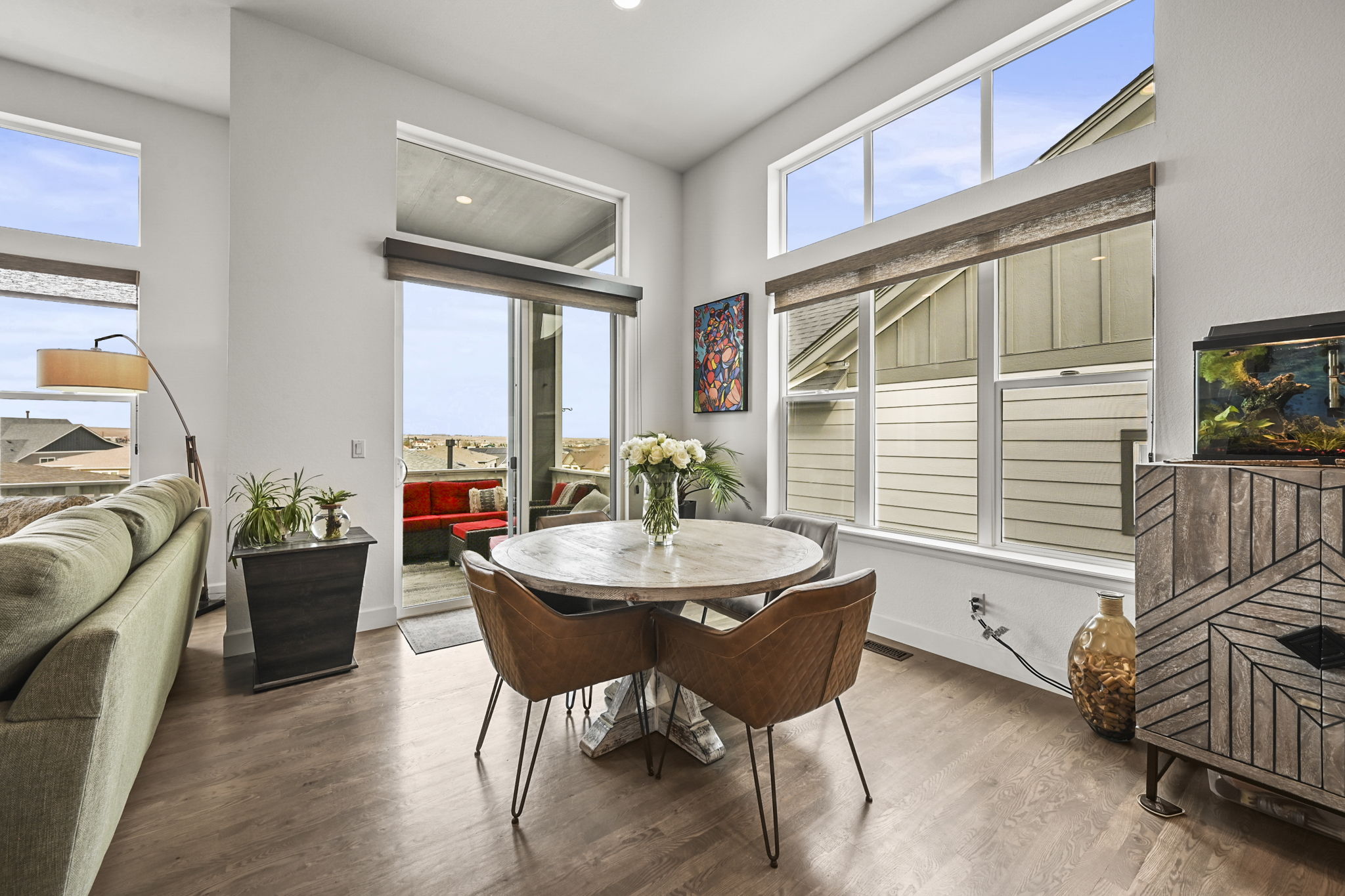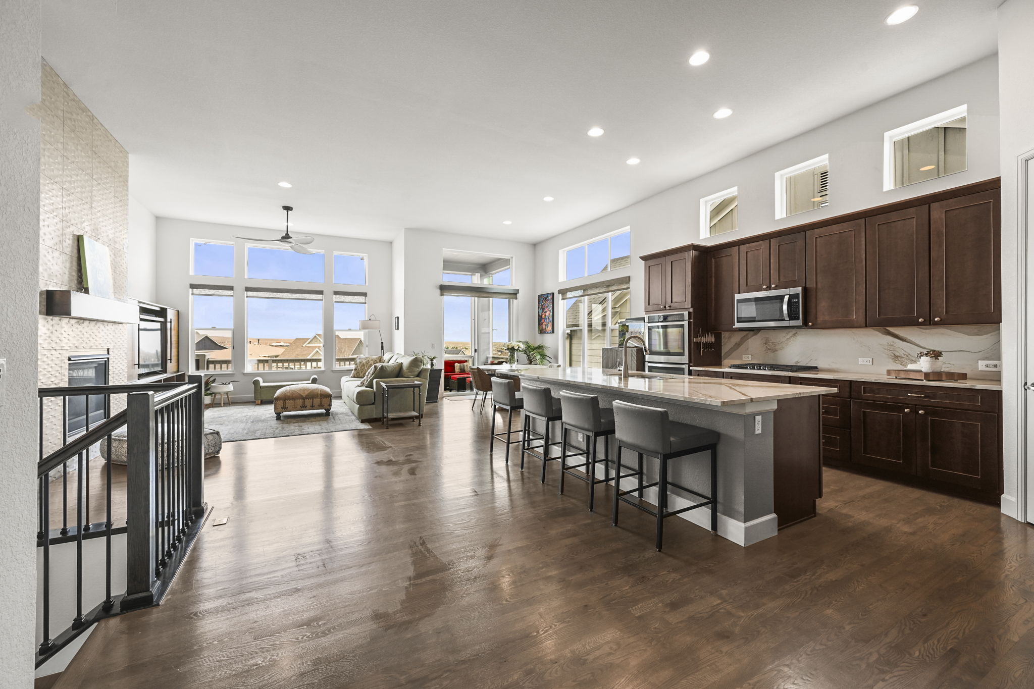 Stunning patio home with incredible mountain views and a walkout basement. Perfectly positioned to capture the Flatirons, you can enjoy sunsets and open skies from the upper deck. The open floor plan is filled with natural light and soaring ceilings that create a bright, spacious feel throughout. The gourmet kitchen features a large island, abundant cabinetry, stainless steel appliances, and flows easily into the dining and living areas, making it ideal for everyday living and entertaining.