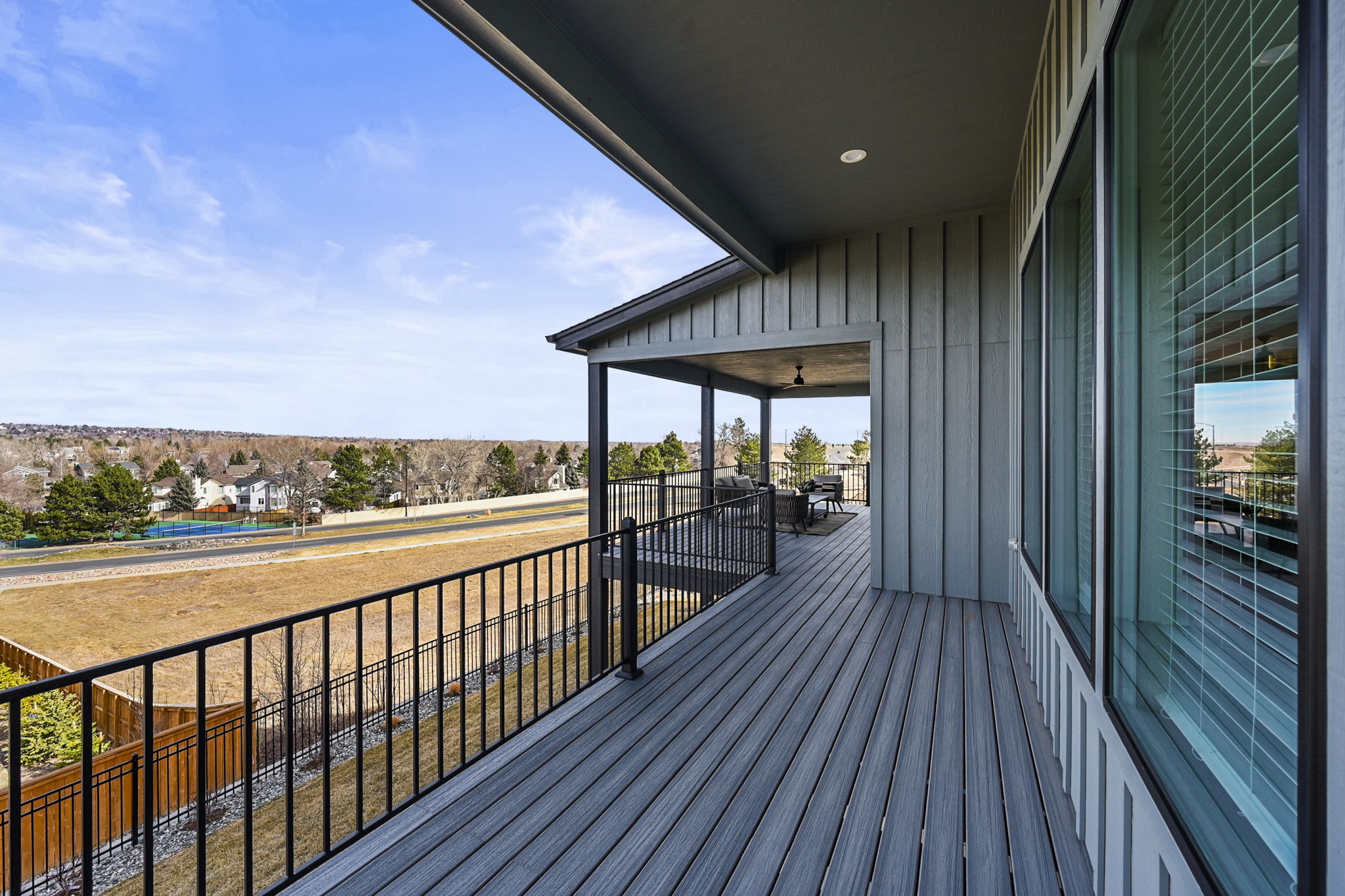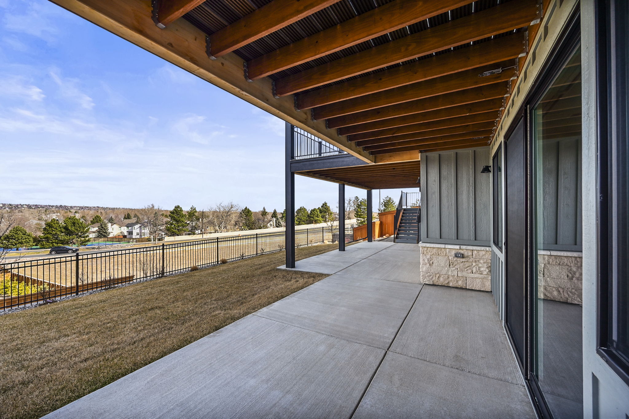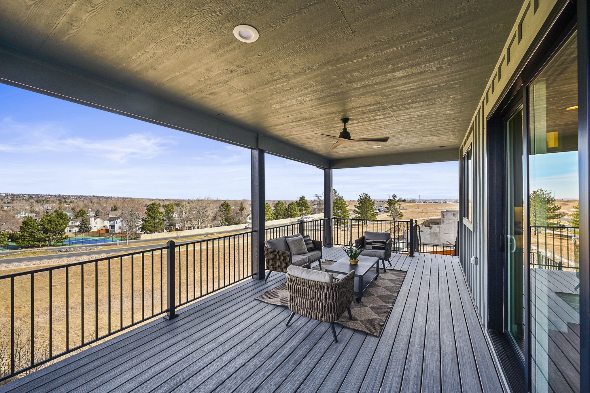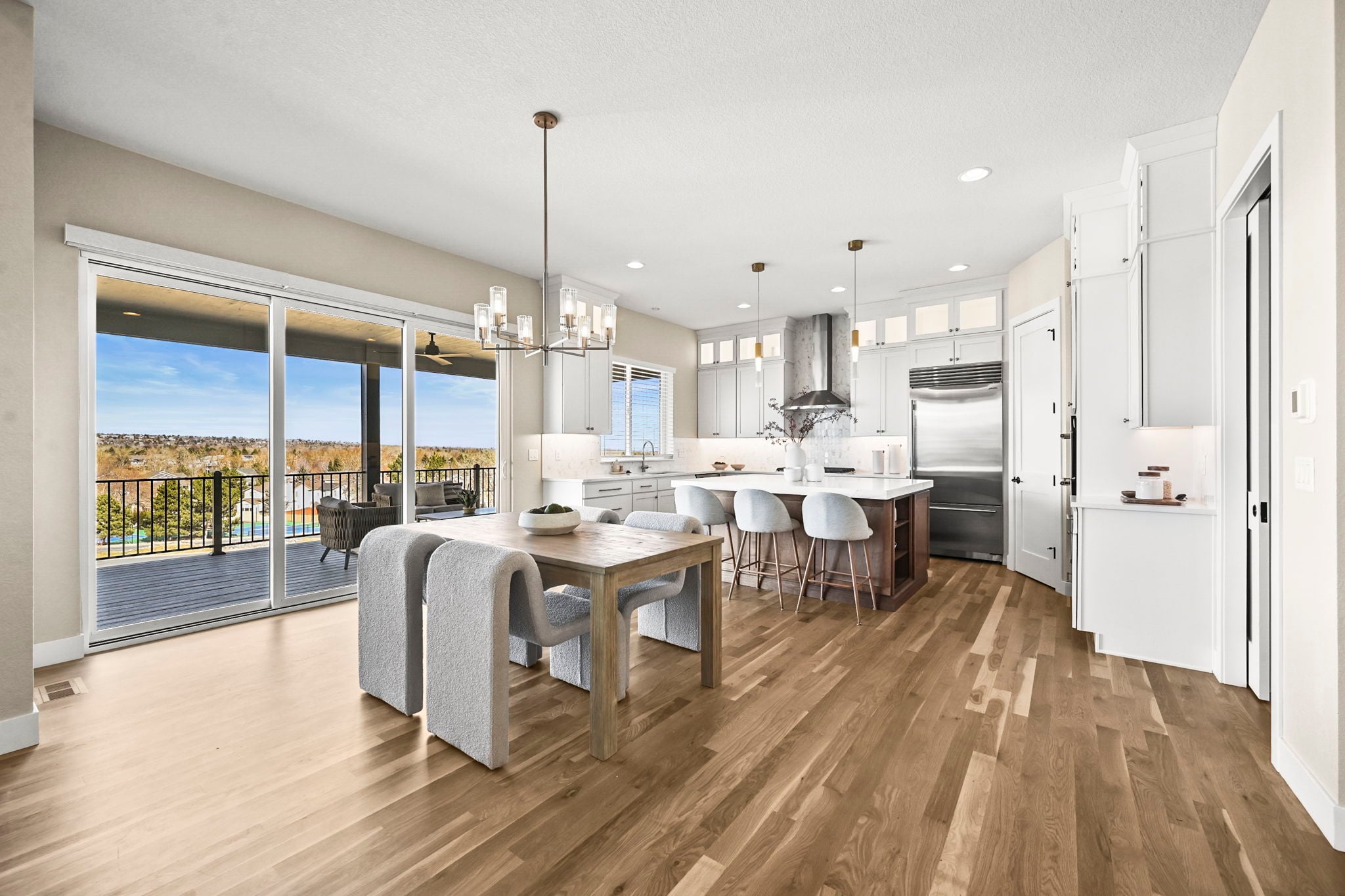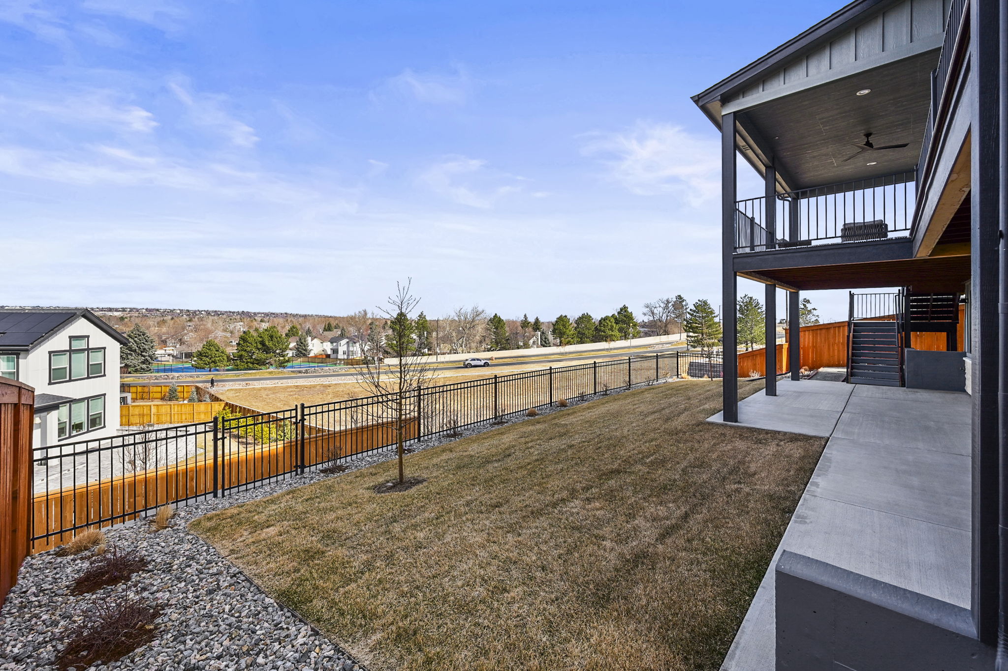 Wake up to Foothills and Flatirons views from all three levels in this exceptional luxury home where thoughtful design, sustainability, and the Colorado lifestyle come together. The main level welcomes you with a bright living room, where expansive windows flood the space with natural light and frame sweeping mountain vistas. White oak flooring spans the level, complemented by designer lighting, custom blinds, and a striking gas fireplace. Eco-conscious features include owned solar panels with a microgrid system for backup power, high-efficiency HVAC, R23 insulation, an instant hot water heater, and a fresh-air HRV system. At the heart of the home is the gourmet kitchen with high-end appliances including a built-in Sub-Zero refrigerator, 42-inch custom cabinetry, a walk-in pantry, and a spacious center island. Entertaining flows seamlessly onto the oversized deck with breathtaking views. Just off the main living space is a private office with french doors, a half bath, and a mudroom connecting to the oversized 4-car garage. The upper level features a stunning primary suite with incredible views, dual closets, and a luxurious five-piece bath, plus direct access to the laundry room. Two additional bedrooms and a full hall bath complete this level. The walk-out basement is filled with natural light and features a spacious family room perfect for movie nights, game days, or multi-generational living. This level also includes two additional bedrooms, a full bath, and extra laundry hookups, offering flexible living options. Outside, enjoy a landscaped and fenced backyard with grassy areas, a large deck, and a patio perfect for outdoor living. Residents also enjoy access to community amenities including an outdoor pool, clubhouse, tennis courts, and scenic community trails.