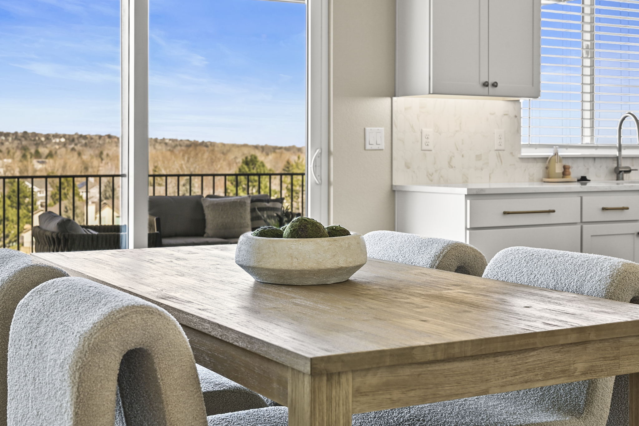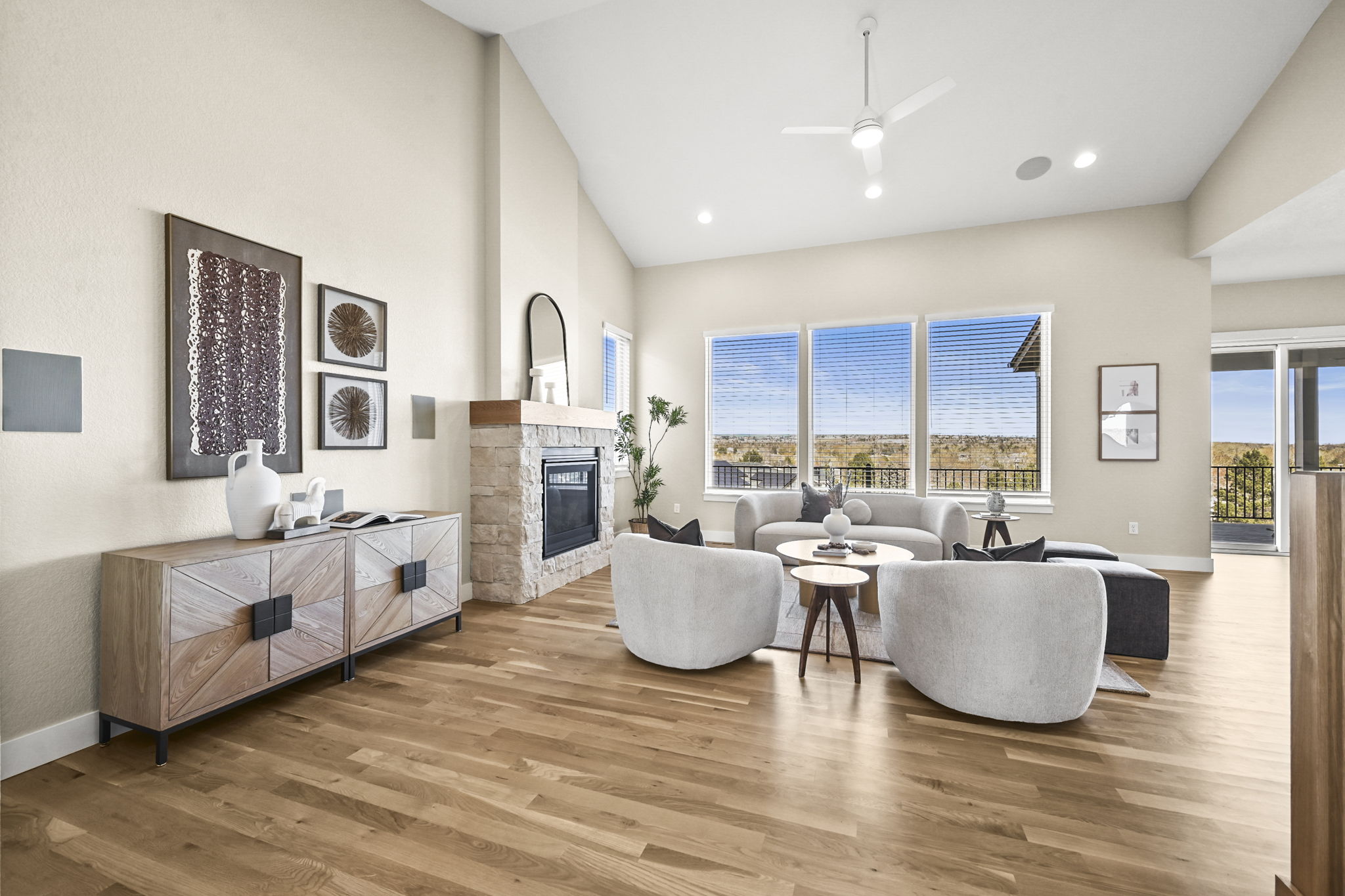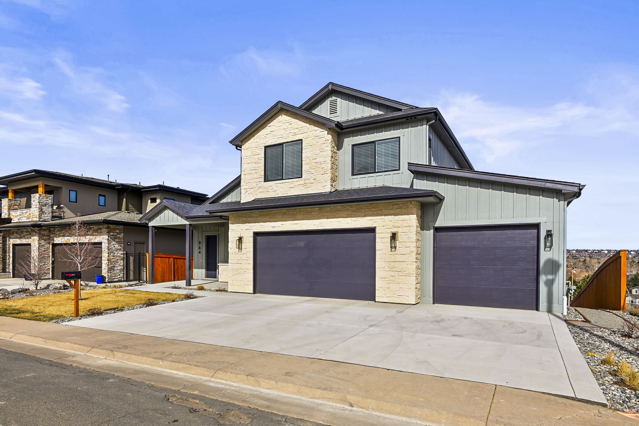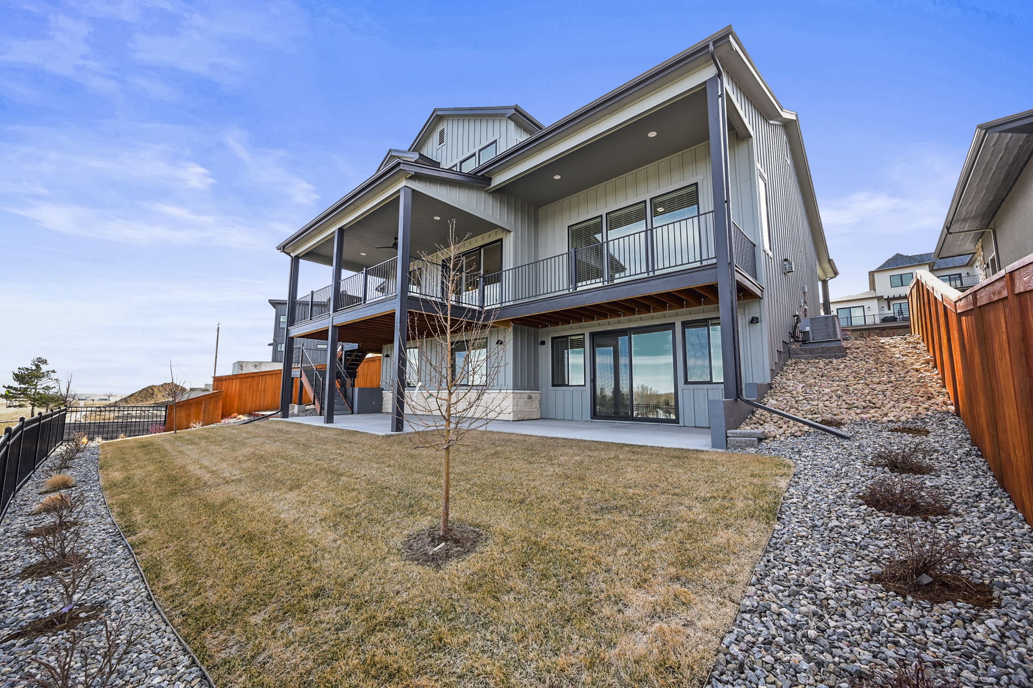 Wake up to Foothills and Flatirons views from all three levels in this exceptional luxury home where thoughtful design, sustainability, and the Colorado lifestyle come together. The main level welcomes you with a bright living room, where expansive windows flood the space with natural light and frame sweeping mountain vistas. White oak flooring spans the level, complemented by designer lighting, custom blinds, and a striking gas fireplace. Eco-conscious features include owned solar panels with a microgrid system for backup power, high-efficiency HVAC, R23 insulation, an instant hot water heater, and a fresh-air HRV system. At the heart of the home is the gourmet kitchen with high-end appliances including a built-in Sub-Zero refrigerator, 42-inch custom cabinetry, a walk-in pantry, and a spacious center island. Entertaining flows seamlessly onto the oversized deck with breathtaking views. Just off the main living space is a private office with french doors, a half bath, and a mudroom connecting to the oversized 4-car garage. The upper level features a stunning primary suite with incredible views, dual closets, and a luxurious five-piece bath, plus direct access to the laundry room. Two additional bedrooms and a full hall bath complete this level. The walk-out basement is filled with natural light and features a spacious family room perfect for movie nights, game days, or multi-generational living. This level also includes two additional bedrooms, a full bath, and extra laundry hookups, offering flexible living options. Outside, enjoy a landscaped and fenced backyard with grassy areas, a large deck, and a patio perfect for outdoor living. Residents also enjoy access to community amenities including an outdoor pool, clubhouse, tennis courts, and scenic community trails.