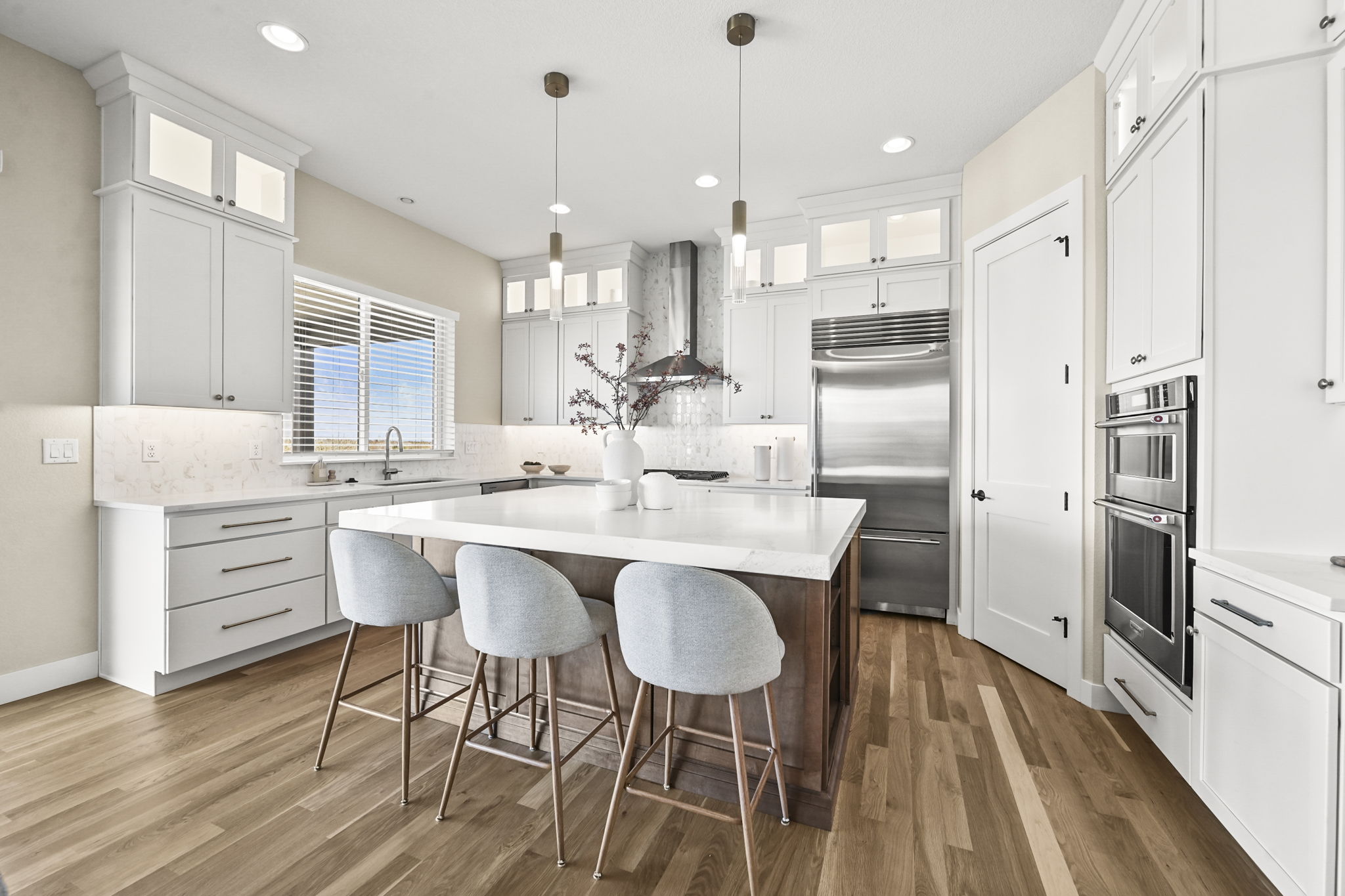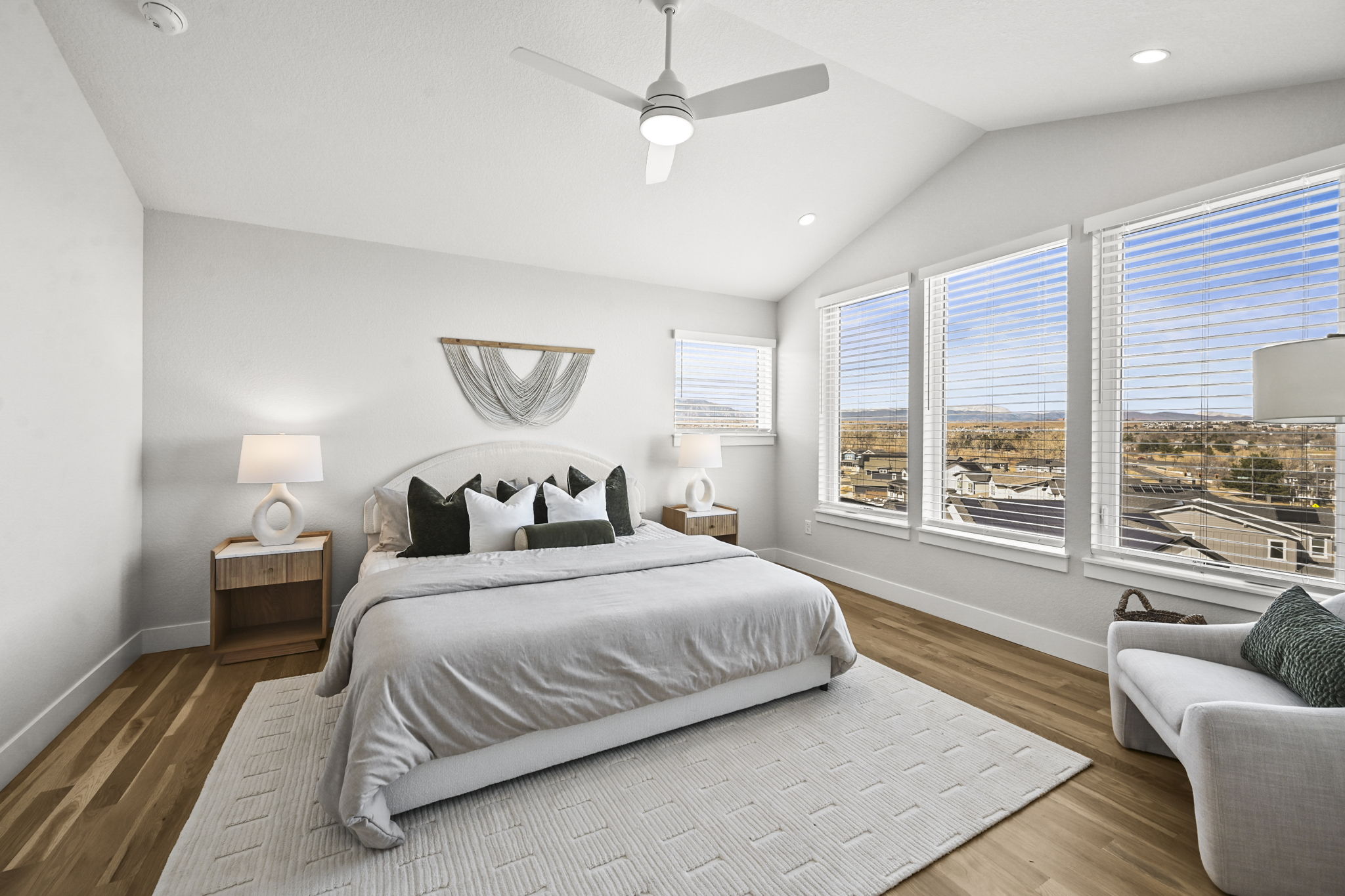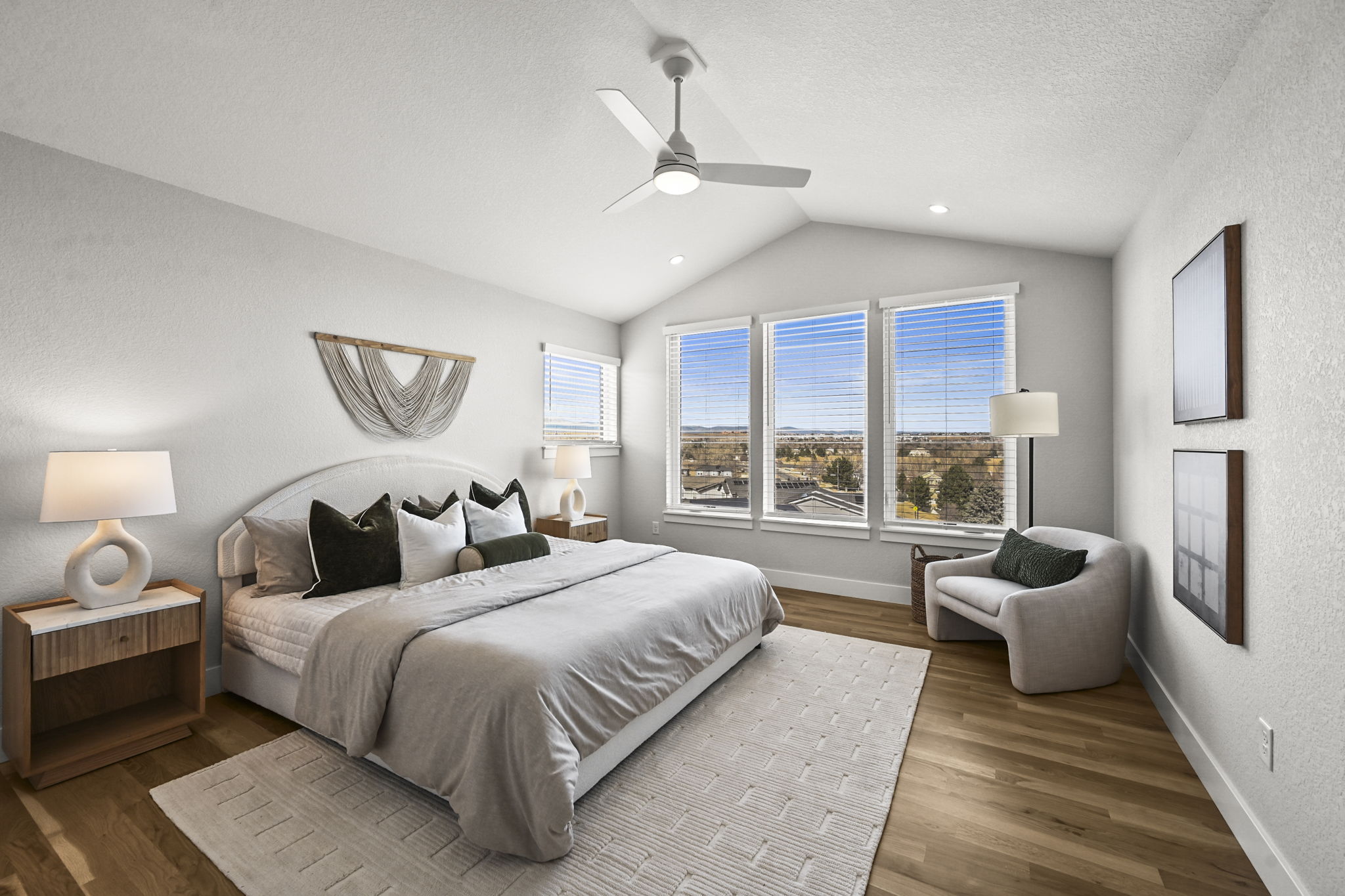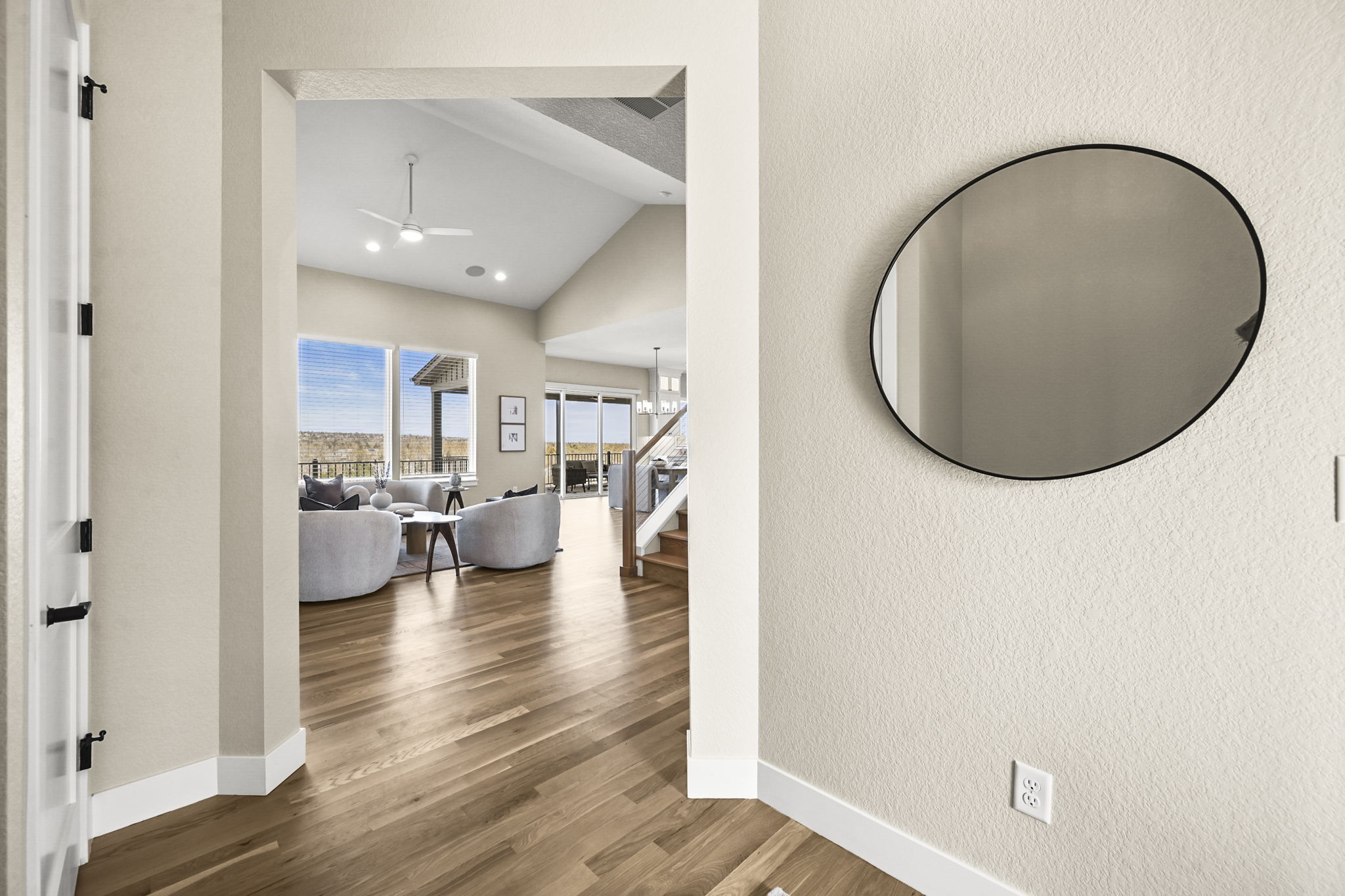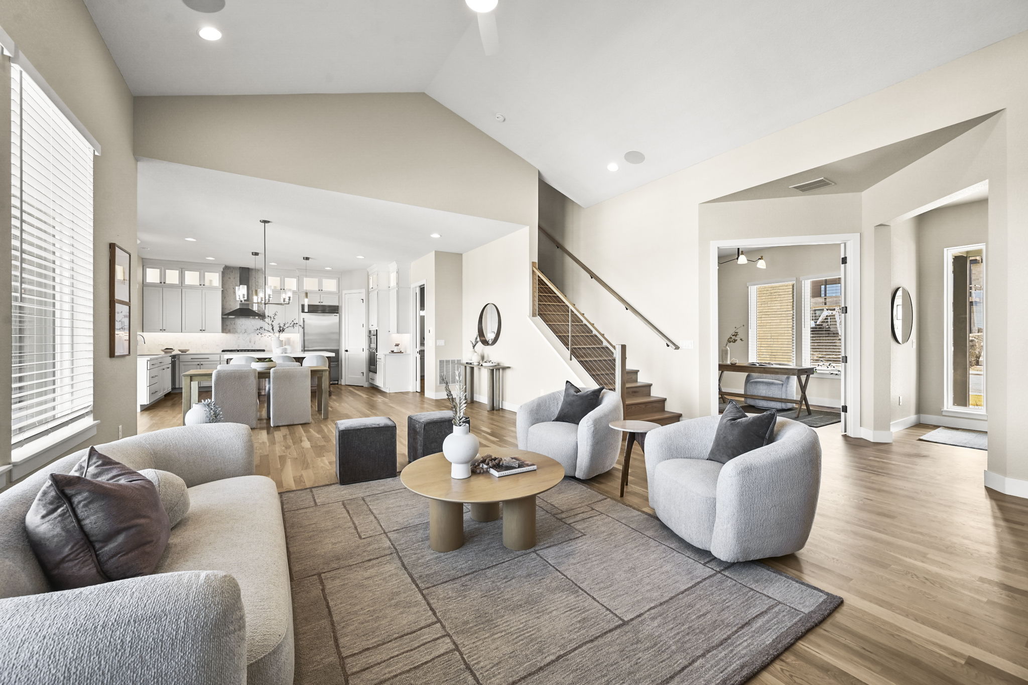 Wake up to Foothills and Flatirons views from all three levels in this exceptional luxury home where thoughtful design, sustainability, and the Colorado lifestyle come together. The main level welcomes you with a bright living room, where expansive windows flood the space with natural light and frame sweeping mountain vistas. White oak flooring spans the level, complemented by designer lighting, custom blinds, and a striking gas fireplace. Eco-conscious features include owned solar panels with a microgrid system for backup power, high-efficiency HVAC, R23 insulation, an instant hot water heater, and a fresh-air HRV system. At the heart of the home is the gourmet kitchen with high-end appliances including a built-in Sub-Zero refrigerator, 42-inch custom cabinetry, a walk-in pantry, and a spacious center island. Entertaining flows seamlessly onto the oversized deck with breathtaking views. Just off the main living space is a private office with french doors, a half bath, and a mudroom connecting to the oversized 4-car garage. The upper level features a stunning primary suite with incredible views, dual closets, and a luxurious five-piece bath, plus direct access to the laundry room. Two additional bedrooms and a full hall bath complete this level. The walk-out basement is filled with natural light and features a spacious family room perfect for movie nights, game days, or multi-generational living. This level also includes two additional bedrooms, a full bath, and extra laundry hookups, offering flexible living options. Outside, enjoy a landscaped and fenced backyard with grassy areas, a large deck, and a patio perfect for outdoor living. Residents also enjoy access to community amenities including an outdoor pool, clubhouse, tennis courts, and scenic community trails.